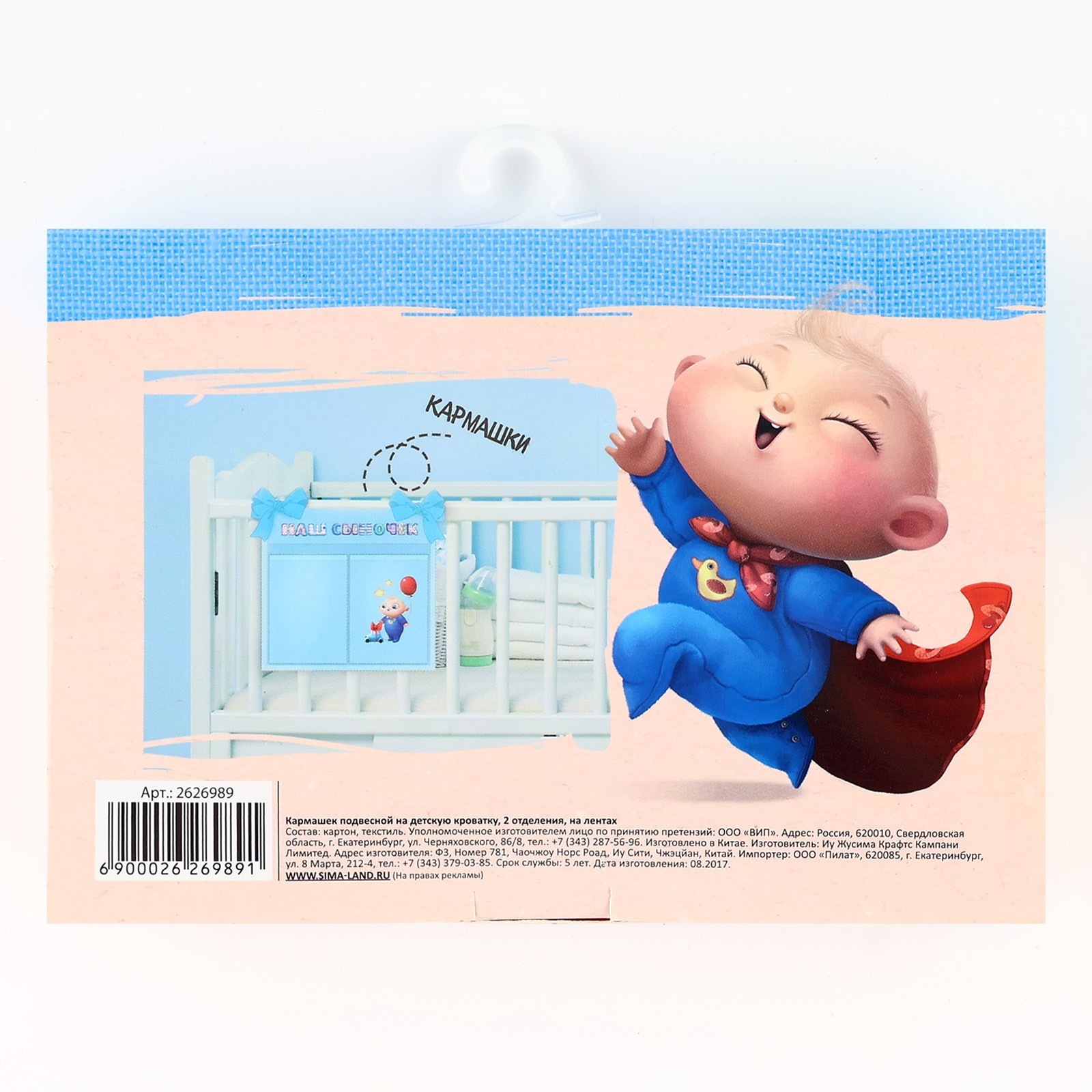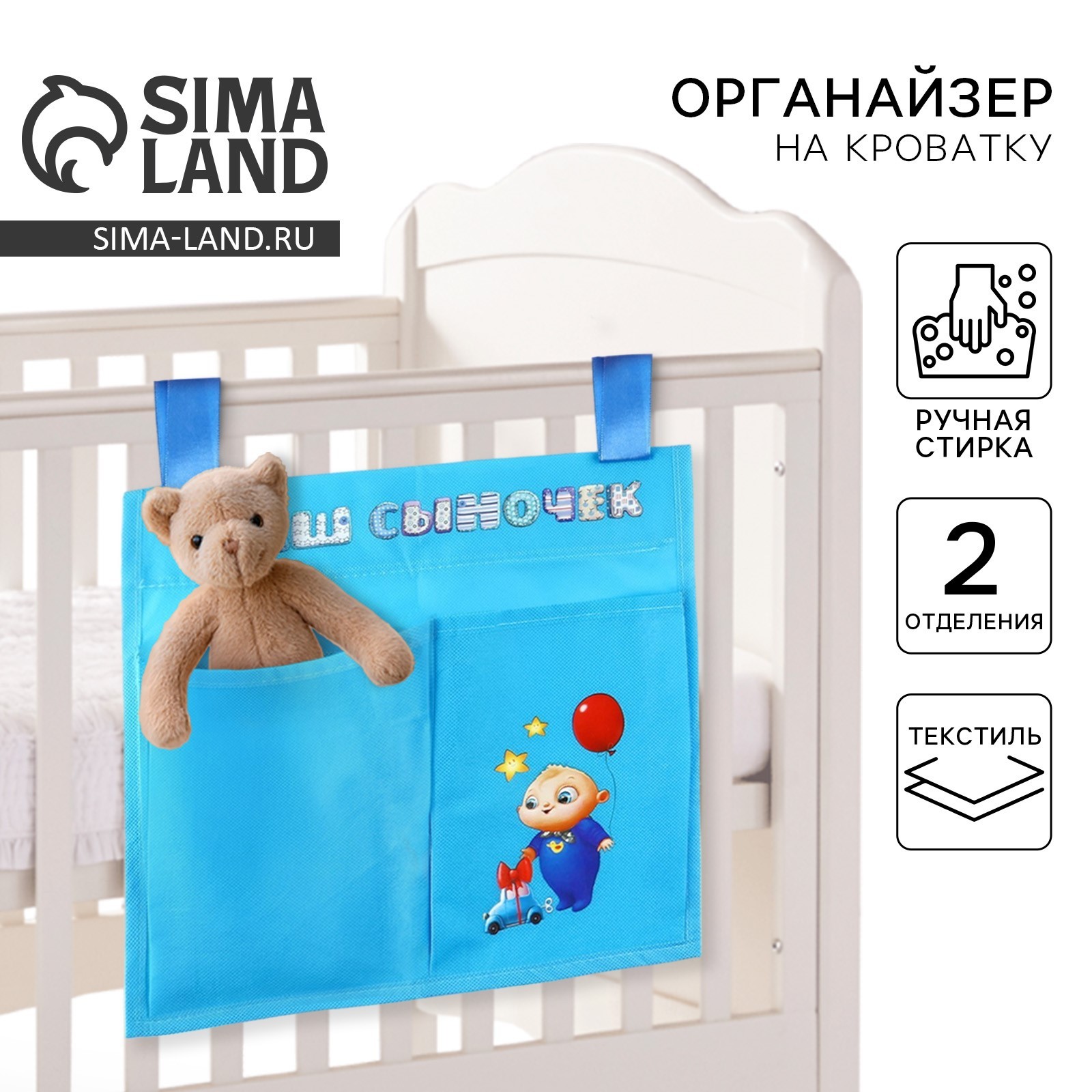 Органайзер для хранения вещей на детскую кроватку «наш сыночек», 2 отделения