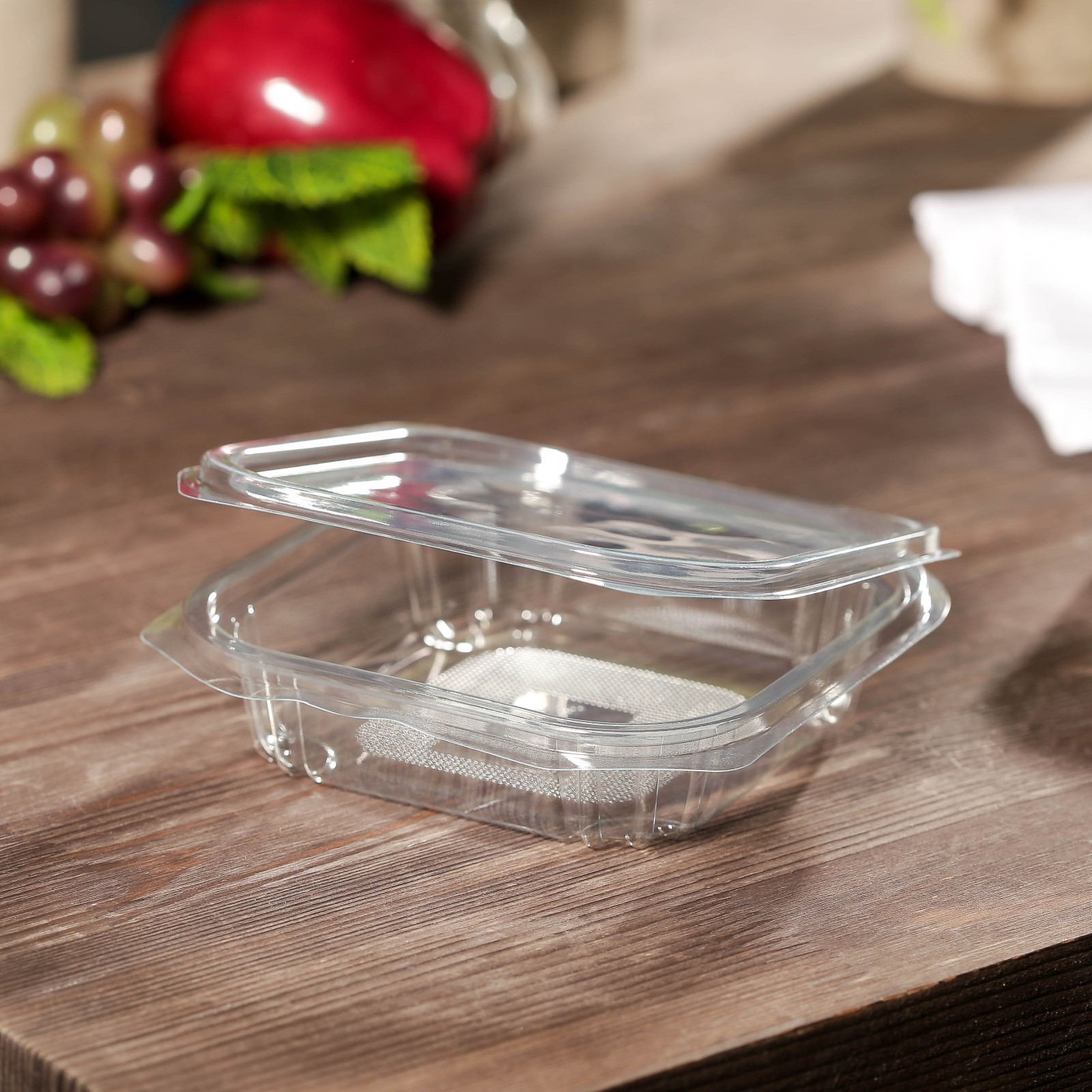 Контейнер пластиковый одноразовый с неразъёмной крышкой кр-ск-250, 250 мл, прозрачный, 13,7x13,7x3,5 см, 360 шт/уп