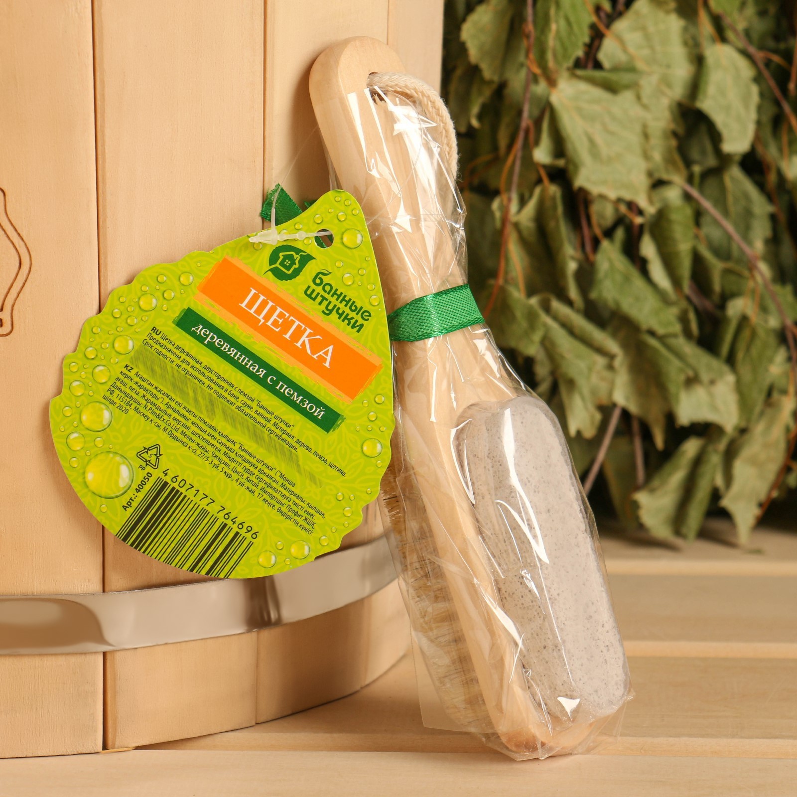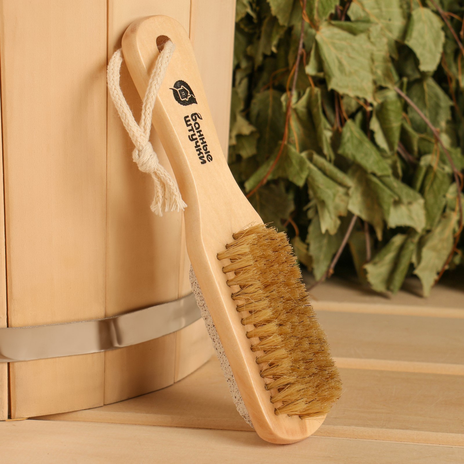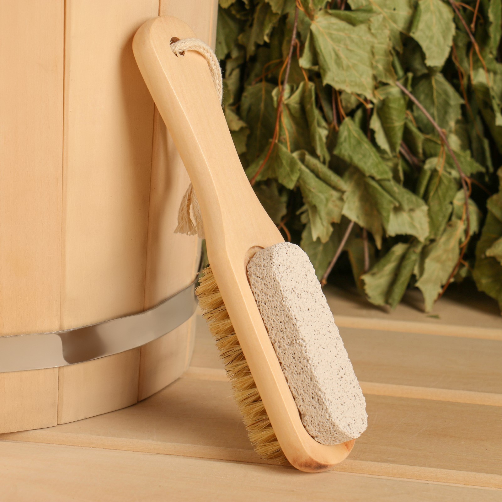 Щетка деревянная, двусторонняя с пемзой