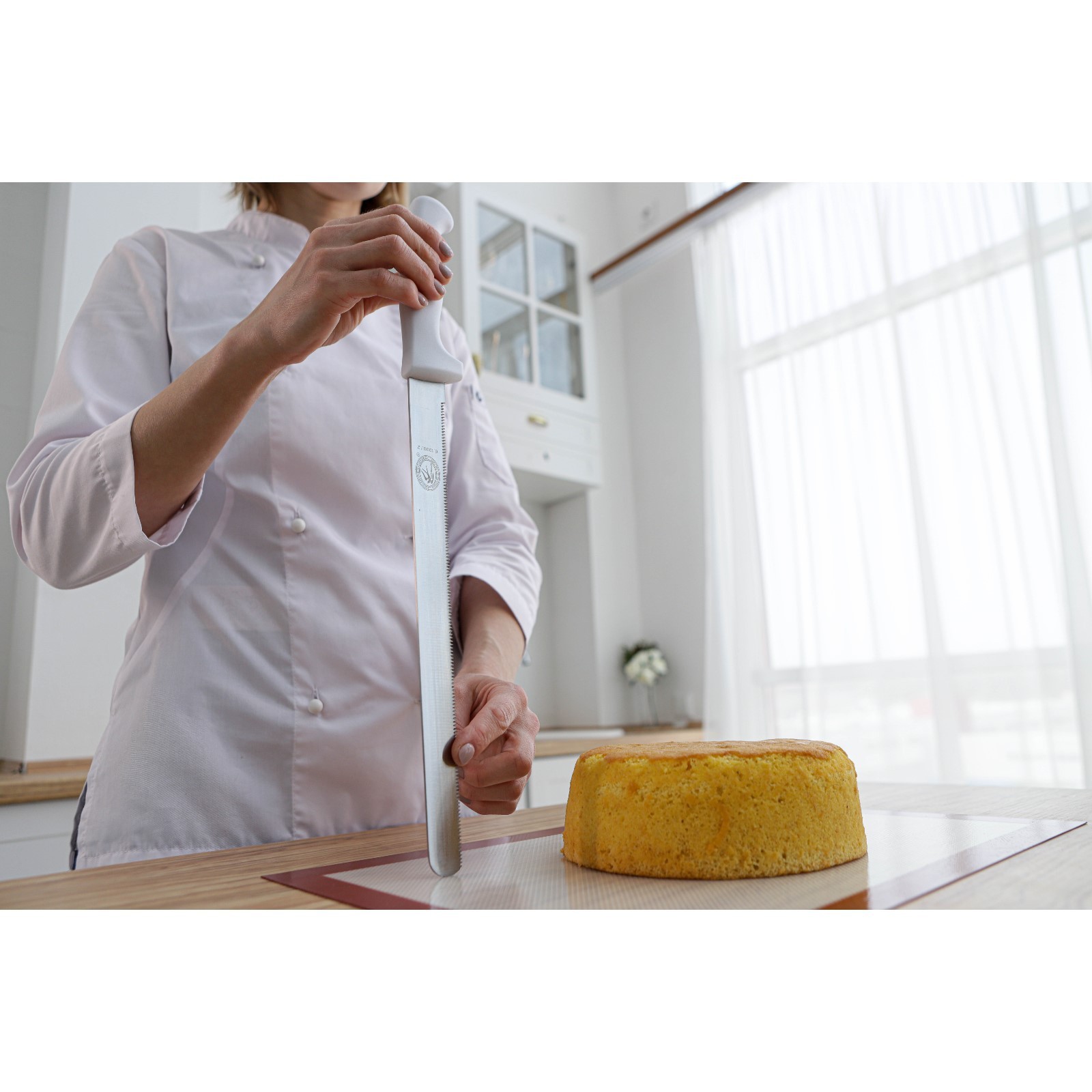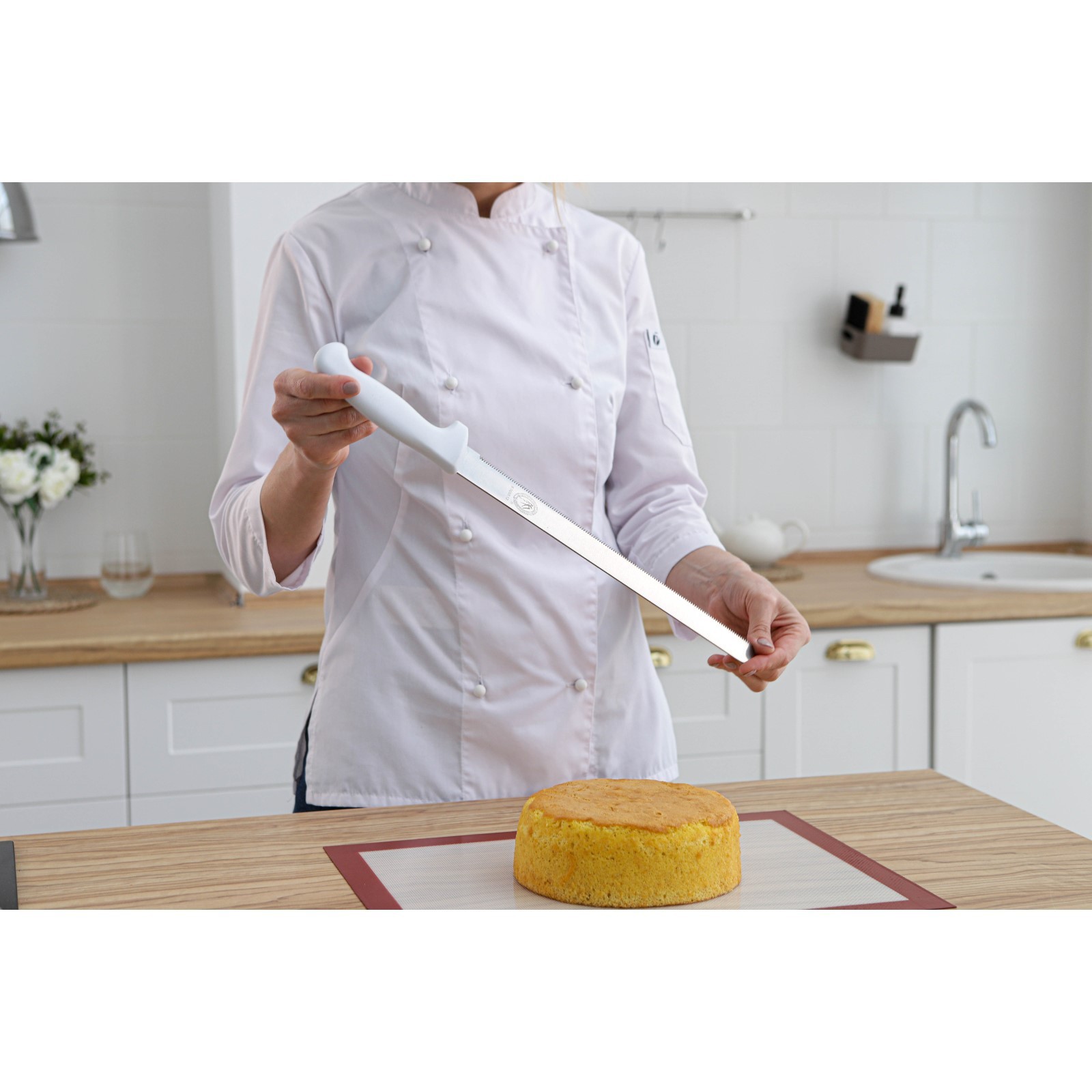 Нож для бисквита, мелкие зубчики, ручка пластик, рабочая поверхность 29,5 см, толщина лезвия 1,9 мм
