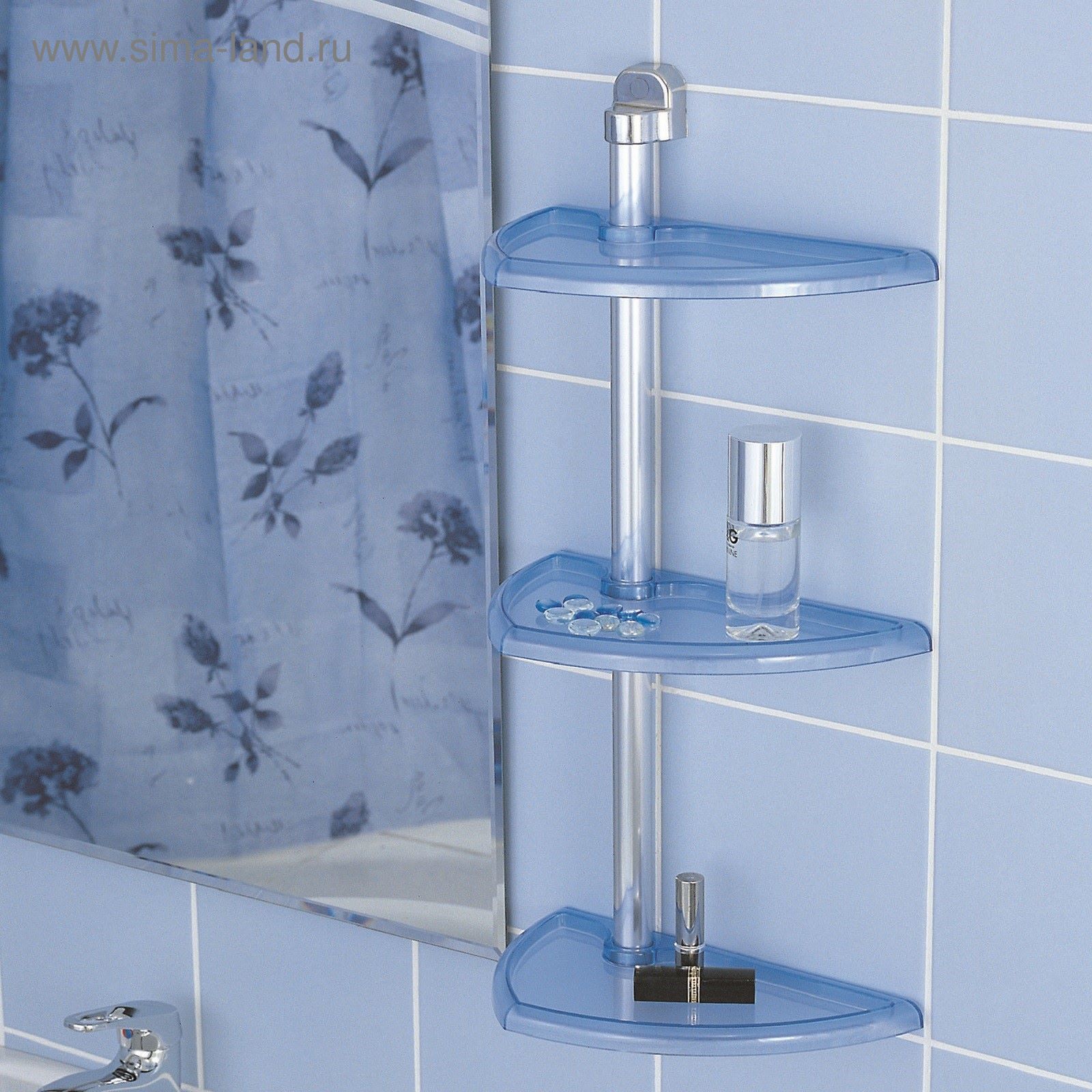 Полка для ванной настенная, 3 яруса, цвет прозрачно-голубой