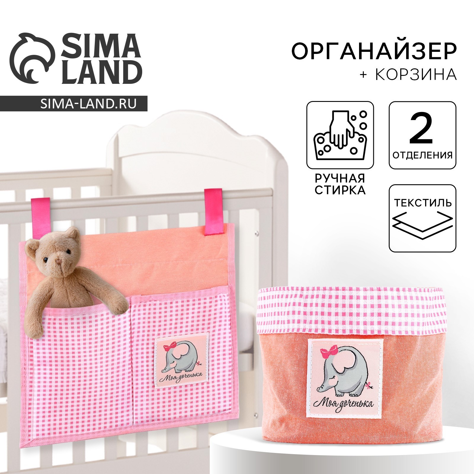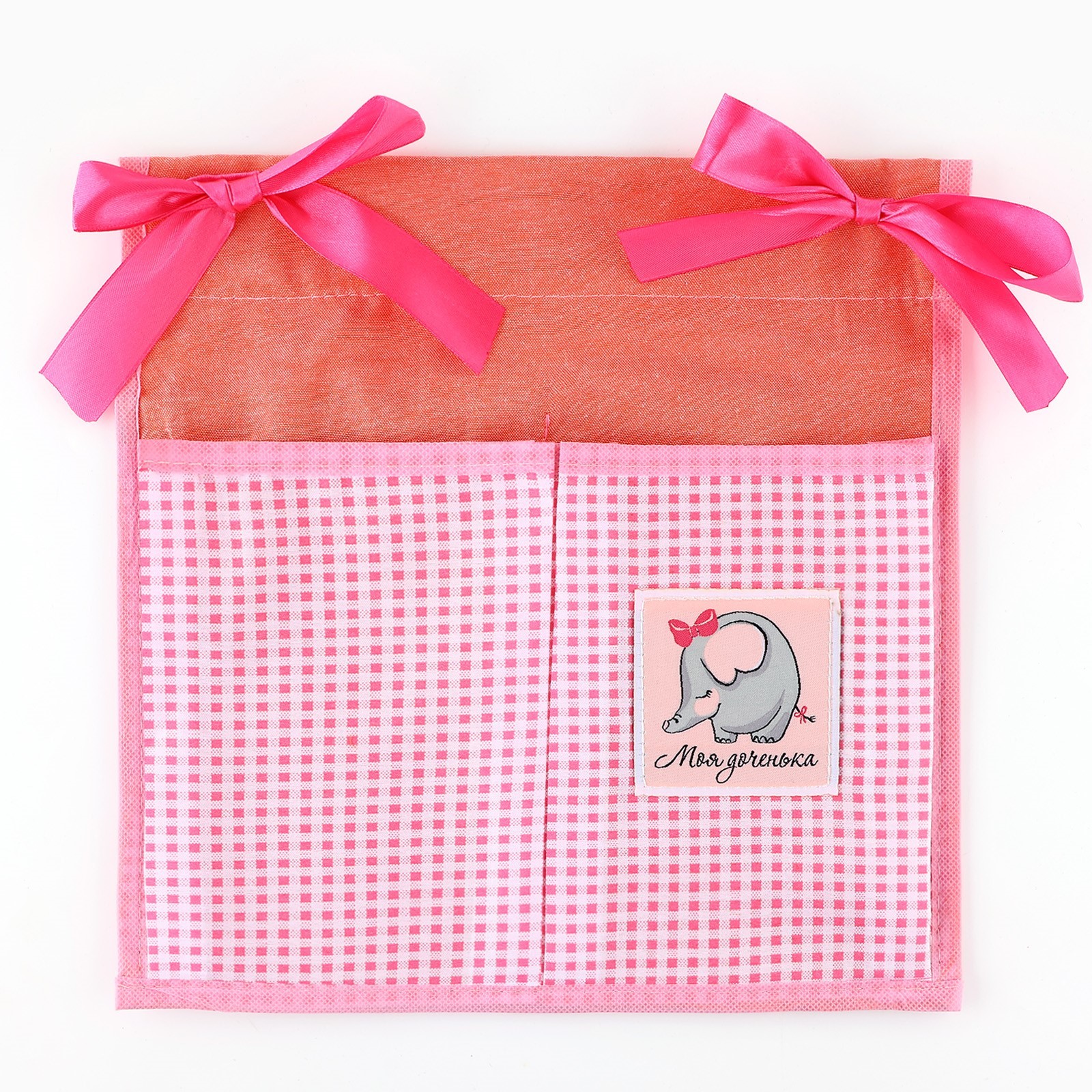Органайзер для хранения вещей на детскую кроватку 2 отделенияи настольная корзинка «наша любимая доченька»
