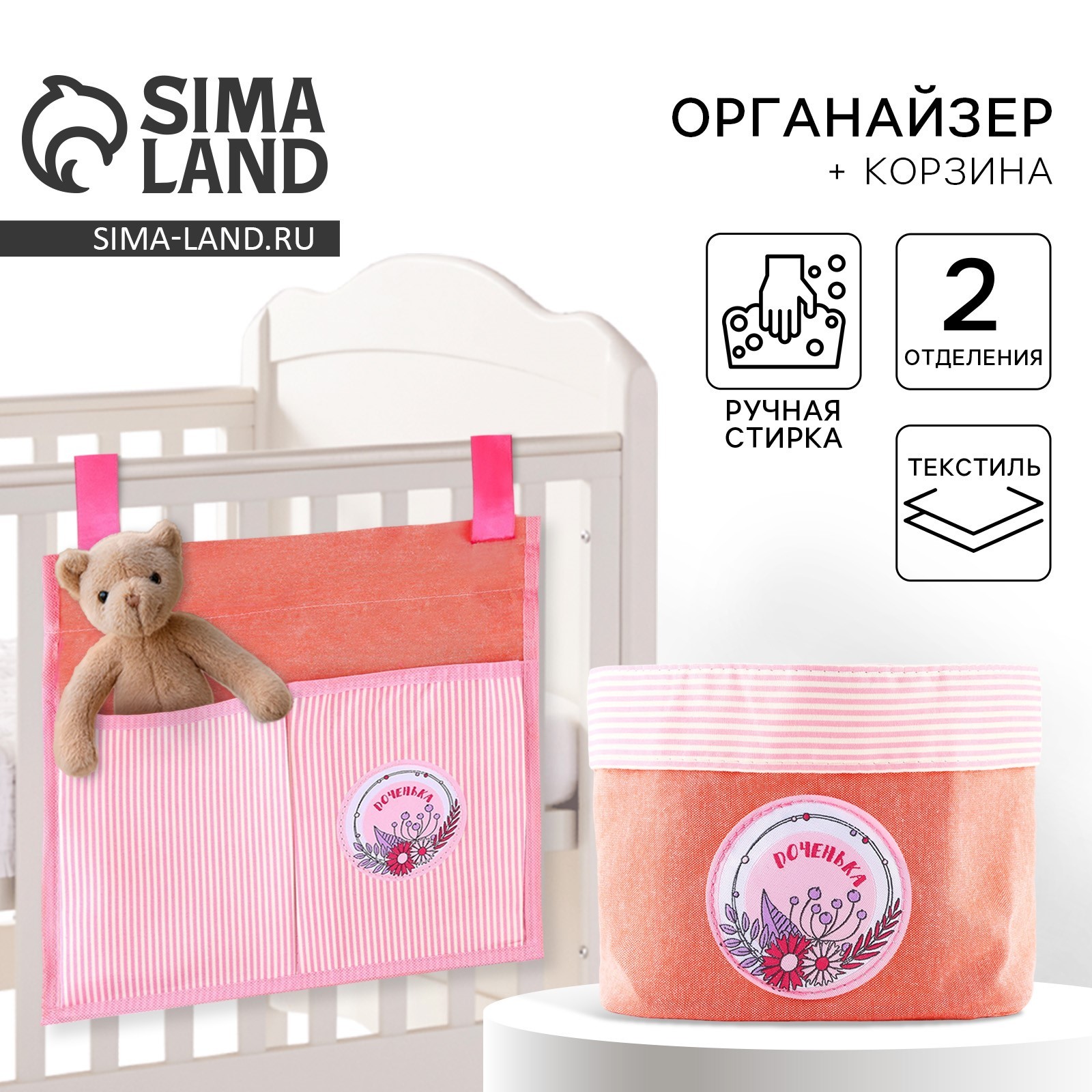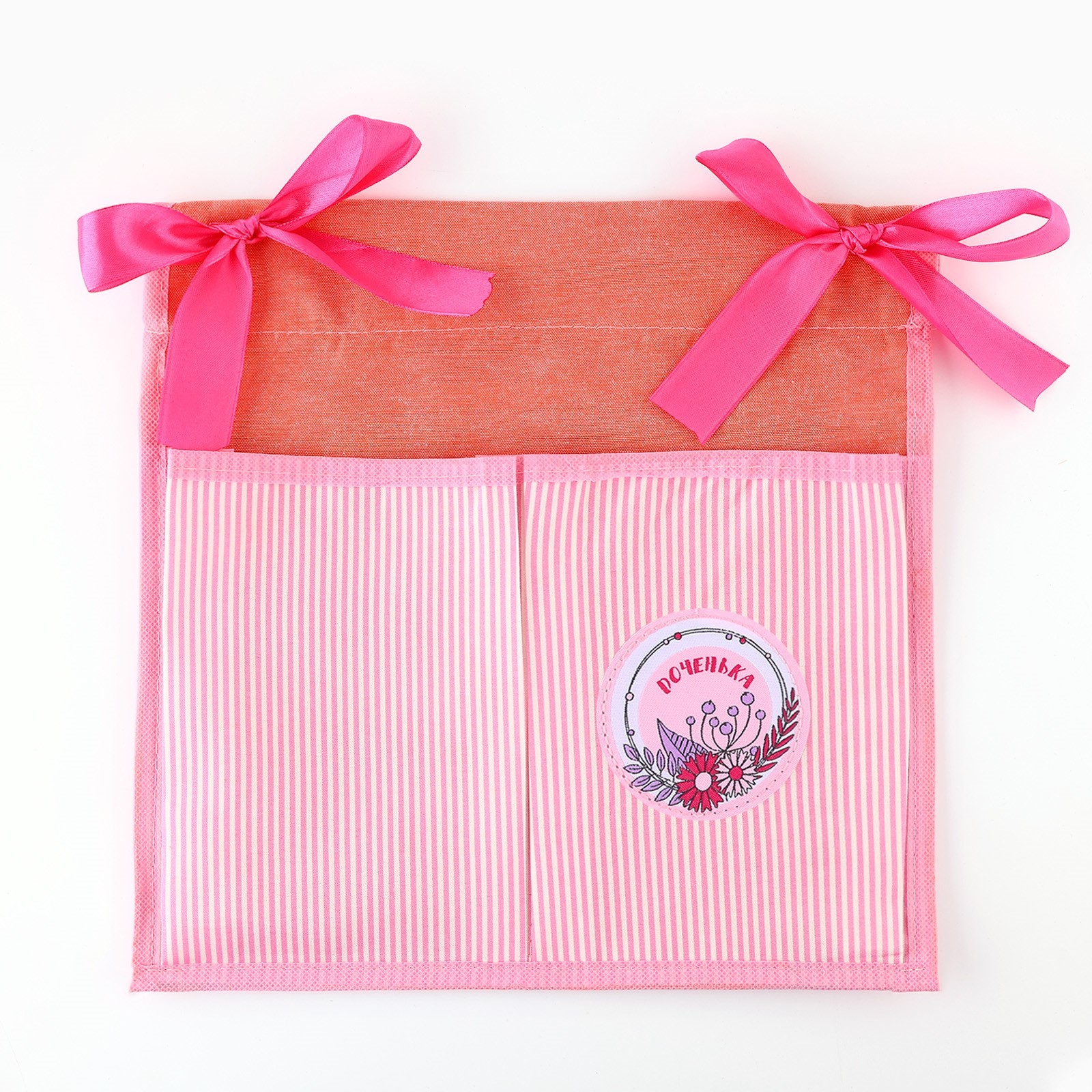 Органайзер для хранения вещей на детскую кроватку 2 отделенияи настольная корзинка «лучшая в мире малышка». Цвет: Розовый Для кого: Для девочки В наборе, шт.: 2 Количество отделений: 2 Материал: Текстиль Рекомендации по уходу: Ручная стирка Вид: Органайзер Составляющие набора: Кармашек для хранения  развернуть описание ▼