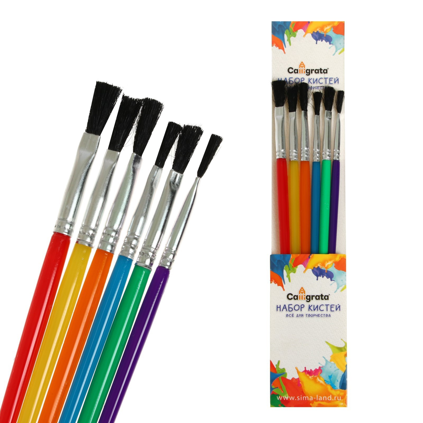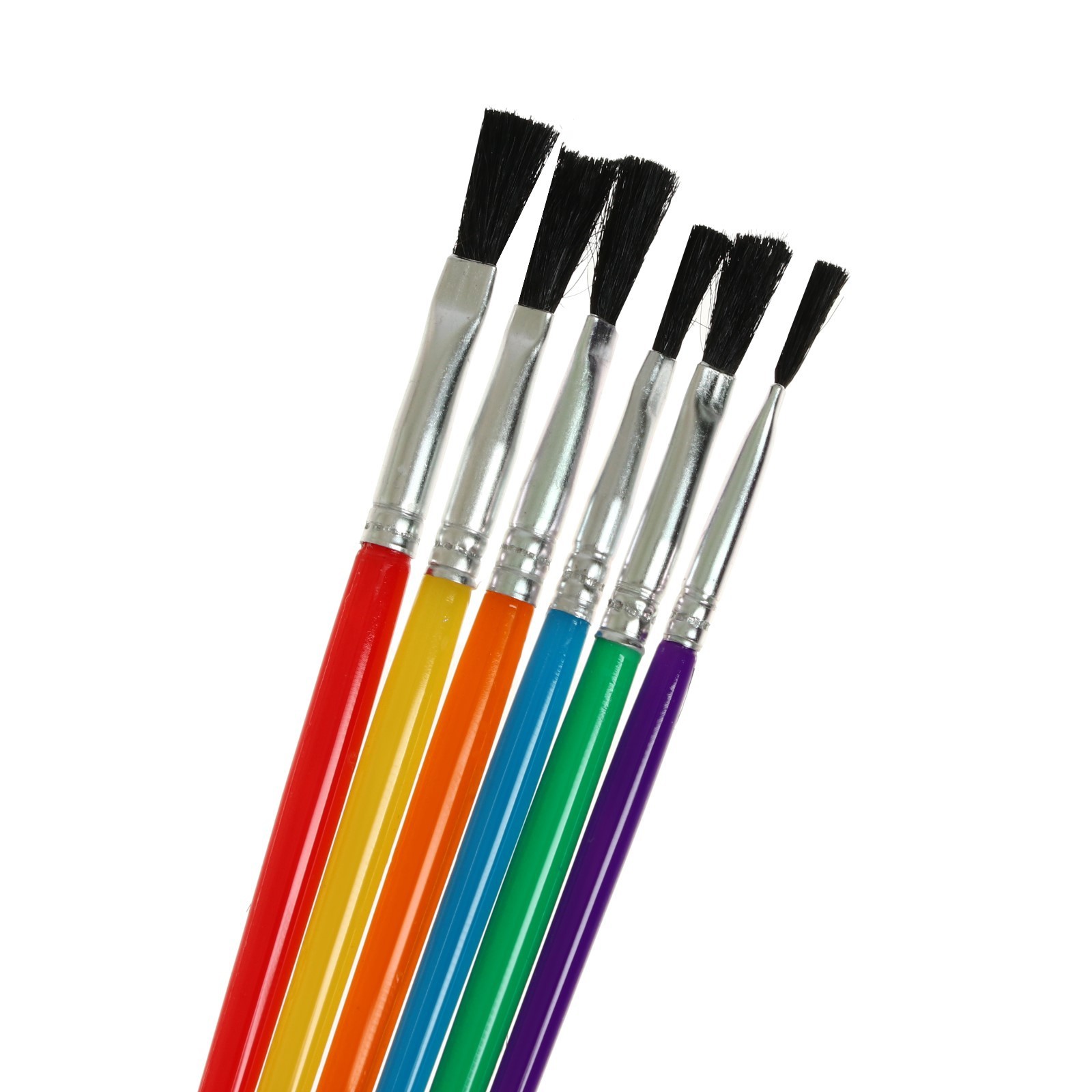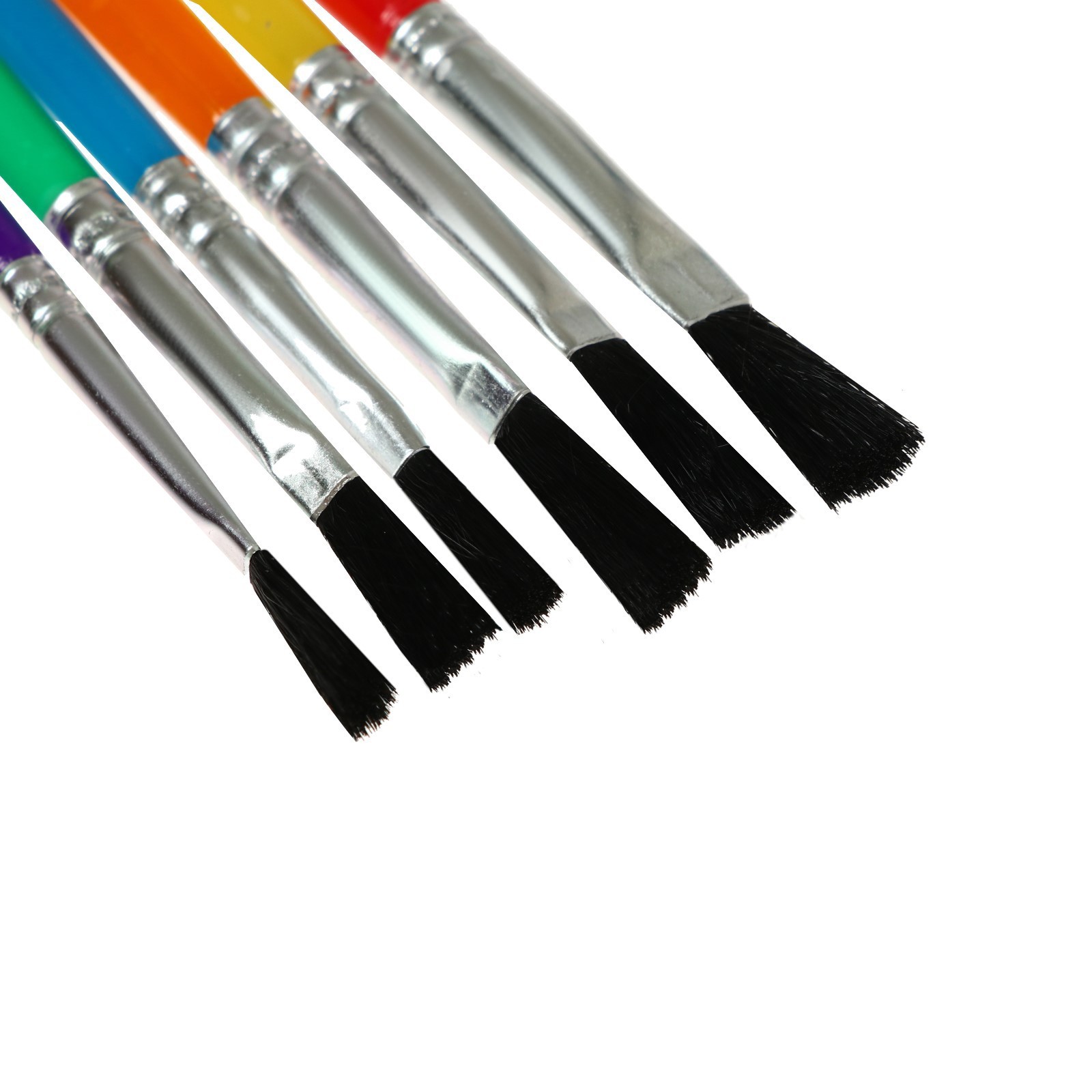 Набор кистей нейлон 6 штук, плоские, с пластиковыми цветными ручками