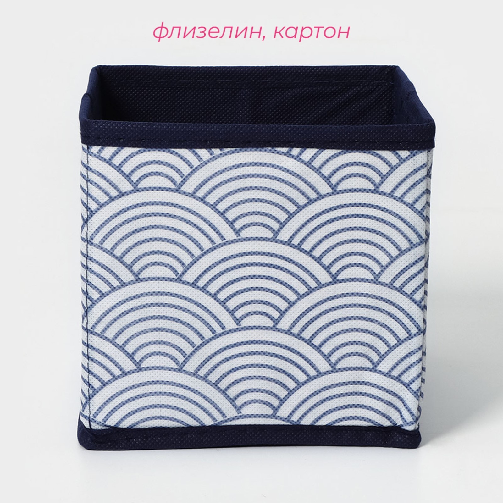 Короб стеллажный для хранения доляна «волна», 14x14x14 см, цвет синий. Многие сталкиваются с проблемой размещения небольших вещей. Занимать ими целую полку жалко, а хранить в других местах неэстетично. Решение есть! Кофр поможет разобраться с беспорядком. Поставьте его в гардероб или на пол, и вы всегда будете знать, где и что в нём находится. Благодаря лёгкости убрать изделие на возвышение смогут даже хрупкие девушки. Преимущества: Большой объем. Многофункциональность. Малый вес и отсутствие острых углов. Стильный дизайн. Вместе с этим простым предметом в доме поселятся порядок и уют. Оригинальное изделие дополнит ваш интерьер и станет украшением помещения. Цвет: Синий Ширина, см: 14 Высота, см: 14 Глубина, см: 14 parts count: 0 Количество отделений: 1 tnved: 6307909800 Материал: Флизелин Материал: Картон  развернуть описание ▼