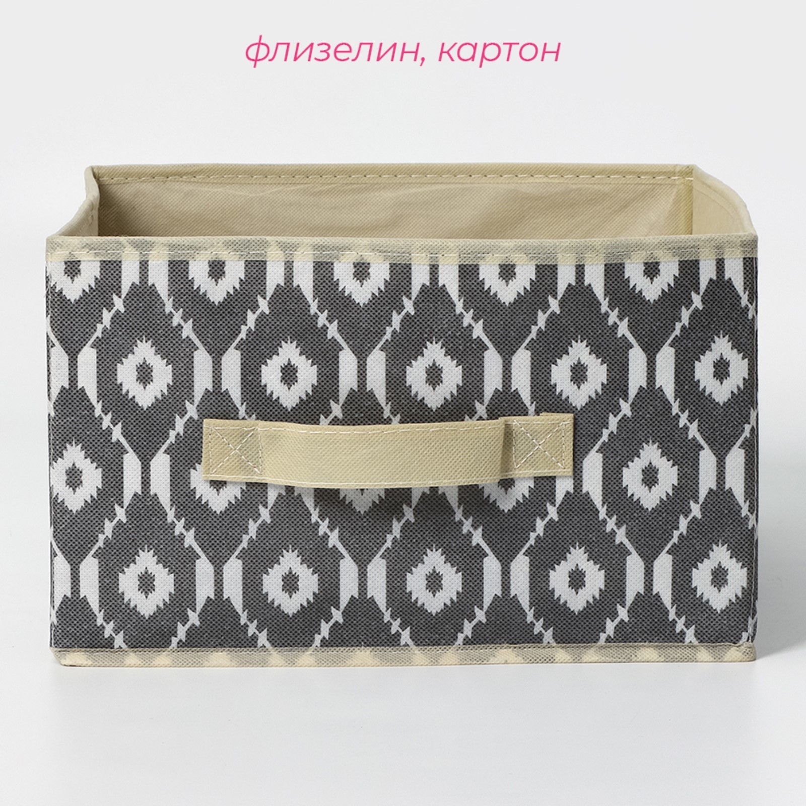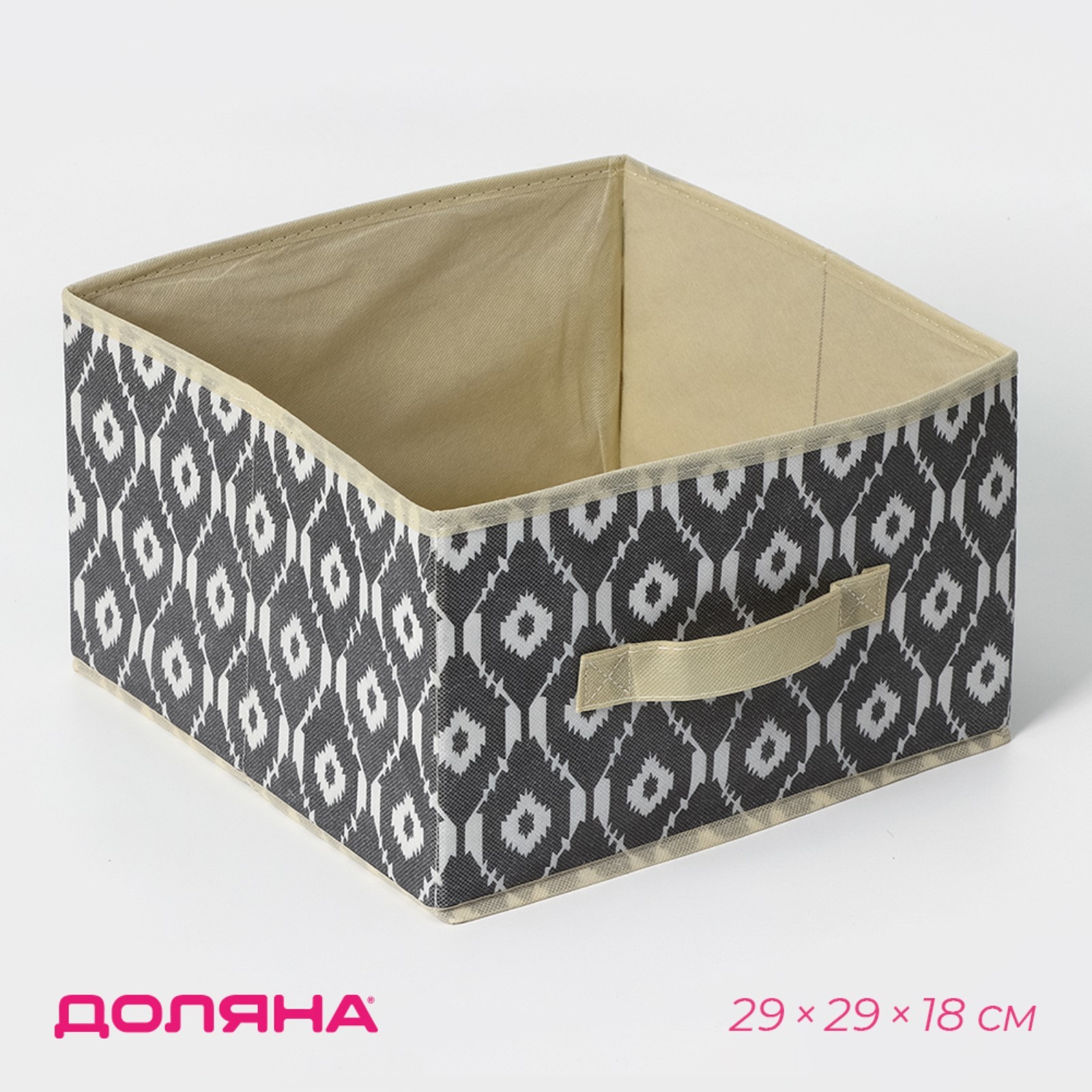 Короб стеллажный для хранения доляна «ромбы», 29x29x18 см, цвет серый. Многие сталкиваются с проблемой размещения небольших вещей. Занимать ими целую полку жалко, а хранить в других местах неэстетично. Решение есть! Кофр поможет разобраться с беспорядком. Поставьте его в гардероб или на пол, и вы всегда будете знать, где и что в нём находится. Благодаря лёгкости убрать изделие на возвышение смогут даже хрупкие девушки. Преимущества: Большой объем. Многофункциональность. Малый вес и отсутствие острых углов. Стильный дизайн. Вместе с этим простым предметом в доме поселятся порядок и уют. Оригинальное изделие дополнит ваш интерьер и станет украшением помещения. Цвет: Серый Ширина, см: 29 Высота, см: 18 Глубина, см: 29 parts count: 0 Количество отделений: 1 tnved: 6307909800 Материал: Флизелин Материал: Картон  развернуть описание ▼