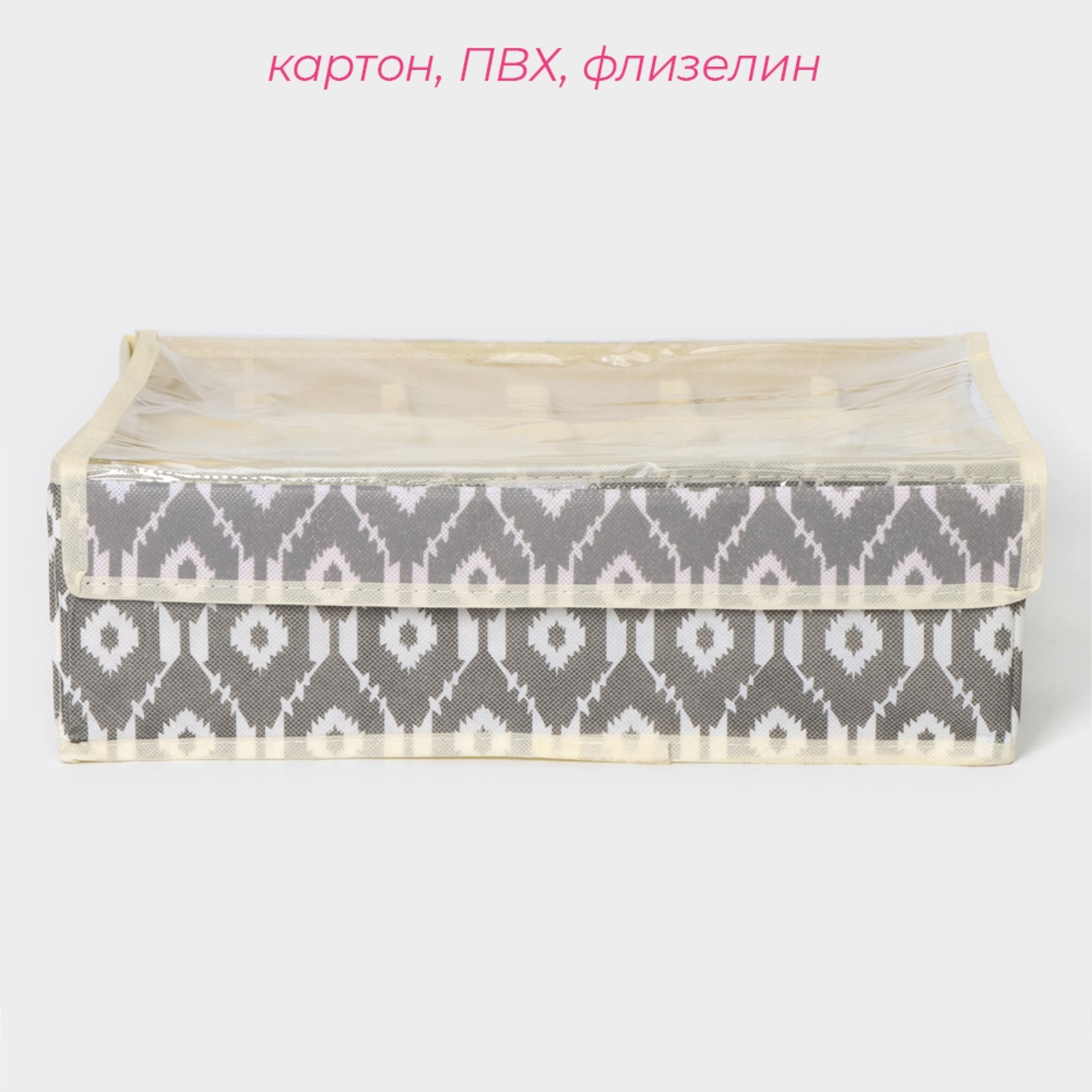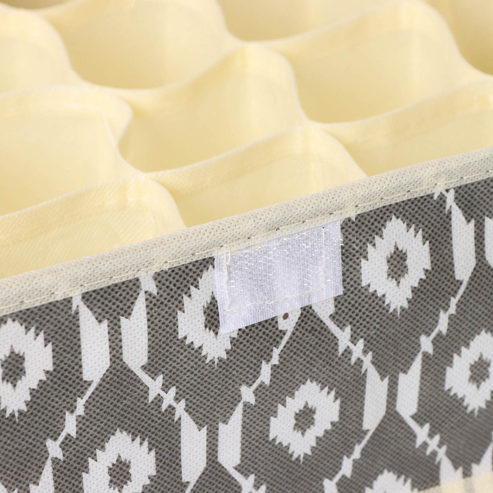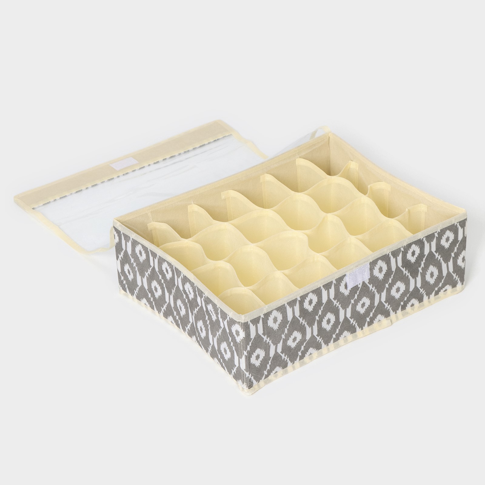 Органайзер для хранения белья с крышкой доляна «ромбы», 24 ячеек, 38x30x12 см, цвет серый