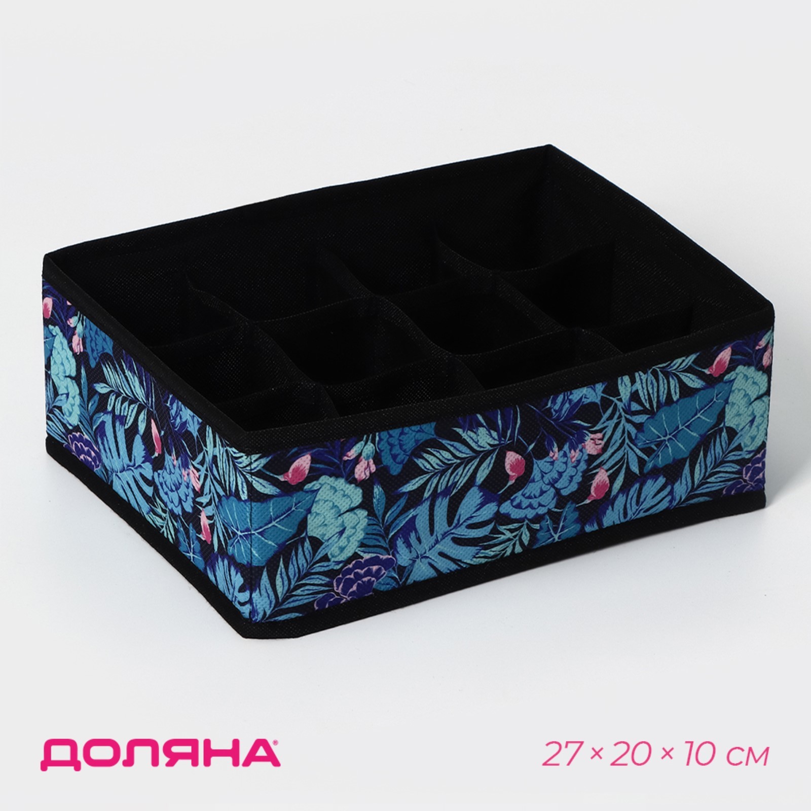 Органайзер для хранения белья доляна «тропики», 12 ячеек, 27x20x10 см, цвет синий
