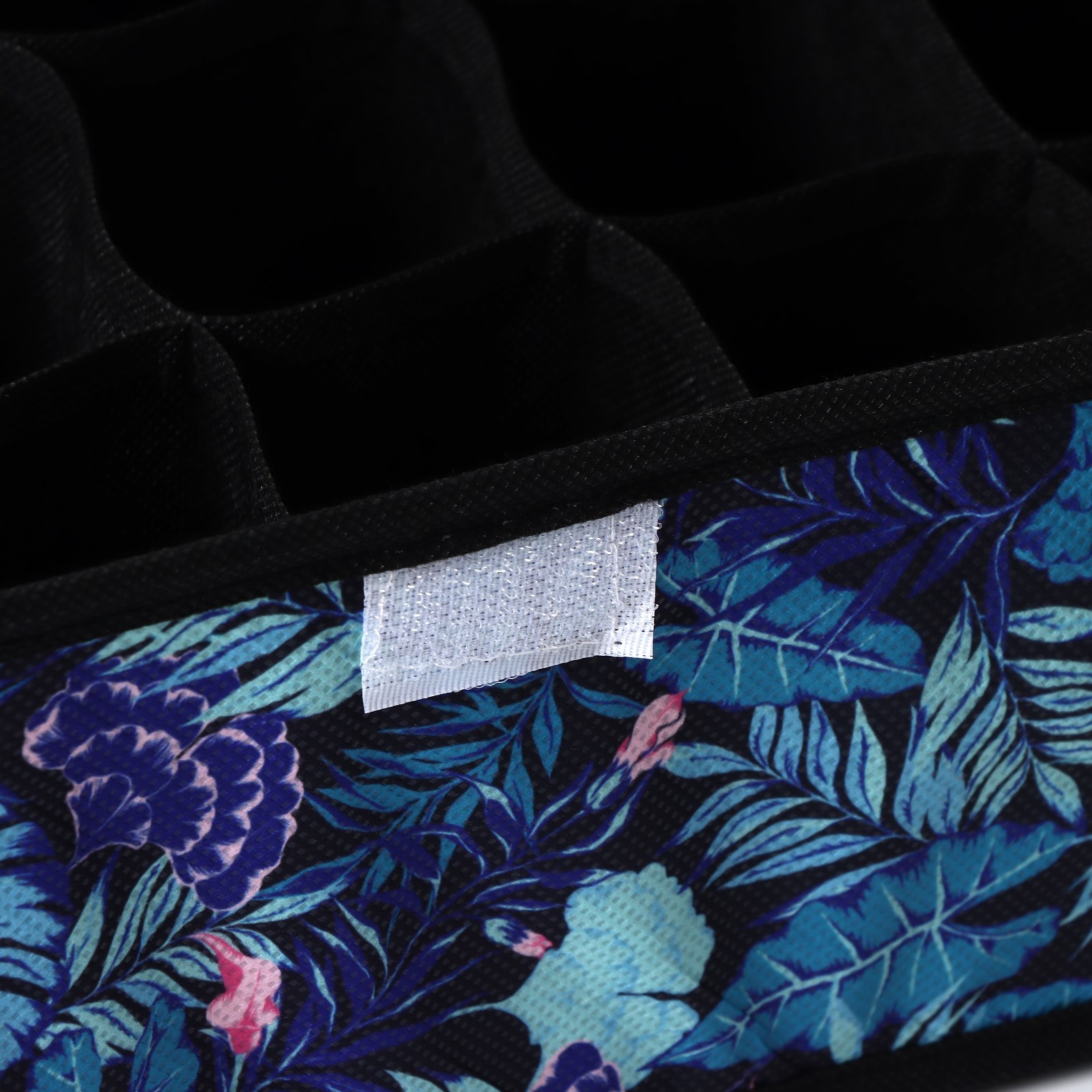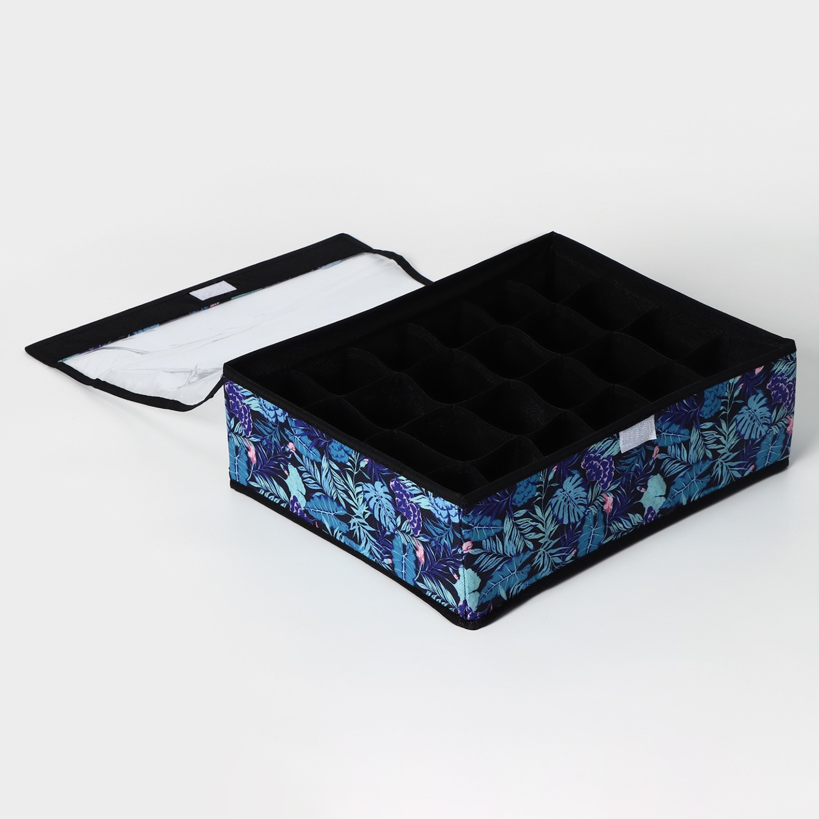 Органайзер для хранения белья с крышкой доляна «тропики», 24 ячеек, 38x30x12 см, цвет синий