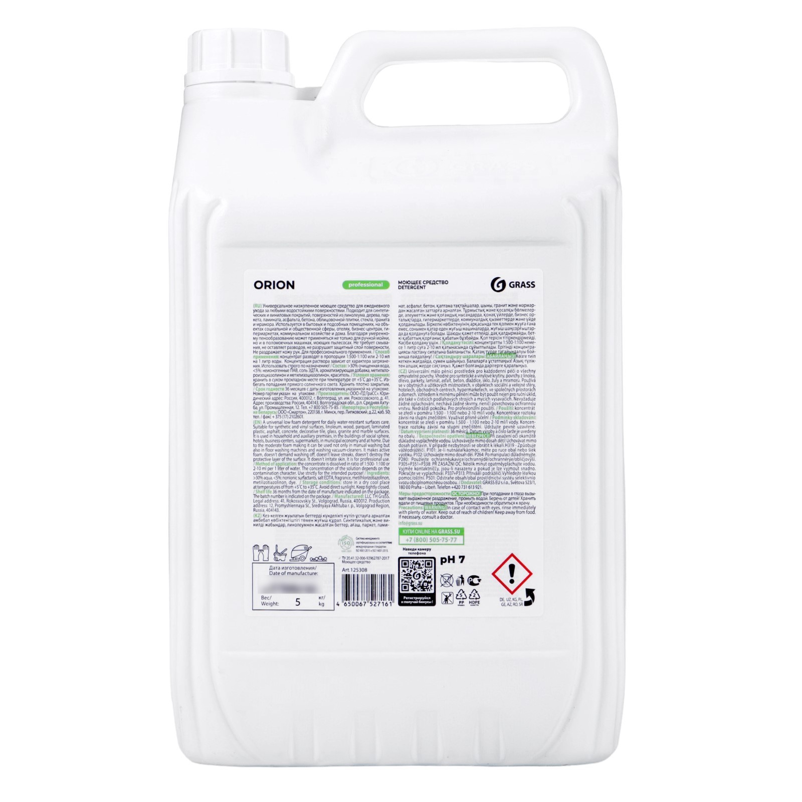 Универсальное низкопенное моющее средство orion канистра, 5 кг. Универсальное низкопенное моющее средство для ежедневного ухода за любыми моющимися поверхностями. Подходит для синтетических и виниловых покрытий, поверхностей из линолеума, дерева, паркета, ламината, асфальта, бетона, облицовочной плитки, стекла, гранита и мрамора. Используется в бытовых и подсобных помещениях, на объектах социальной и общественной сферы, отелях, бизнес-центрах, гипермаркетах, коммунальном хозяйстве и дома. Благодаря умеренному пенообразованию может применяться не только для ручной мойки, но и в поломоечных машинах, моющих пылесосах. Не требует смывания, не оставляет разводов, не разрушает защитный слой поверхности. Не раздражает кожу рук. Способ применения: концентрат разводят в пропорции 1:500-1:100 или 2-10 мл на 1 литр воды. Концентрация раствора зависит от характера загрязнения. Назначение: универсальное низкопенное моющее средство для ежедневного ухода за любыми моющимися поверхностями. Подходит для синтетических и виниловых покрытий, поверхностей из линолеума, дерева, паркета, ламината, асфальта, бетона, облицовочной плитки, стекла, гранита и мрамора. Используется в бытовых и подсобных помещениях, на обьектах социальной и общественной сферы, отелях, бизнес-центрах, гипермаркетах, коммунальном хозяйстве и дома. Благодаря умеренному пенообразованию может применяться не только для ручной мойки, но и в поломоечных машинах, моющих пылесосах. Не требует смывания, не оставляет разводов, не разрушает защитный слой поверхности. Не раздражает кожу рук. Способ применения: концентрат разводят в пропорции 1:500-1:100 или 2-10 мл на 1 литр воды. Концентрация раствора зависит от характера загрязнения. Меры предосторожности: при попадании на кожу или слизистую оболочку промыть водой. При необходимости обратиться к врачу. При частой работе использовать перчатки. Беречь от детей. parts count: 0 Вес, г/Объём, мл: 5000 Объём, мл: 5000  развернуть описание ▼