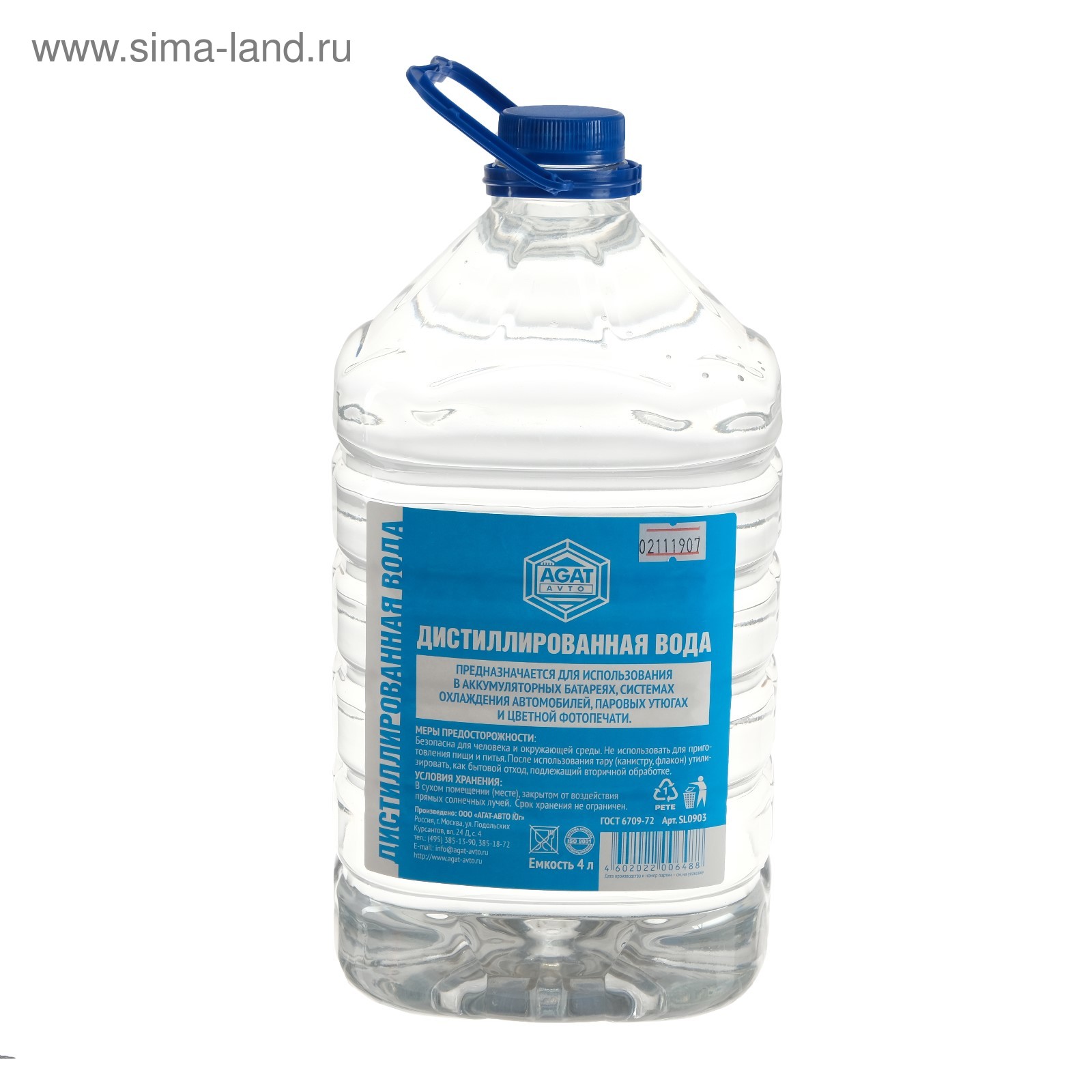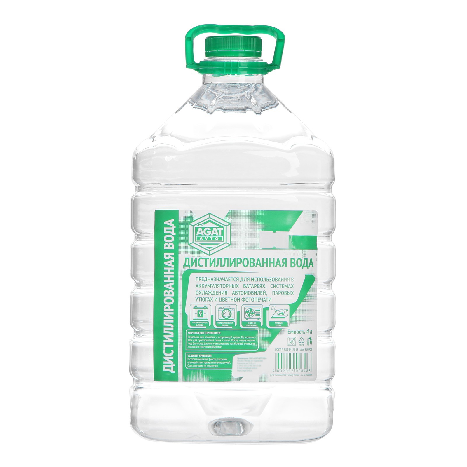 Вода дистиллированная агат, 4 л. Дистиллированная вода предназначена для разведения концентратов охлаждающих жидкостей и электролита при обслуживании автомобилей и различного бытового применения (утюги, гладильные машины, увлажнители воздуха и т. п. ). При отрицательной температуре замерзает. После размораживания полностью сохраняет свои свойства. Не требует специальных условий хранения и соблюдения правил безопасности. Вес, г/Объём, мл: 4000 Объём: 1 л - 5 л : 0 Вид: Дистиллированная вода  развернуть описание ▼