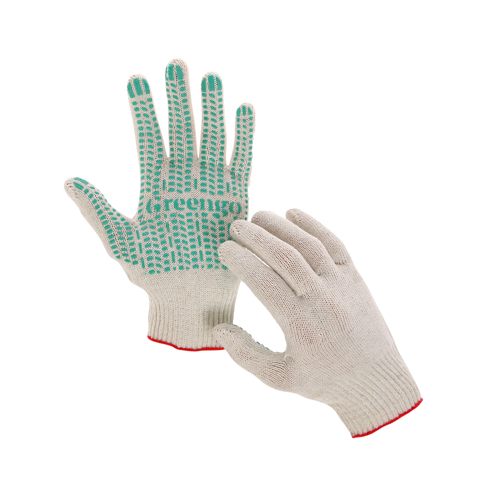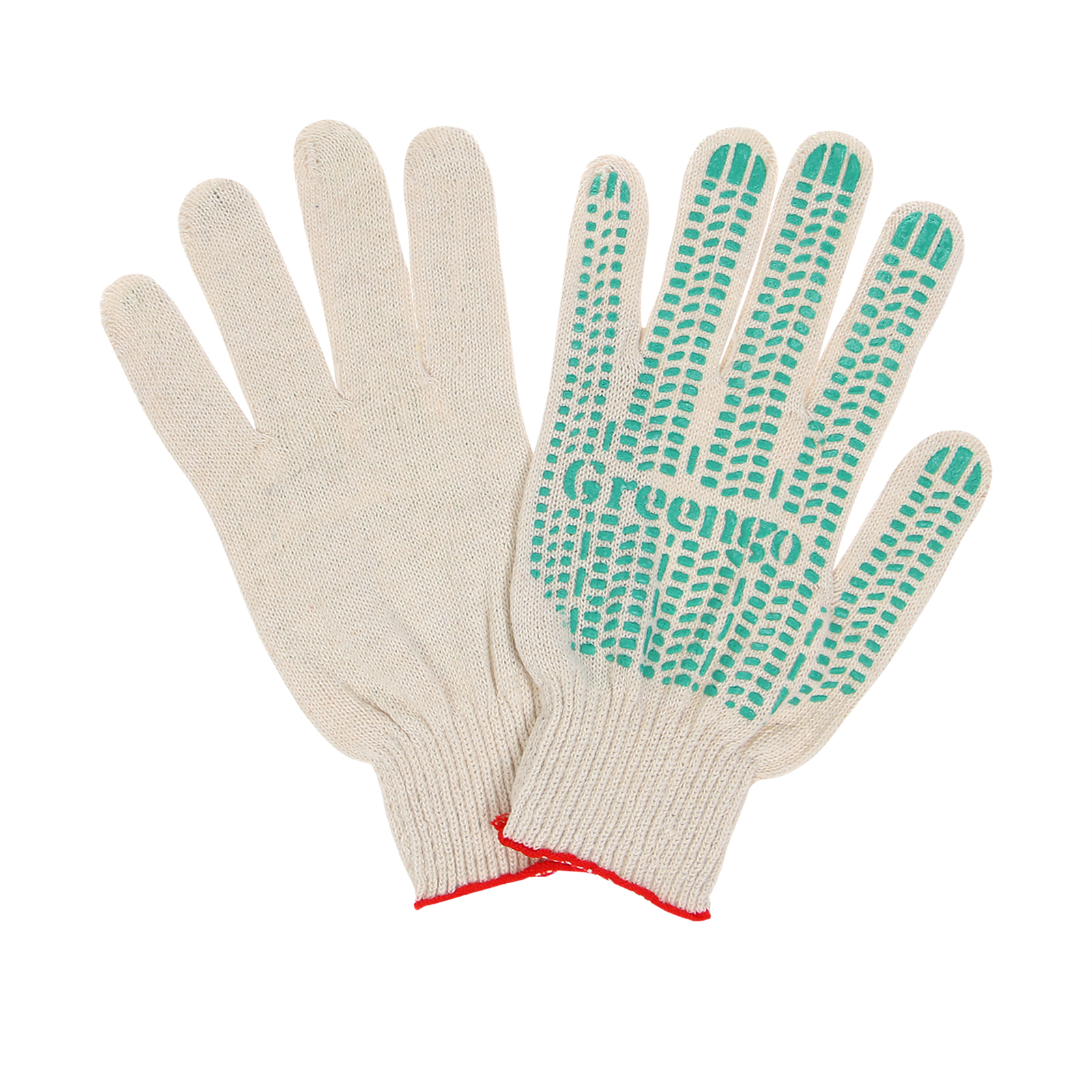 Перчатки садовые, х/б, вязка 10 класс, 4 нити, размер 9, с пвх точками, белые, Greengo