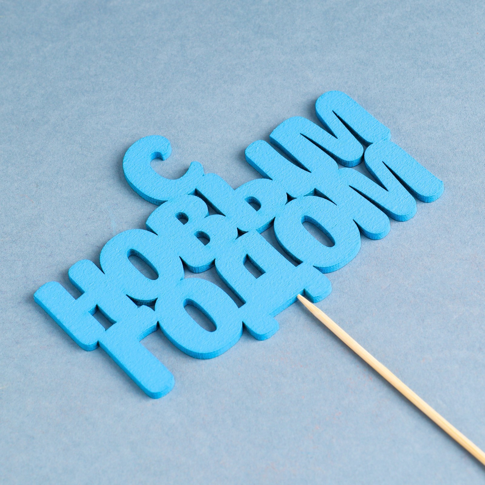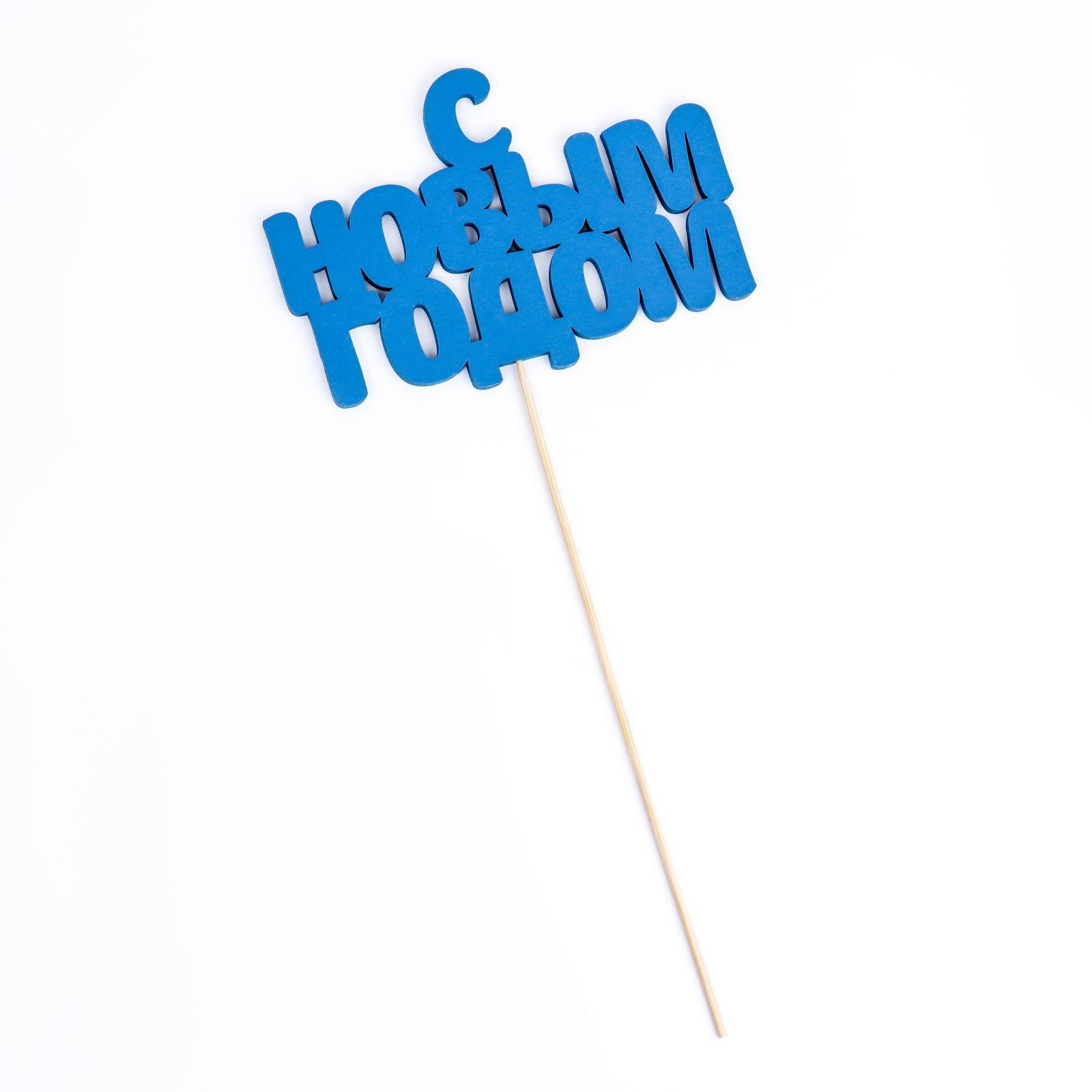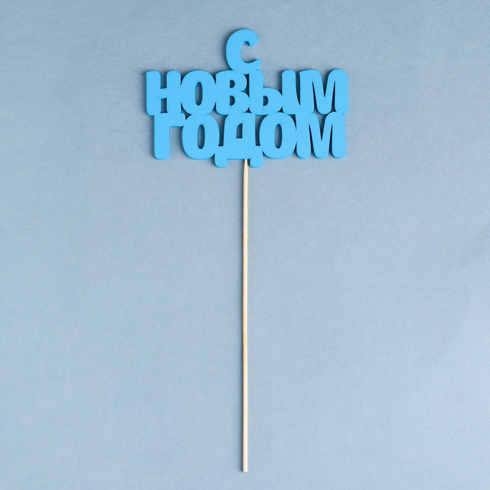 Топпер "с новым годом", 12х10см, синий дарим красиво