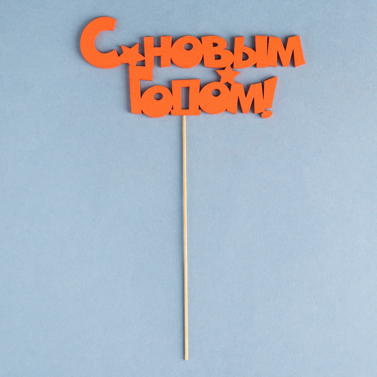 Топпер "с новым годом" , 17х8 см, красный дарим красиво