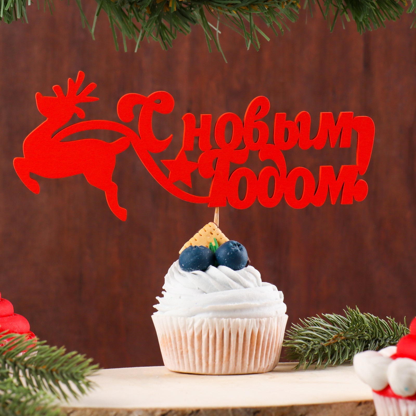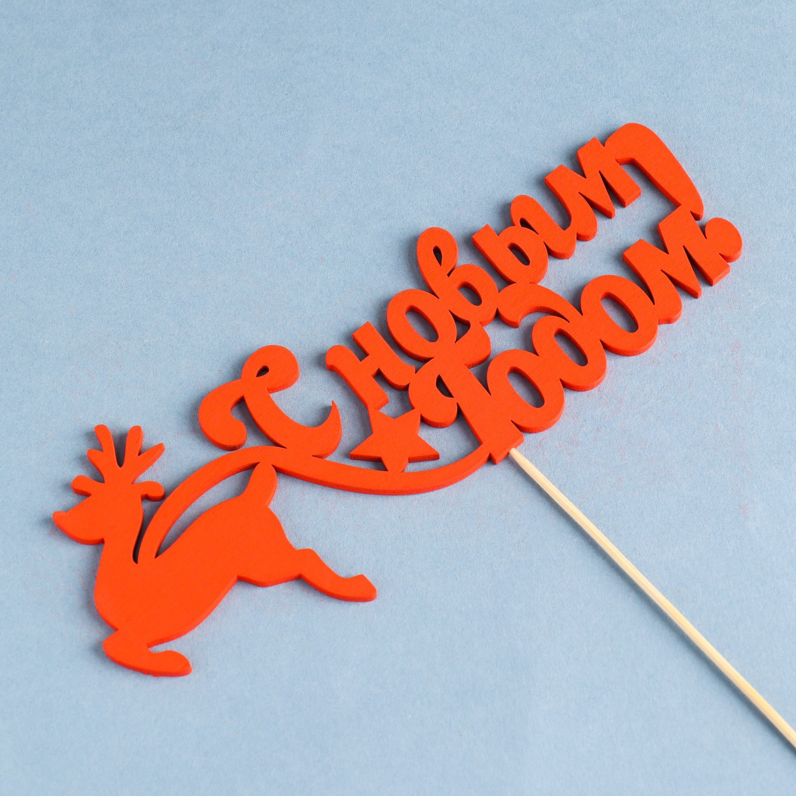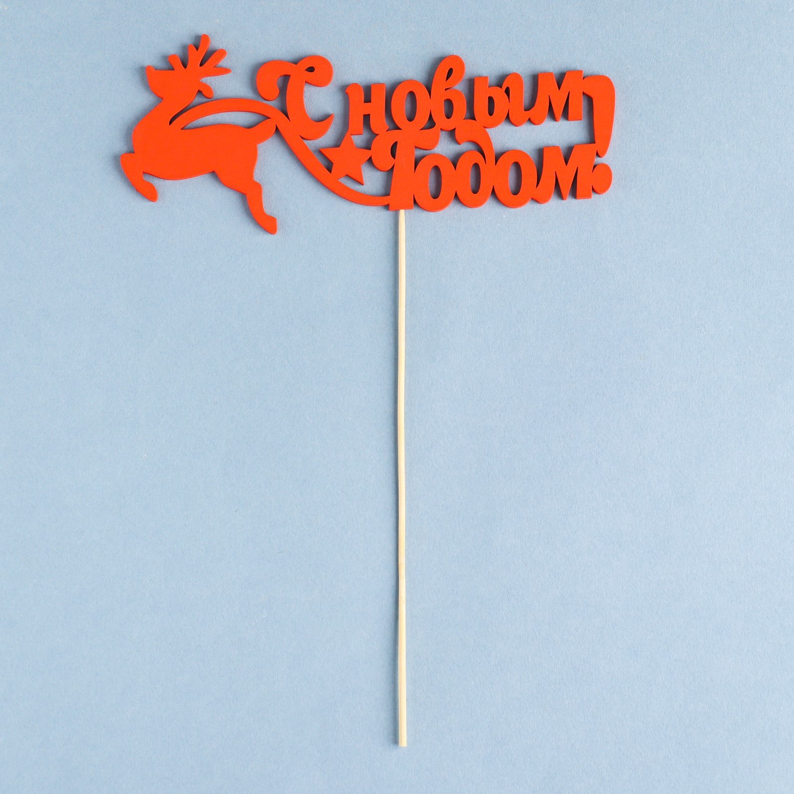 Топпер "с новым годом. олень" , 18х7 см, красный дарим красиво