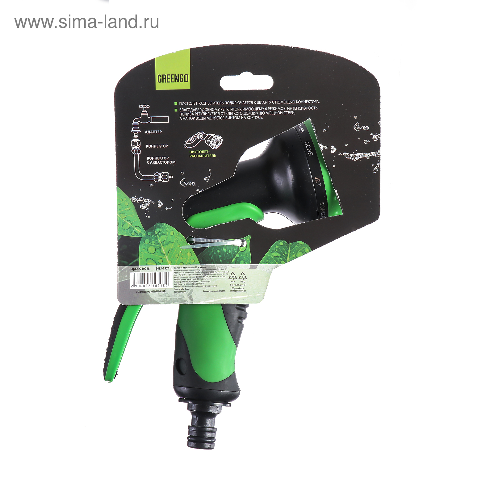 Пистолет-распылитель, 10 режимов, быстросъёмное соединение, пластик, Greengo