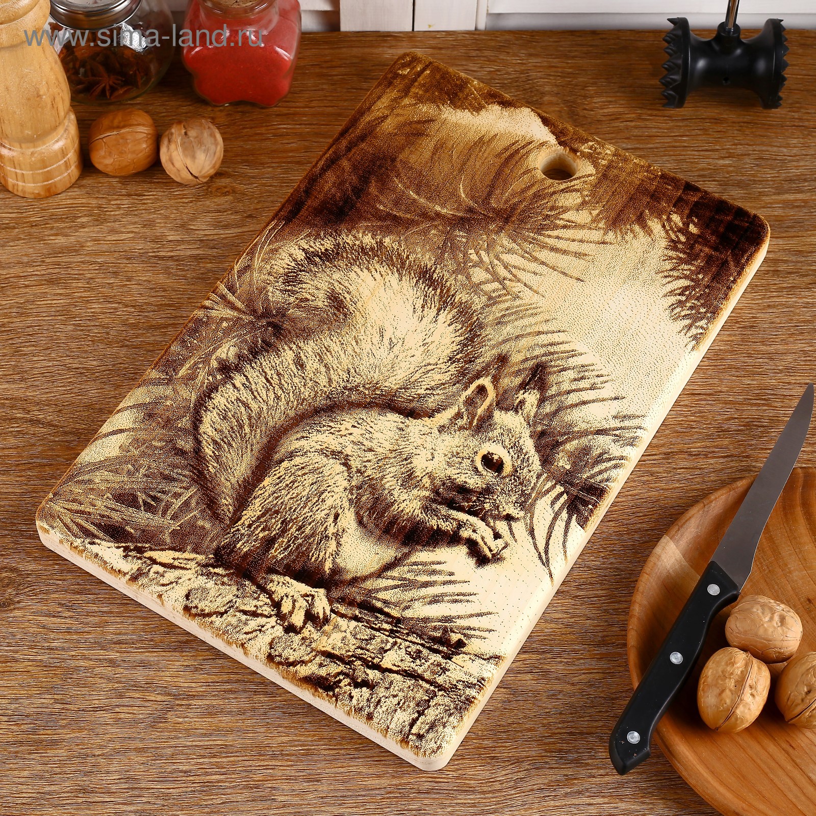 Доска из массива кедра «белка с орешками», большая, прямоугольная, 23 X 35 см