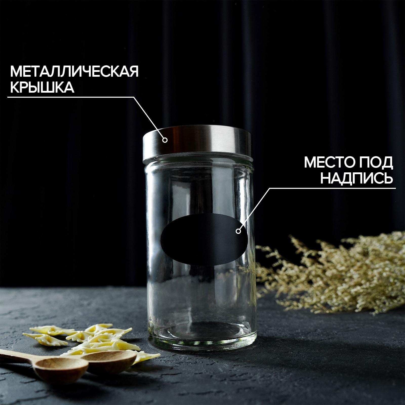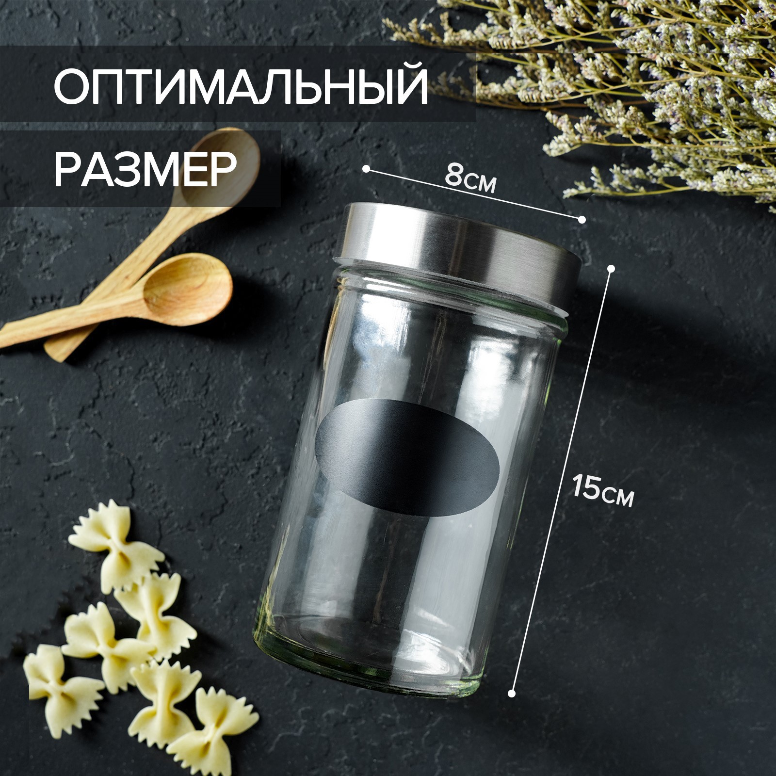 Банка стеклянная для сыпучих продуктов с местом под надпись доляна «премиум», 550 мл, 15x8 см