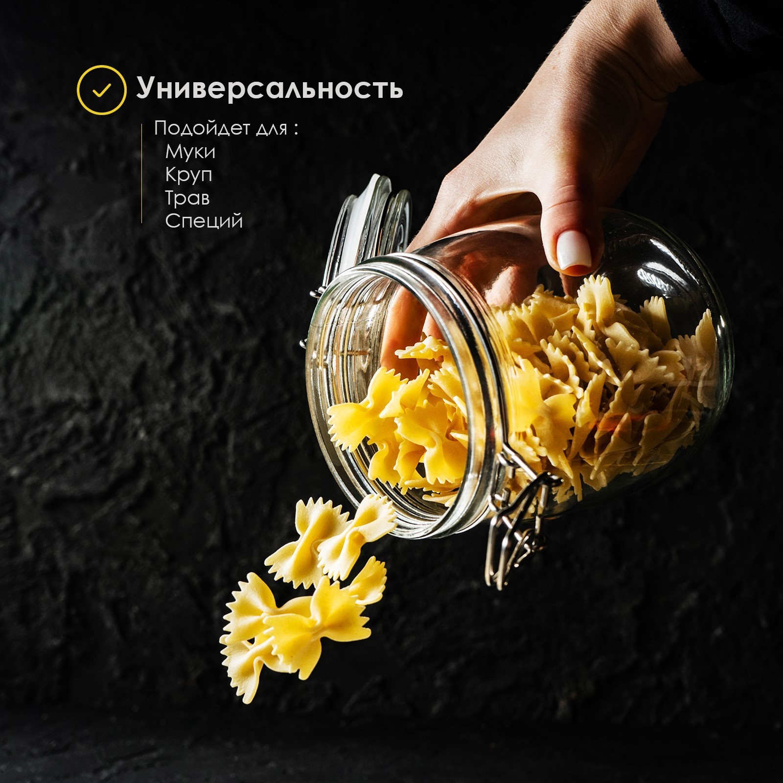 Чтобы травы и специи сохраняли свои лучшие качества дольше, а на кухне царил порядок, разложите продукты по специальным ёмкостям. Стеклянная банка станет практичным предметом, который поможет сберечь свежесть пищи и сделает интерьер кухни уютнее.