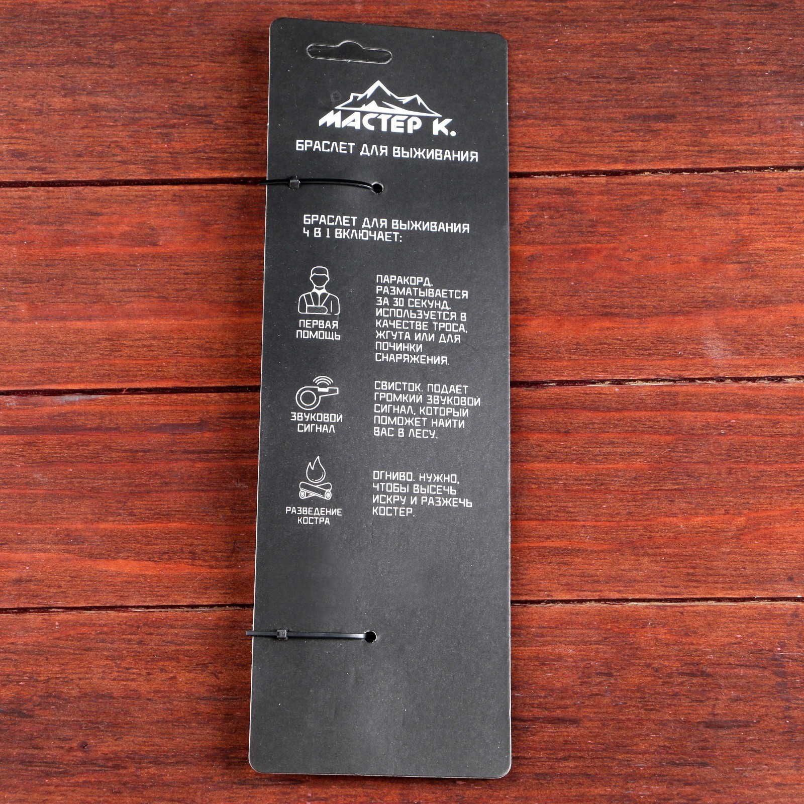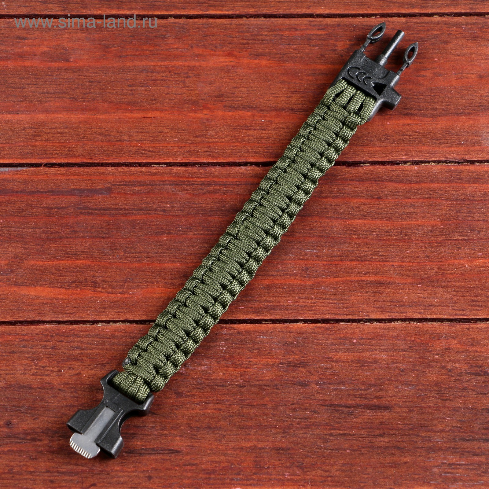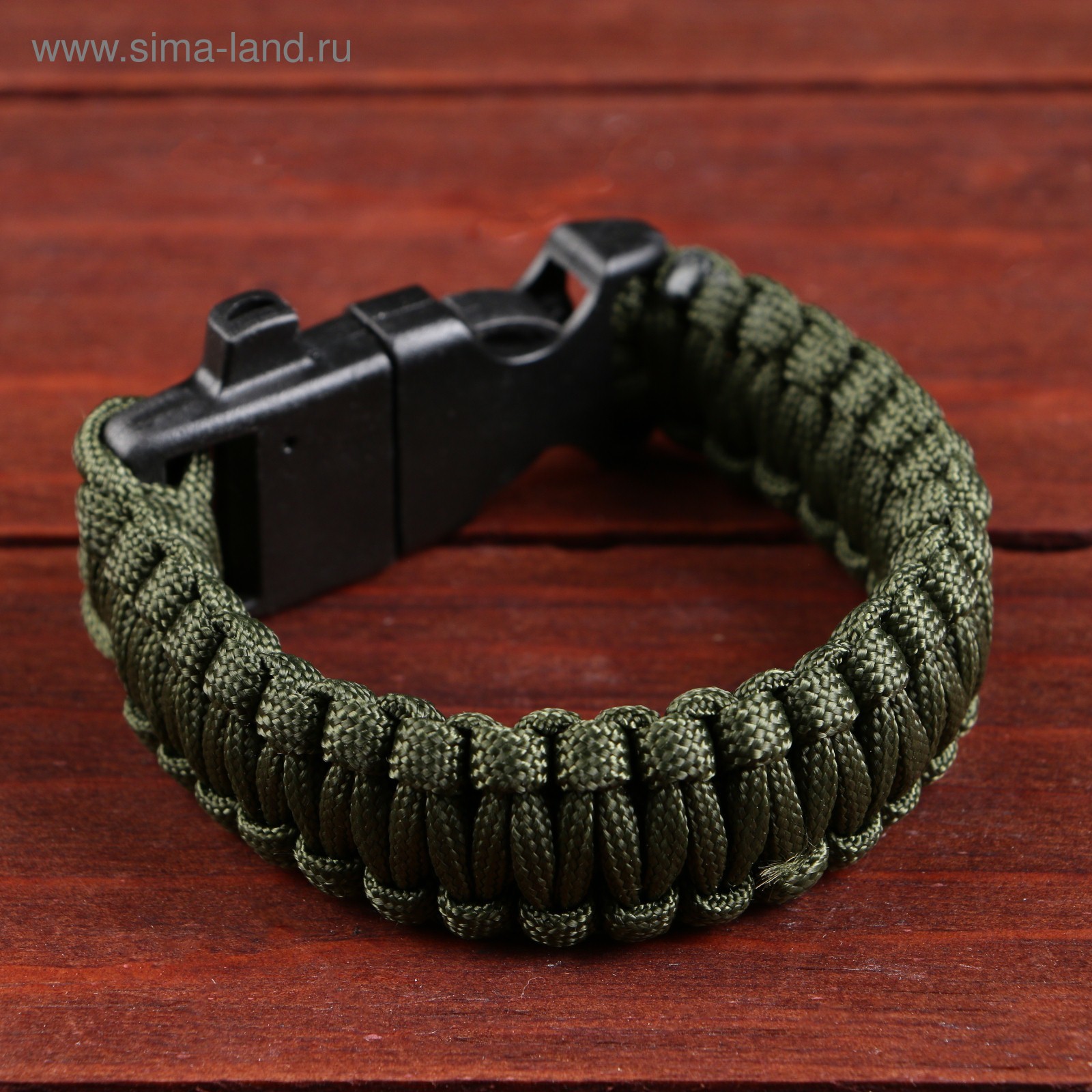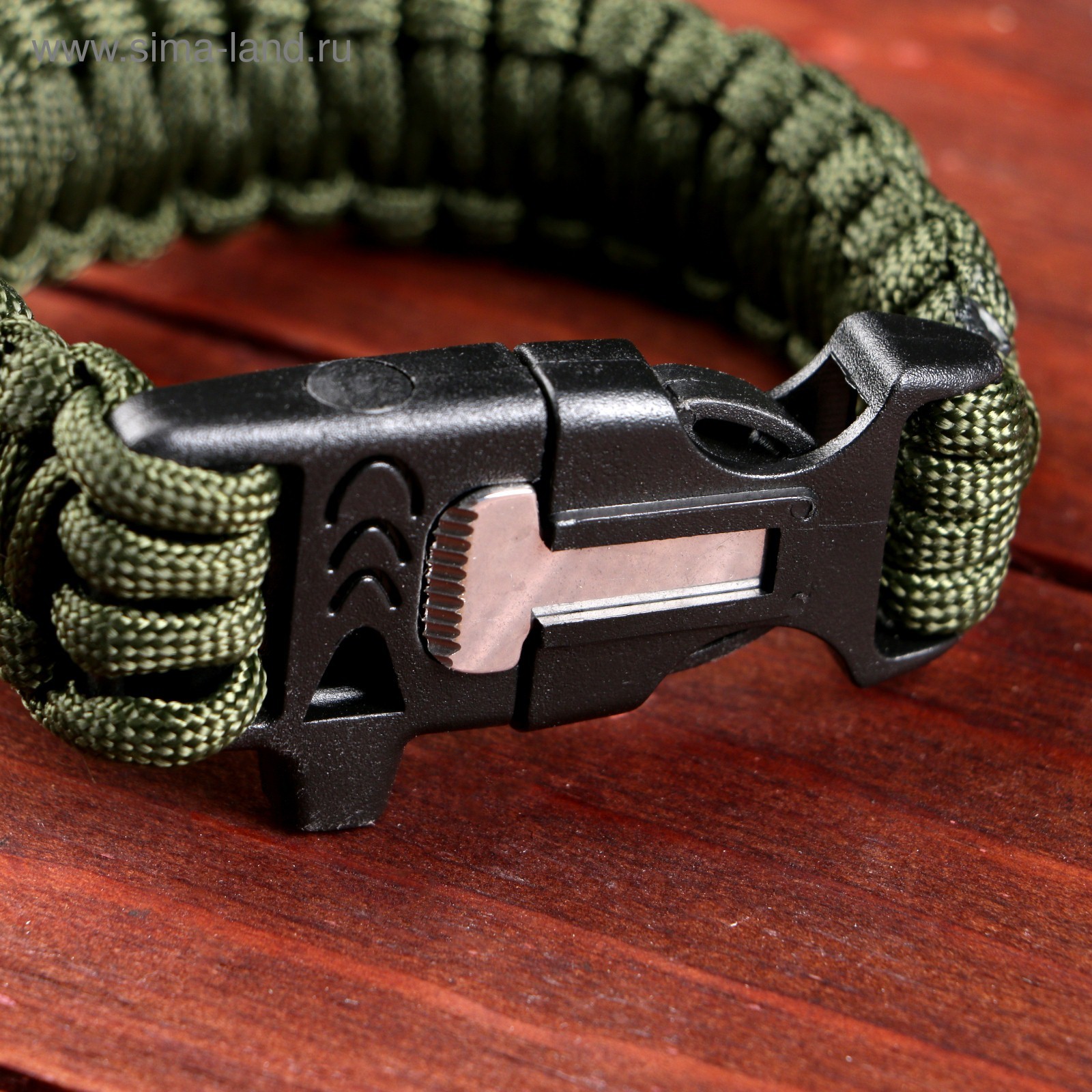 Браслет для выживания 3в1 (паракорд 2 м, свисток, огниво), тёмно-зелёный, 25.5 X 2.5 см, 3 м