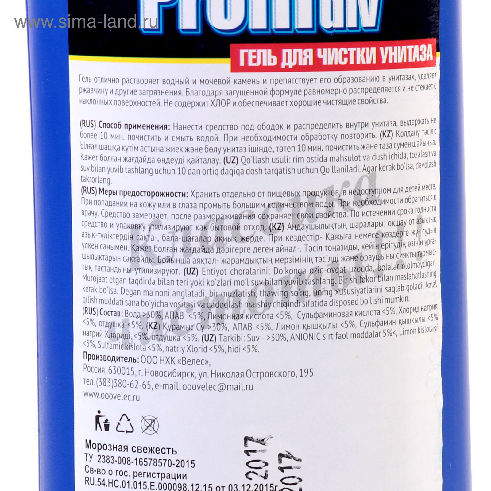 Гель для чистки унитаза Proffidiv, "морозная свежесть", 750 мл