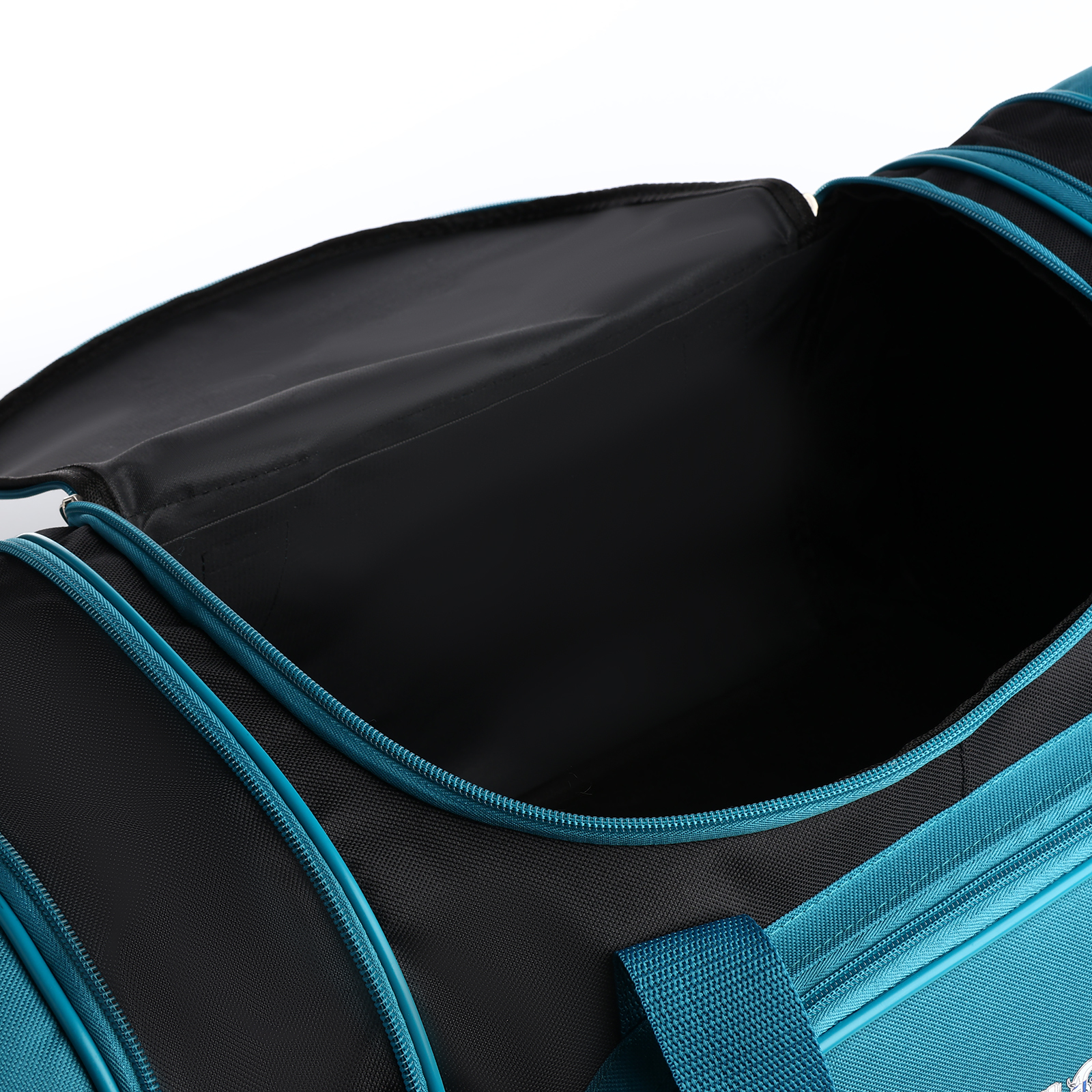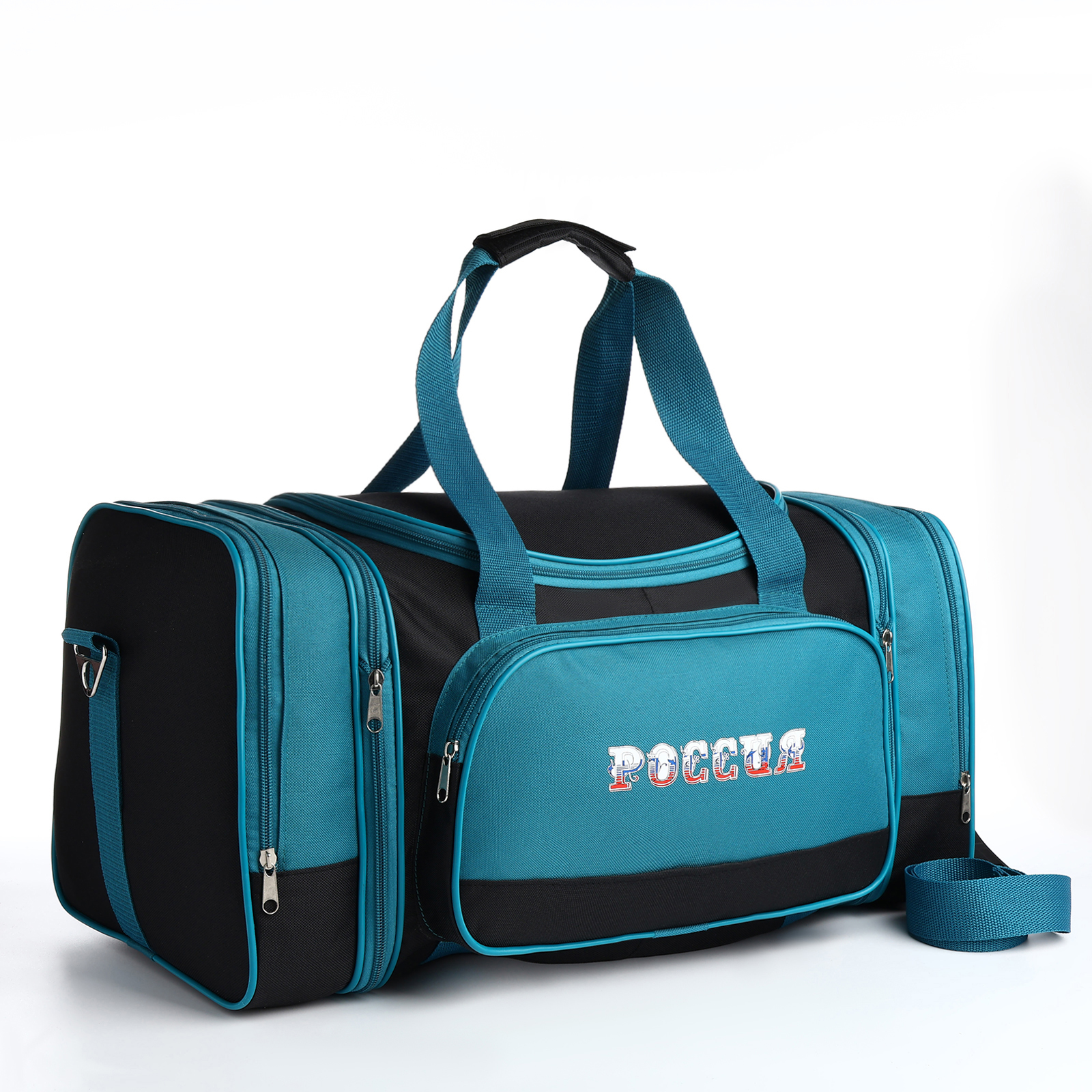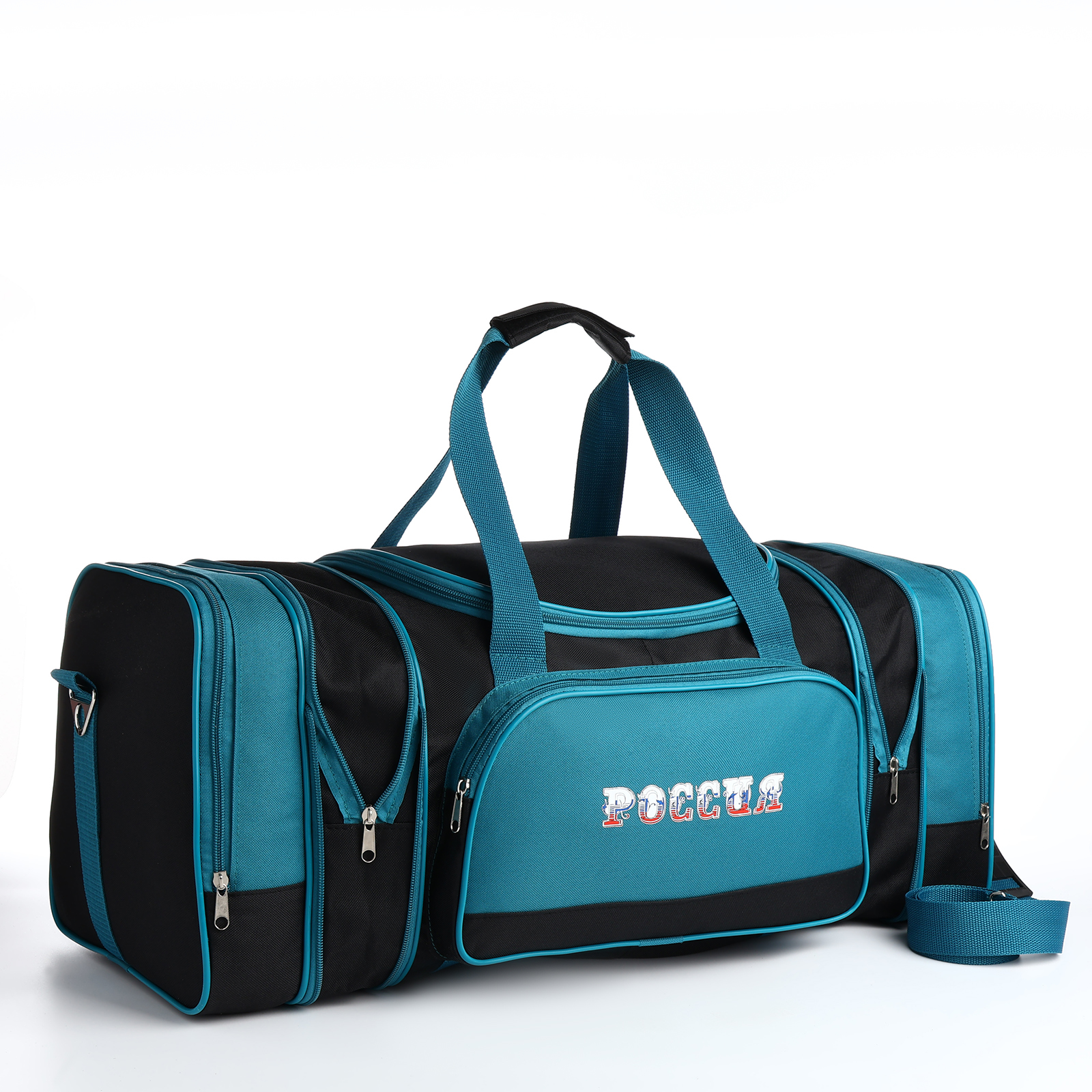 Сумка дорожная на молнии, с увеличением, 2 наружных кармана, длинный ремень, цвет чёрный/морской волны
