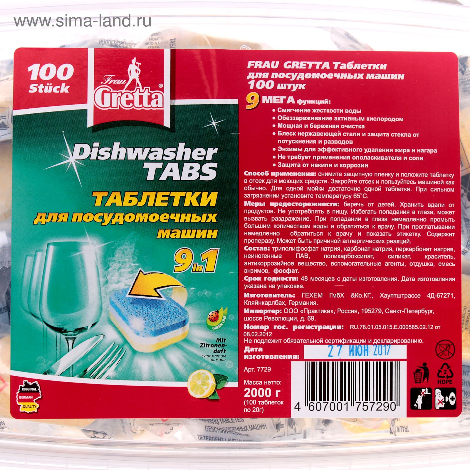 Таблетки для посудомоечных машин Frau Gretta "9 в 1", 100 шт