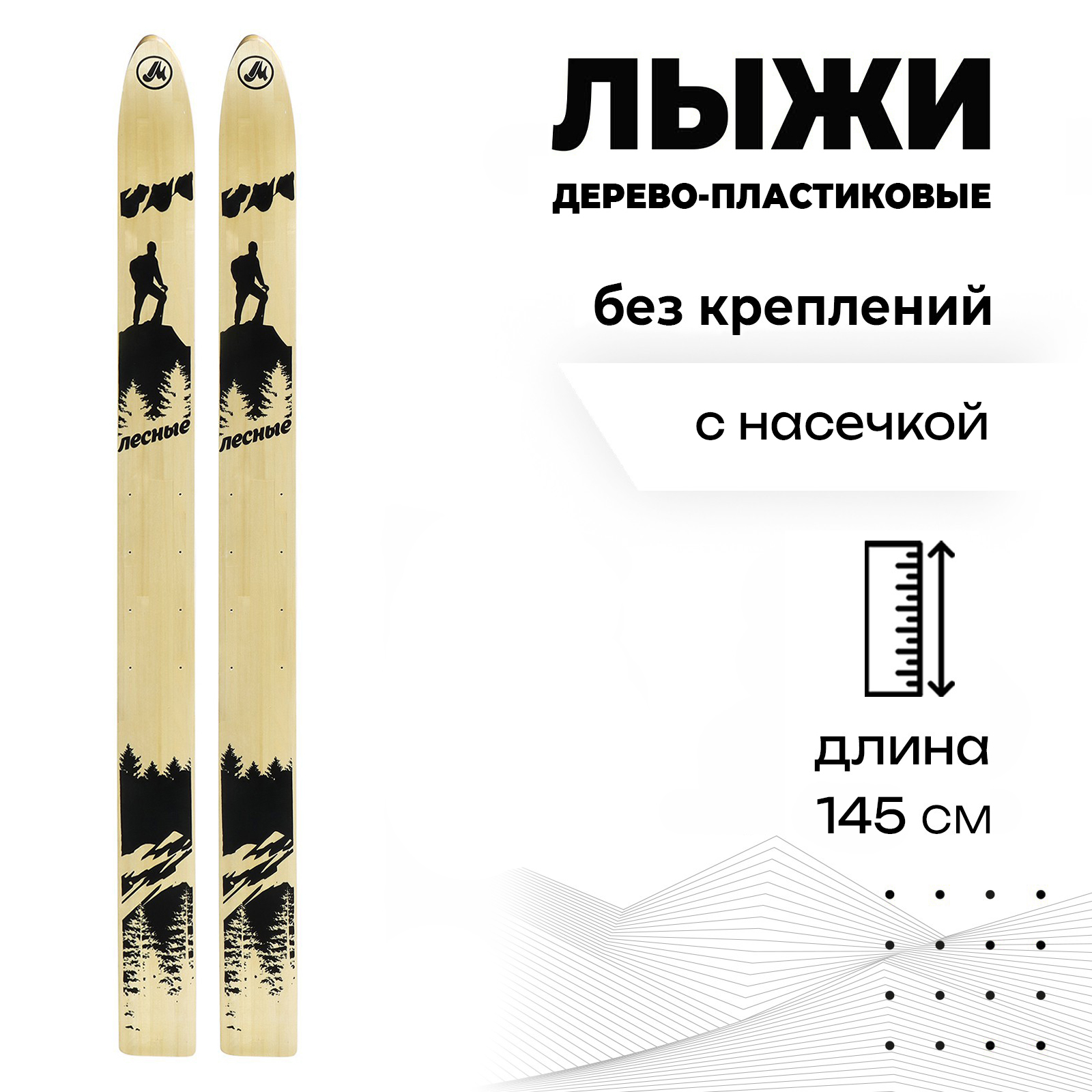 Лыжи дерево-пластиковые «лесные», 145 см, с насечкой. Промысловые лыжи пригодятся охотнику или рыбаку, любителю зимних прогулок по лесу или специалисту, когда нужно передвигаться по снегу с грузом на спине. Благодаря широким полозьям даже крупный человек со снаряжением сможет преодолевать сугробы не проваливаясь, а насечки не позволят откатываться назад при подъёме в горку. Чтобы лыжи служили долго, после использования очищайте и вытирайте их. Храните вдали от отопительных приборов на сухой поверхности. Комфорт и удобство использования, его обеспечивает антискользящая насечка, которая также улучшает сцепление со снегом. Цвет: МИКС Длина, см: 145 Материал: Пластик Материал: Дерево Насечка: Да Стиль катания: Для классического хода Крепления входят в комплект: Нет  развернуть описание ▼