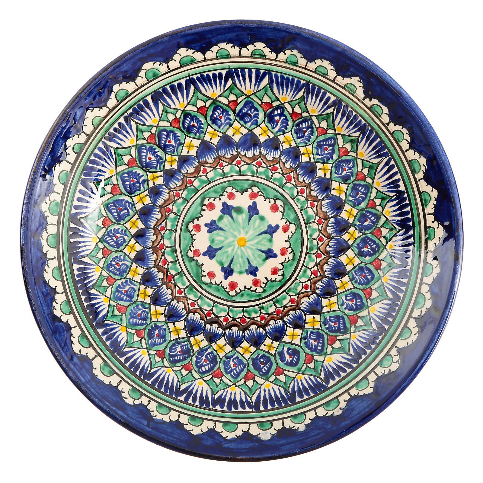 Тарелка риштанская керамика "цветы", 22 см, синяя