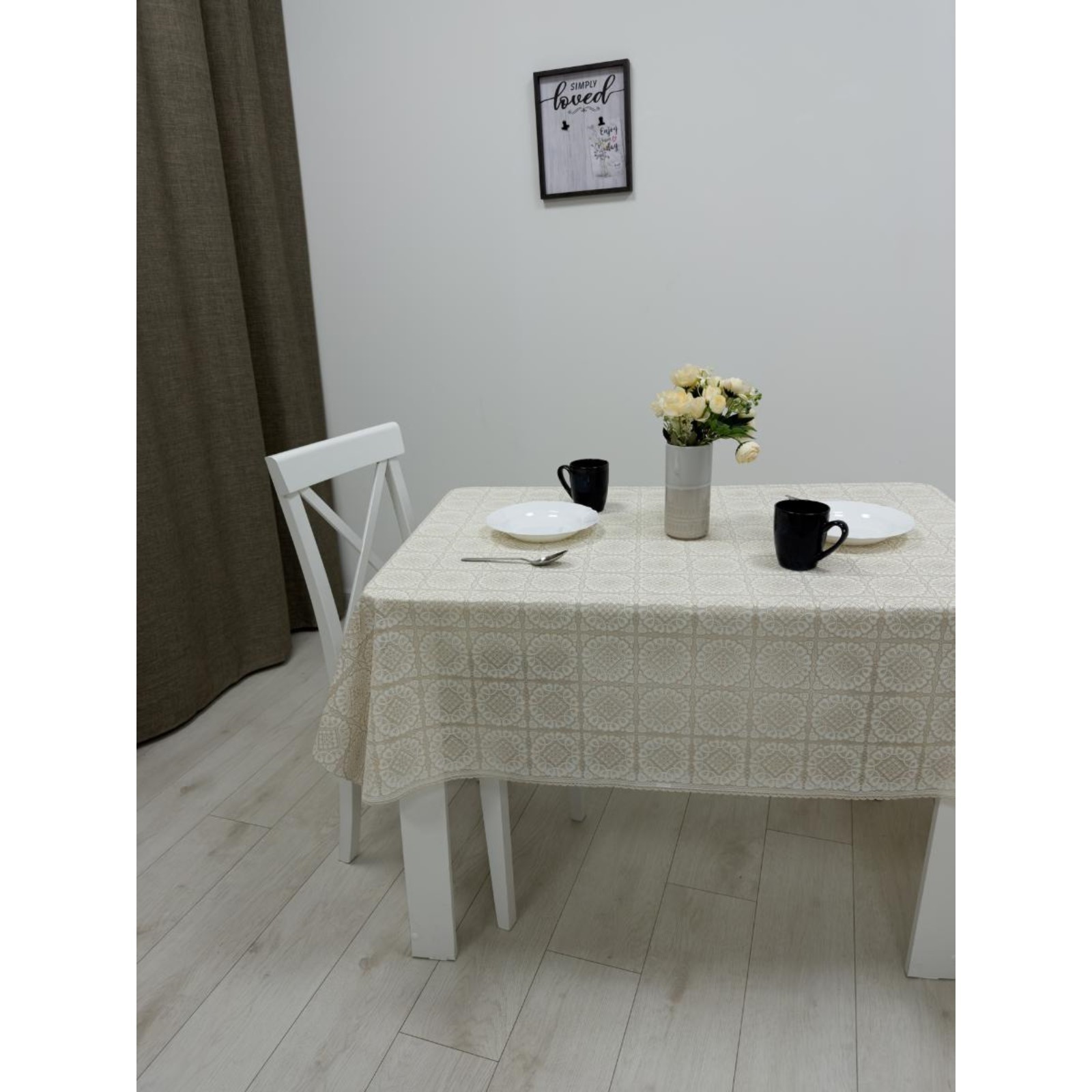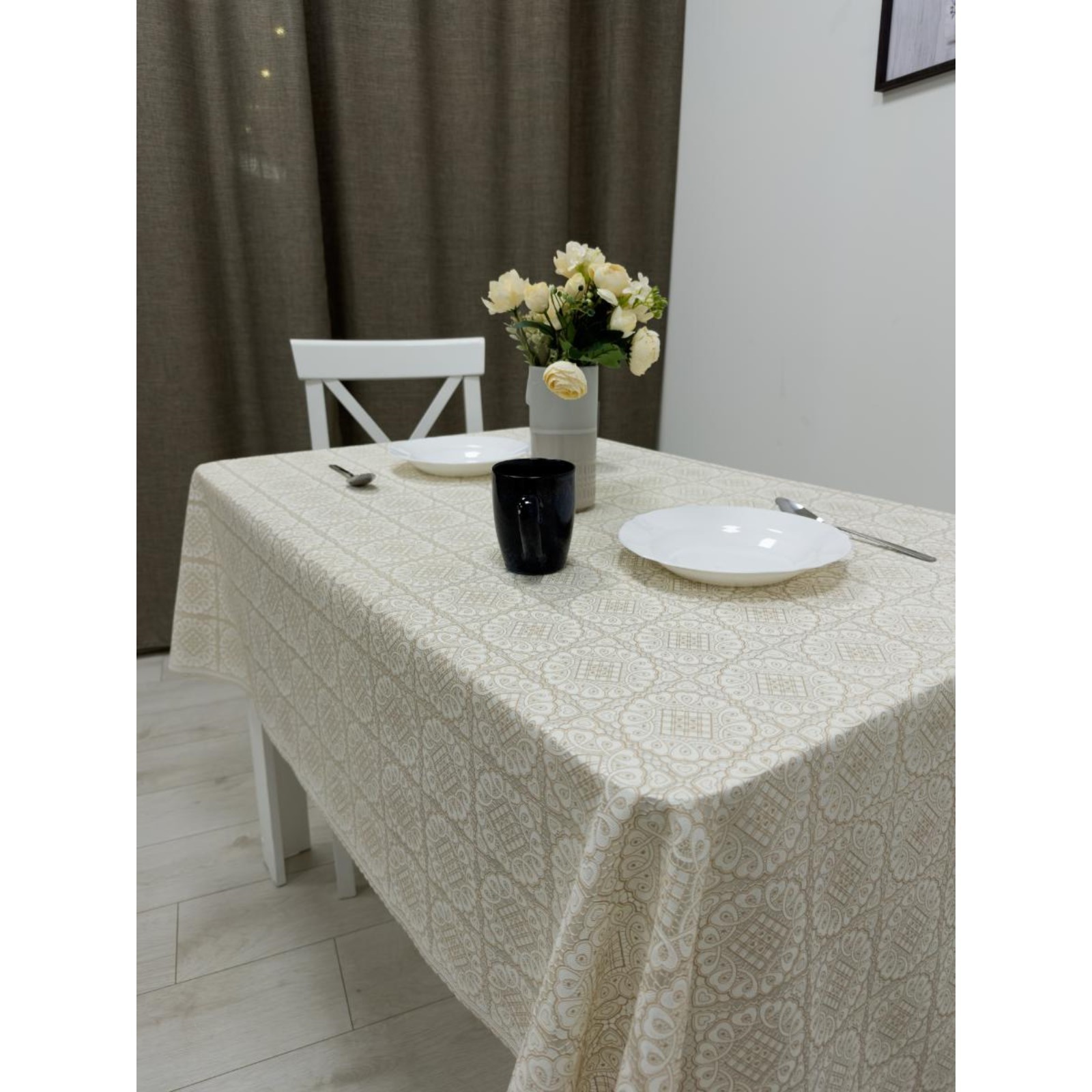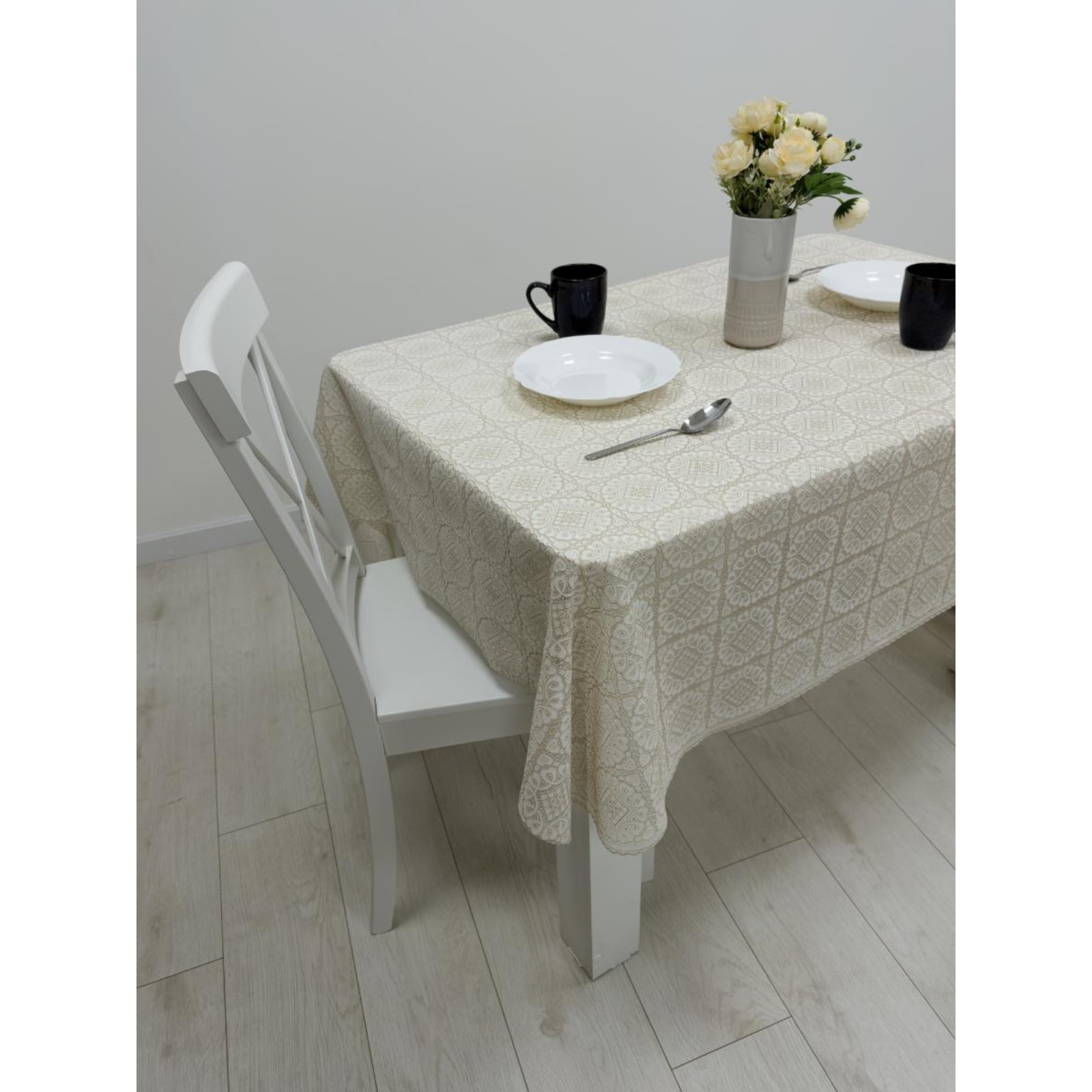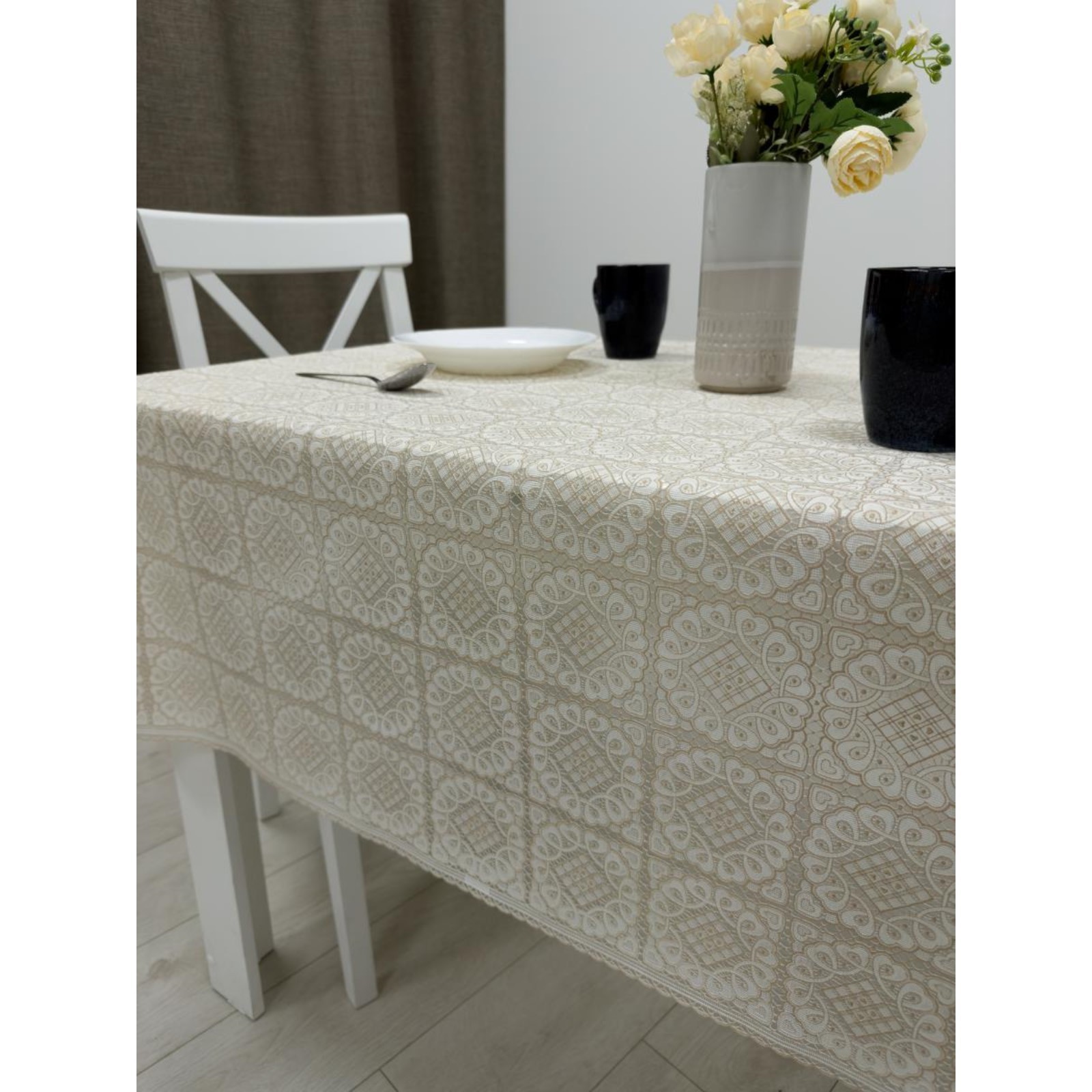 Клеёнка столовая «ажурная», 138 см, рулон 15 пог. м., цвет бежевый