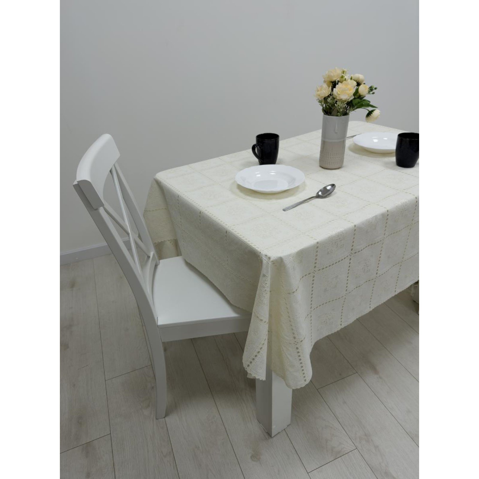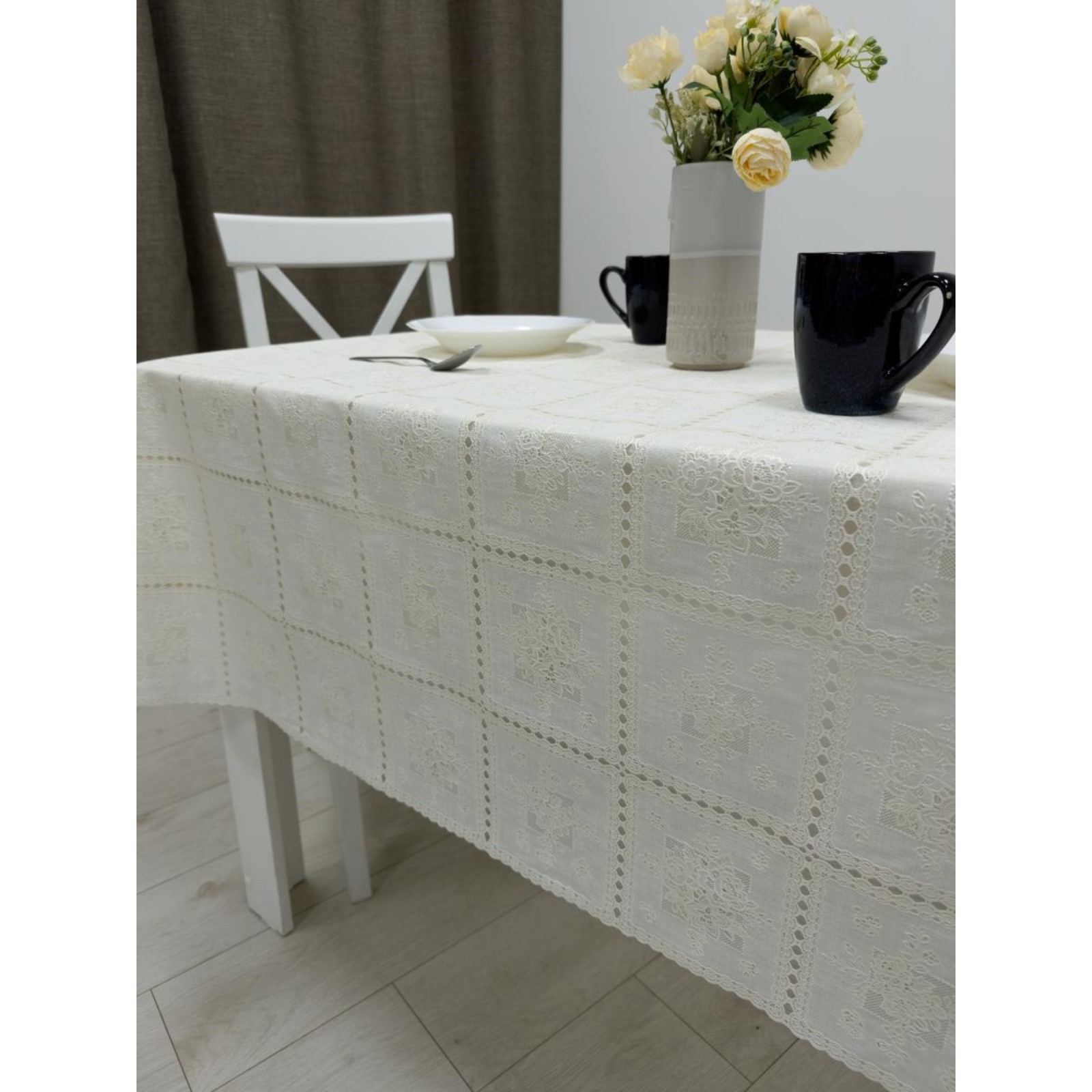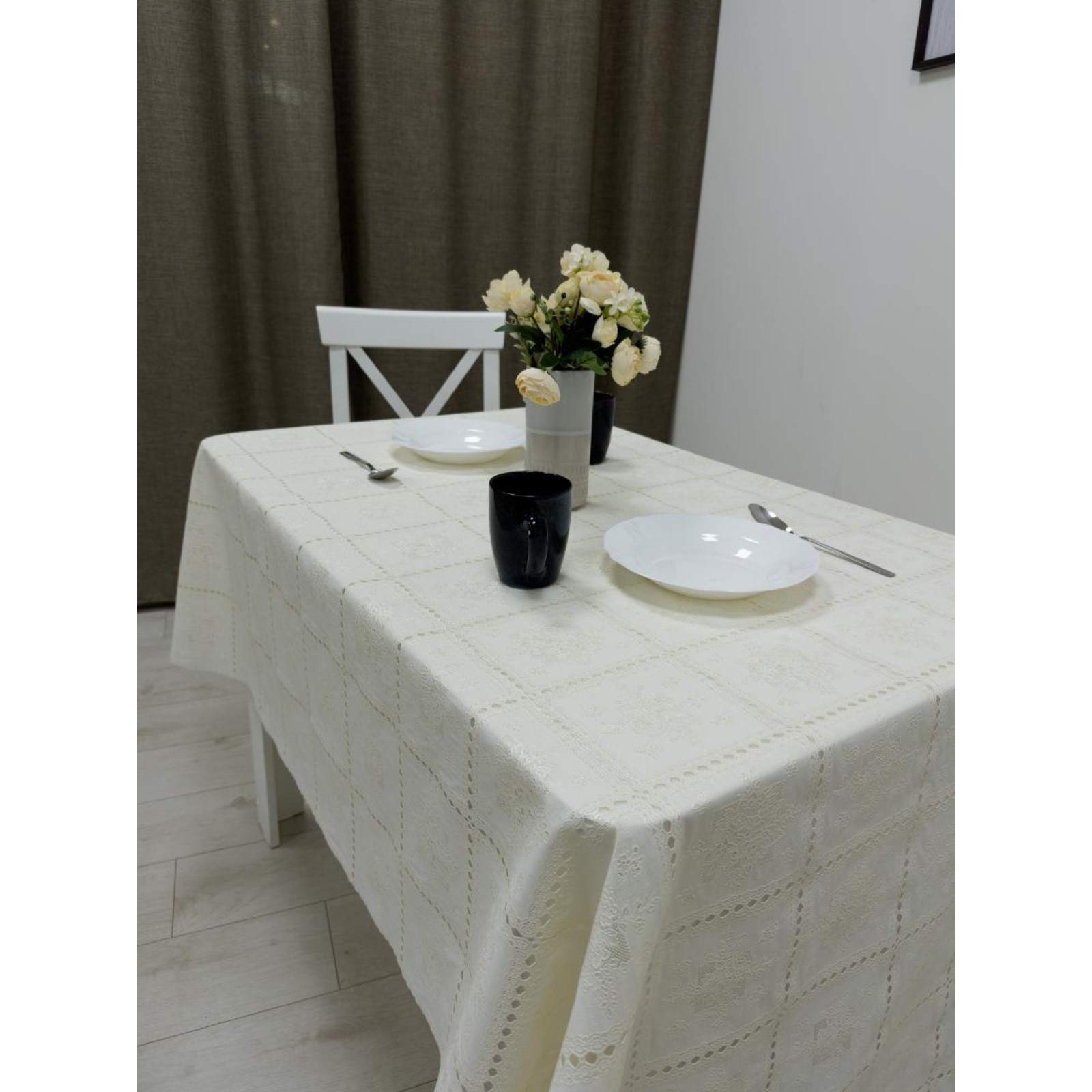 Клеёнка столовая «ажурная», 138 см, рулон 15 пог. м., цвет сепия/белый