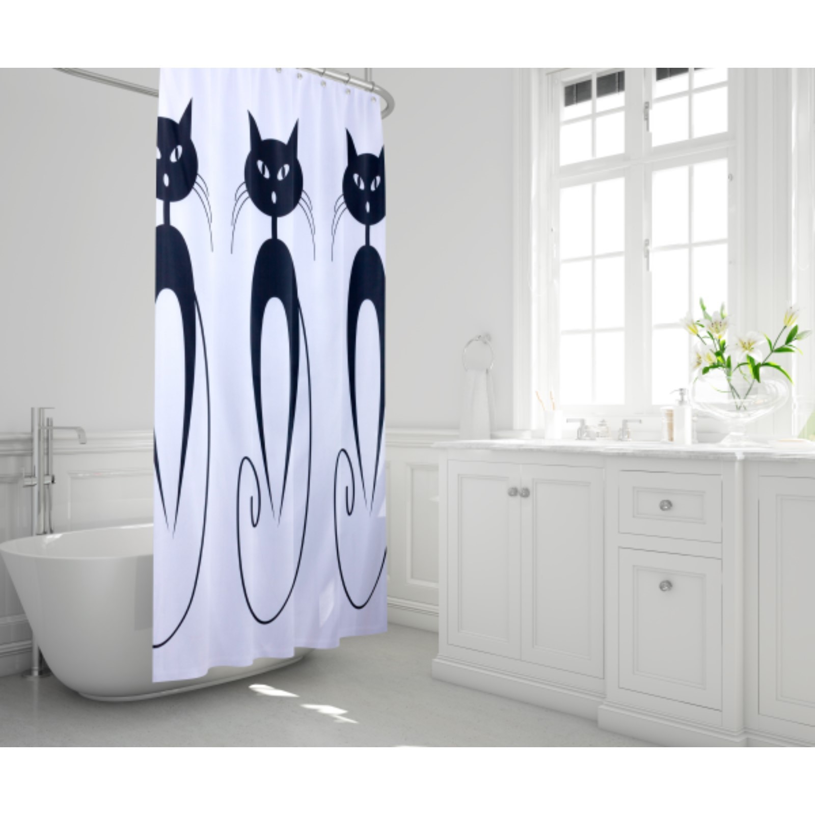 Штора для ванной cats, 180 х 200 см. Цвет: Белый Цвет: Чёрный Размер, см: 180 х 200 Ширина, см: 180 Высота, см: 200 Тематика: Животный мир Материал: Полиэстер Тип крепления: Прорези Тип: Штора Кольца в комплекте: Да  развернуть описание ▼