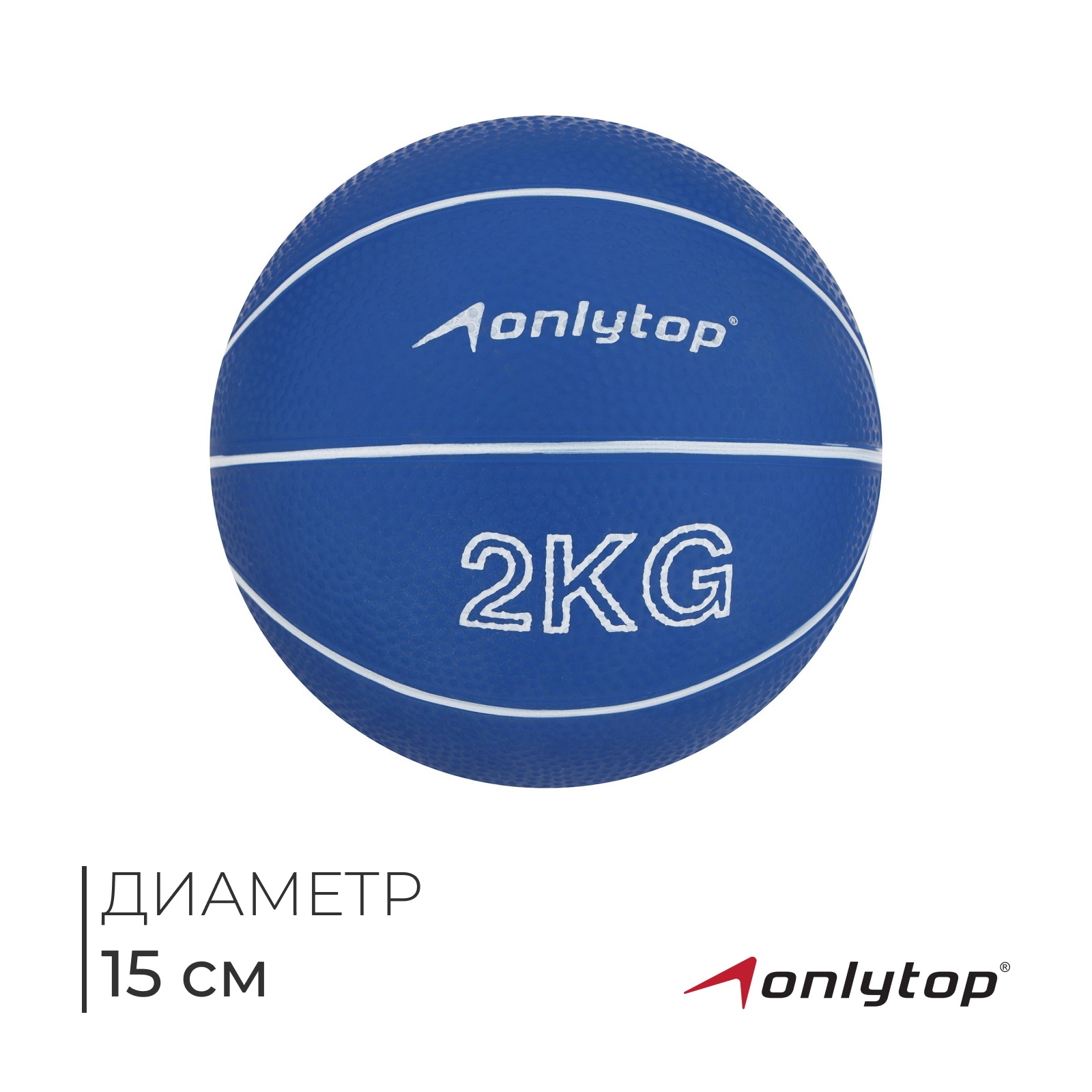 Медицинбол onlytop, 2 кг, цвет синий. Медбол подходит для занятий дома, в зале и на улице. Применяется в тренировках на развитие силы для улучшения работы мышц рук, груди, плеч и пресса, а также для реабилитационных занятий. Благодаря резиновому покрытию мячу не страшна влага. Цвет: Синий Вес, кг: 2 Материал: Резина Наполнитель: Песок  развернуть описание ▼