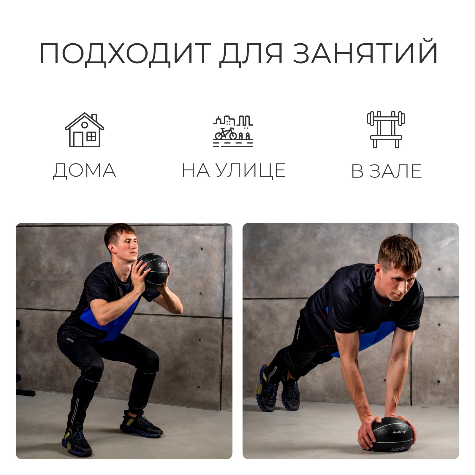 Медицинбол onlytop, 5 кг, цвет чёрный. Медбол подходит для занятий дома, в зале и на улице. Применяется в тренировках на развитие силы для улучшения работы мышц рук, груди, плеч и пресса, а также для реабилитационных занятий. Благодаря резиновому покрытию мячу не страшна влага. Цвет: Чёрный Вес, кг: 5 Материал: Резина Наполнитель: Песок  развернуть описание ▼