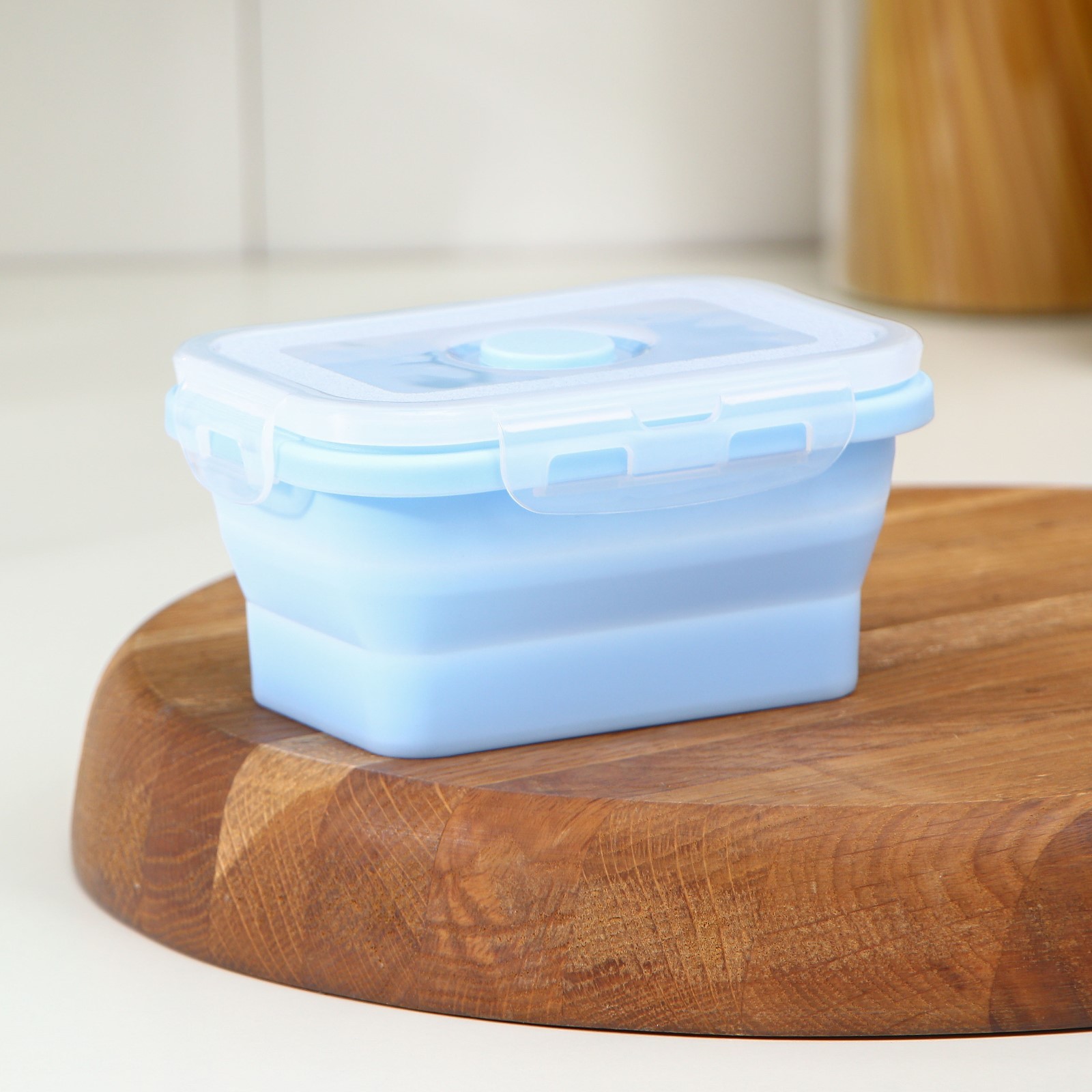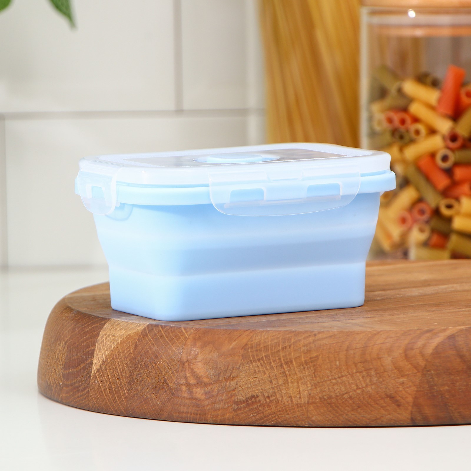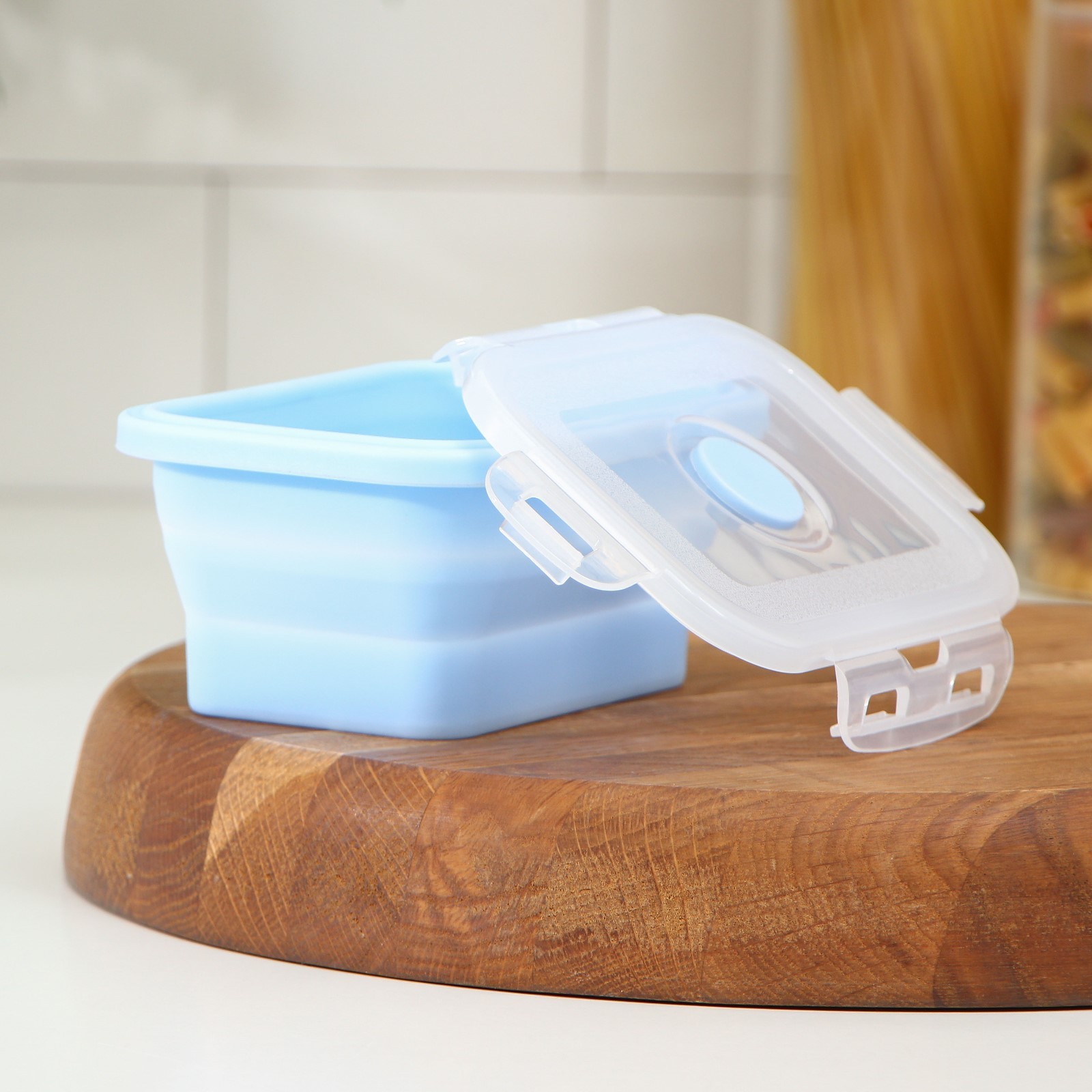 Контейнер складной с крышкой доляна «коста», 400 мл, 13х9,5х6 см, голубой