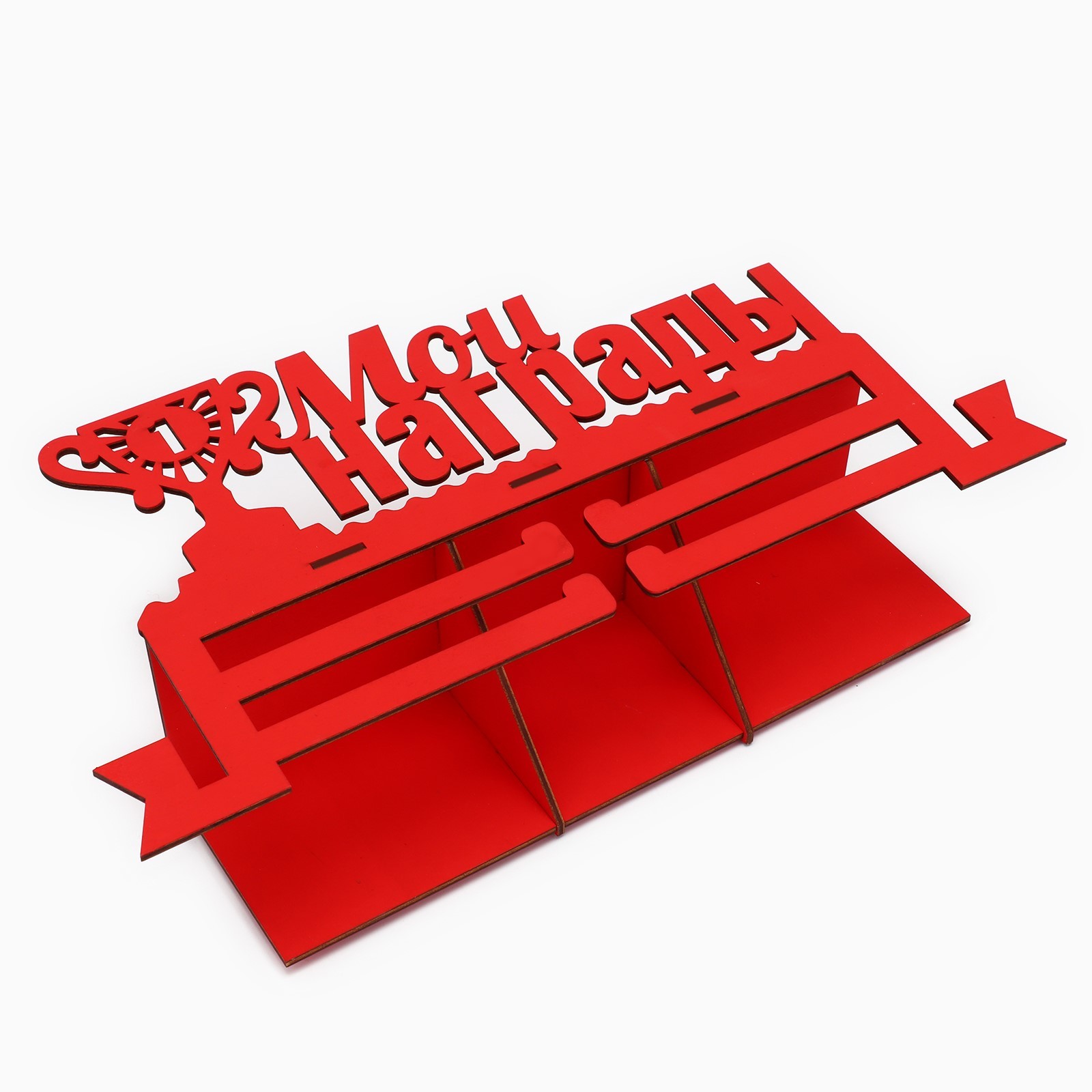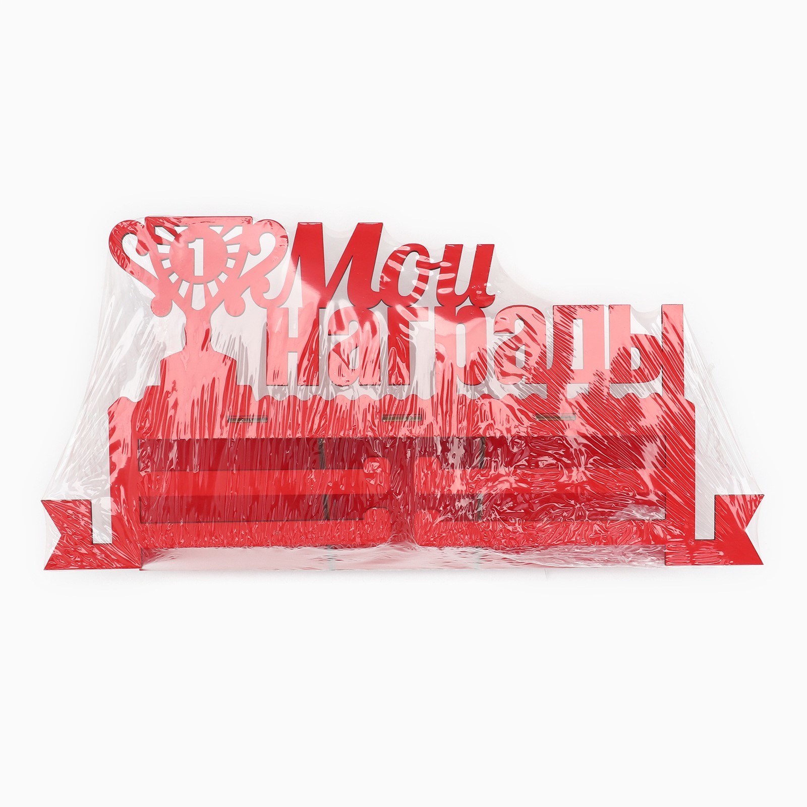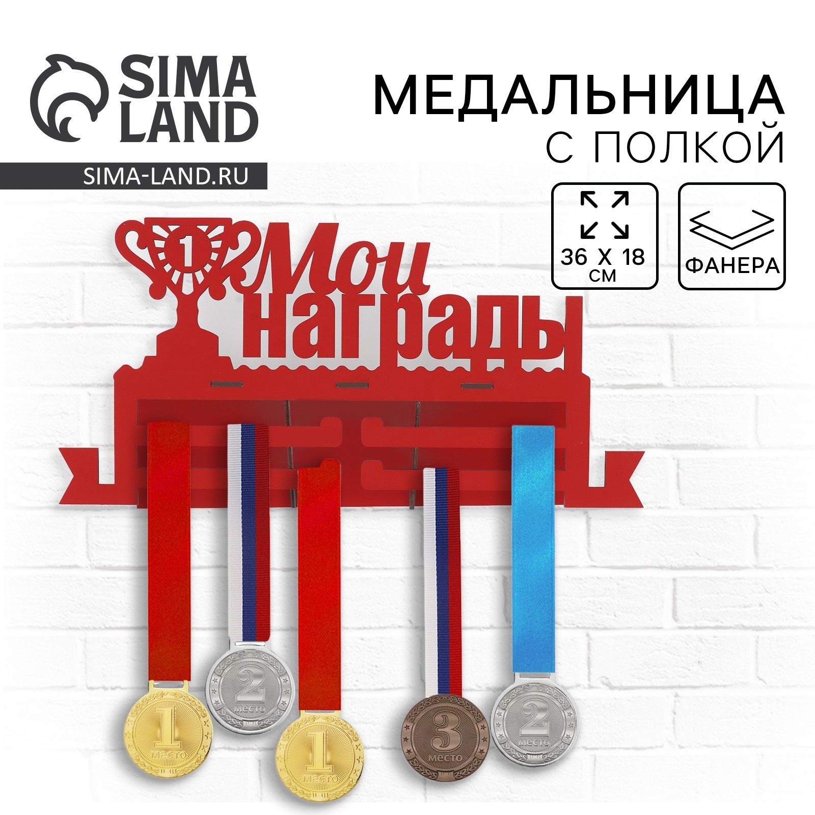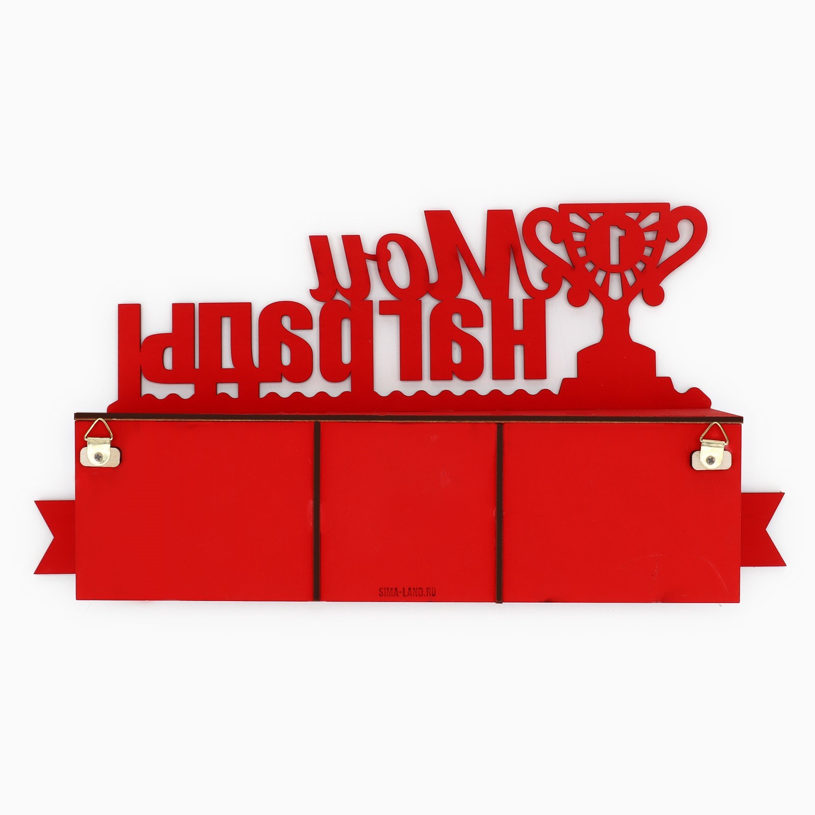 Медальница с полкой «мои награды», 36 х 18 см. Для того чтобы ваши награды не пылились на полке, повесьте их на фигурную медальницу. Она изготовлена из дерева, имеет тематический дизайн. Этот аксессуар будет достойно смотреться вкупе с наградами. Также медальница станет отличным подарком для спортсменов. Цвет: Красный Длина, см: 36 Вид дерева: ХДФ Материал: ХДФ Вид спорта: Универсальный Особенность медальницы: С полкой Особенность медальницы: Большие Особенность медальницы: Одноцветные Поставляется в разобранном виде: Да  развернуть описание ▼