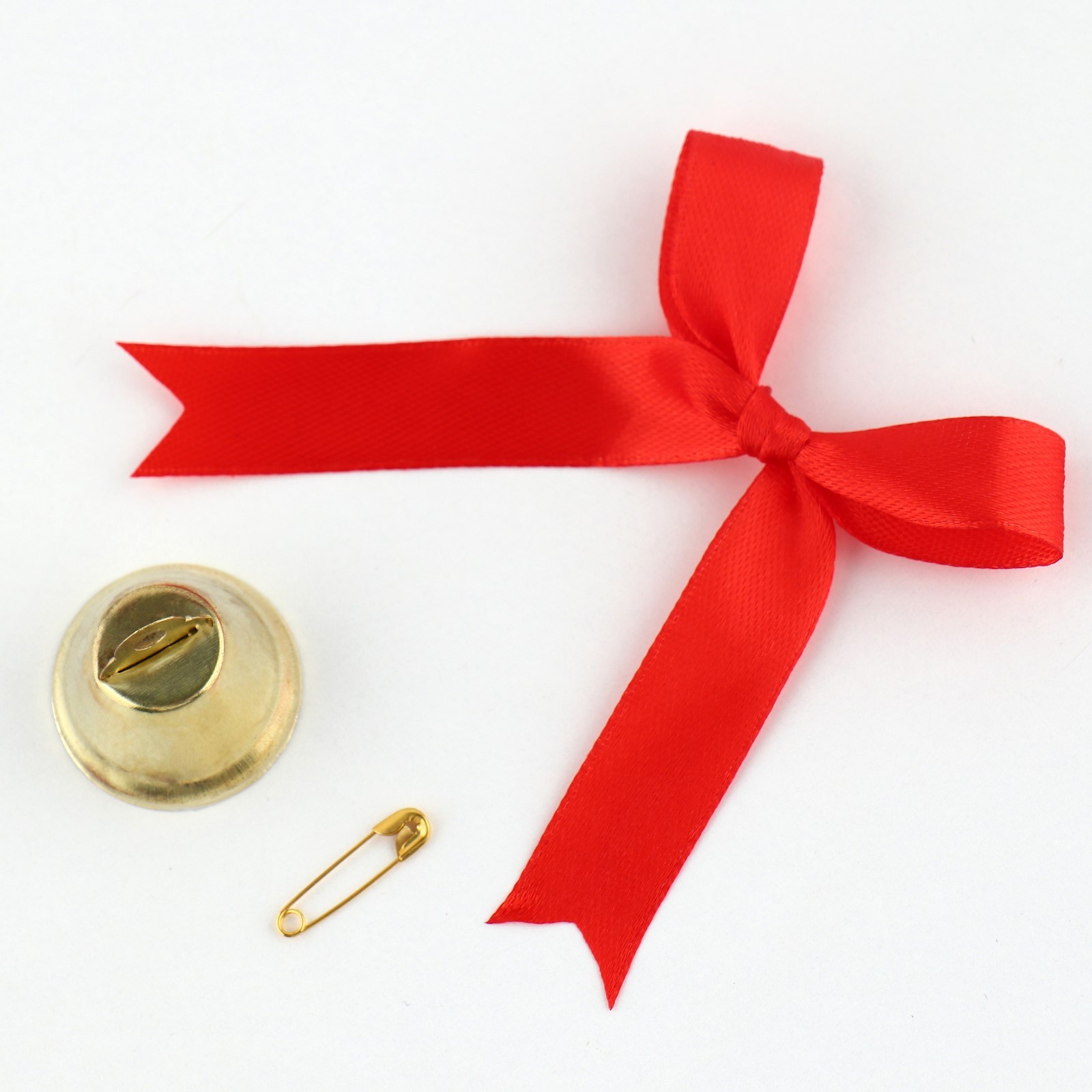 Колокольчик на булавке с бантом на выпускной, красный, D = 2,6 см