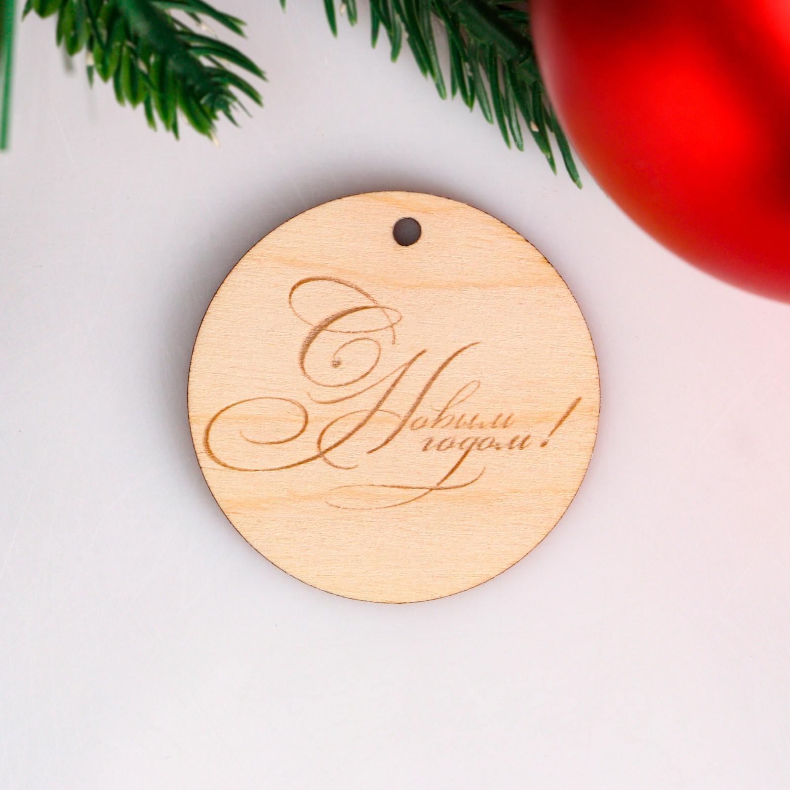 Подвеска «с новым годом», ёлочная игрушка, бежевая, d=5 см. Набор:Нет|Цвет:Бежевый|Форма:Круглая|Формат:Круг|Отделка:Выжигание|Символ года:Нет|Тематика праздника:Новый год|Материал:Дерево|Размер:Мини (до 8 см)|Форма:Круг|Страна:Россия  развернуть описание ▼