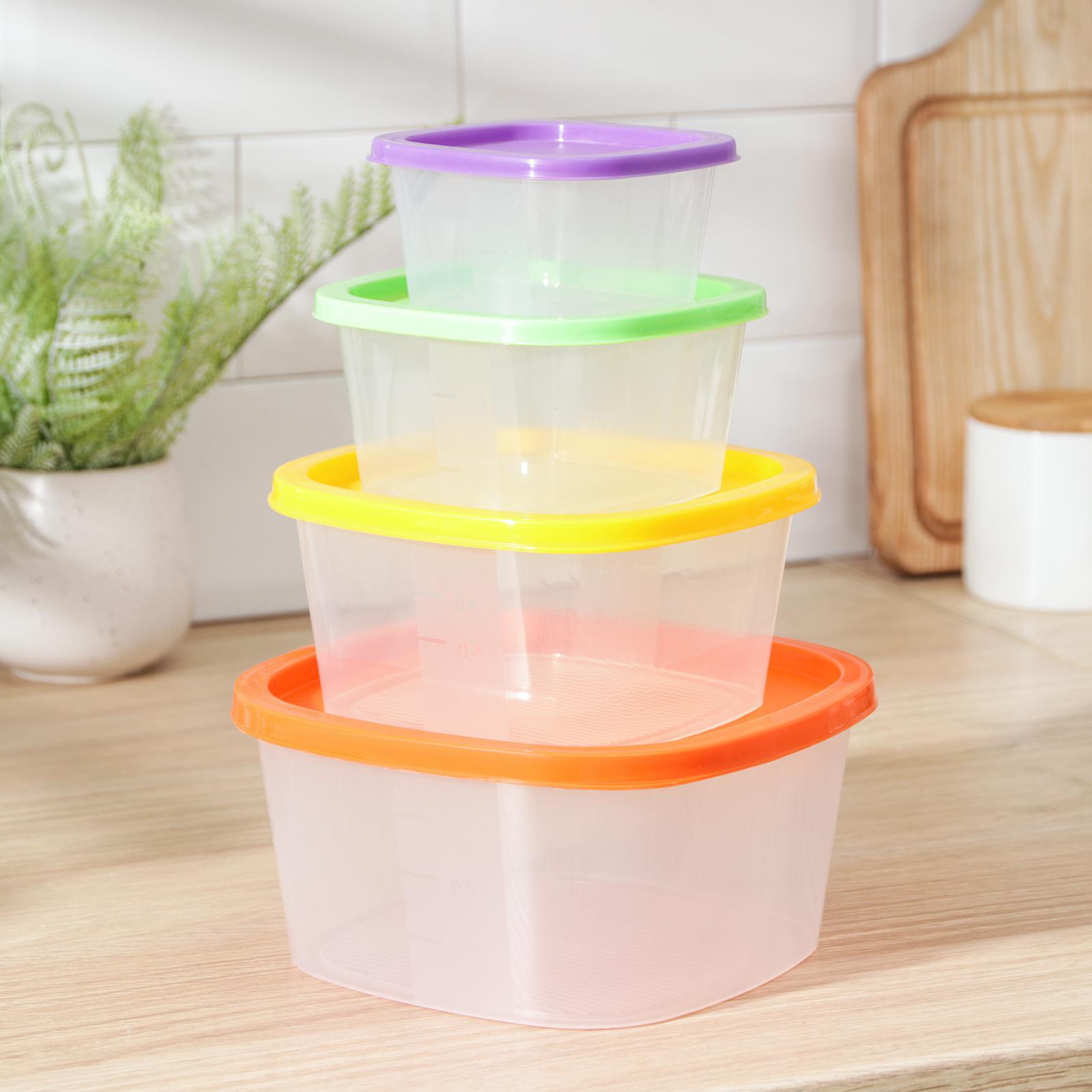 Набор пищевых контейнеров «biofresh», 4 шт: 0,23 л, 0,5 л, 0,9 л, 1,55 л, цвет микс