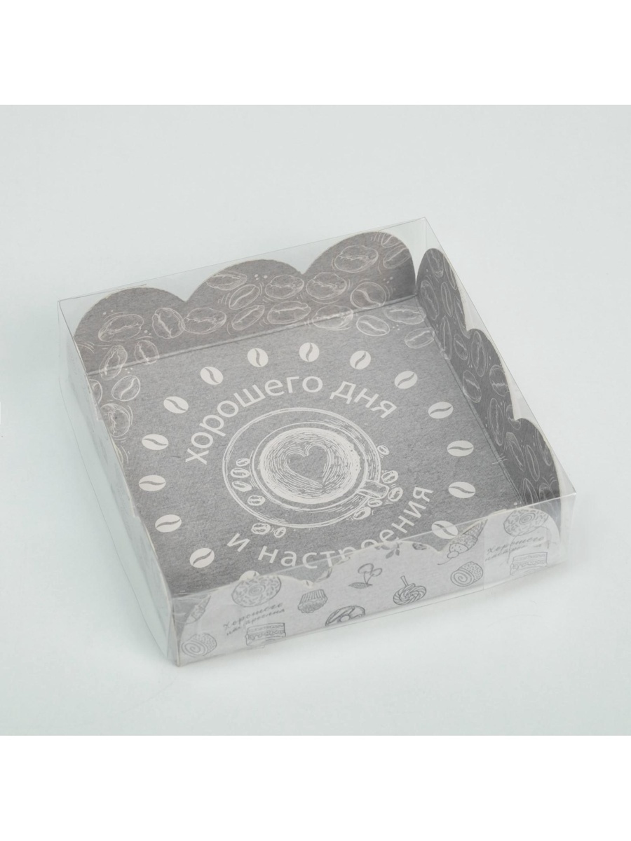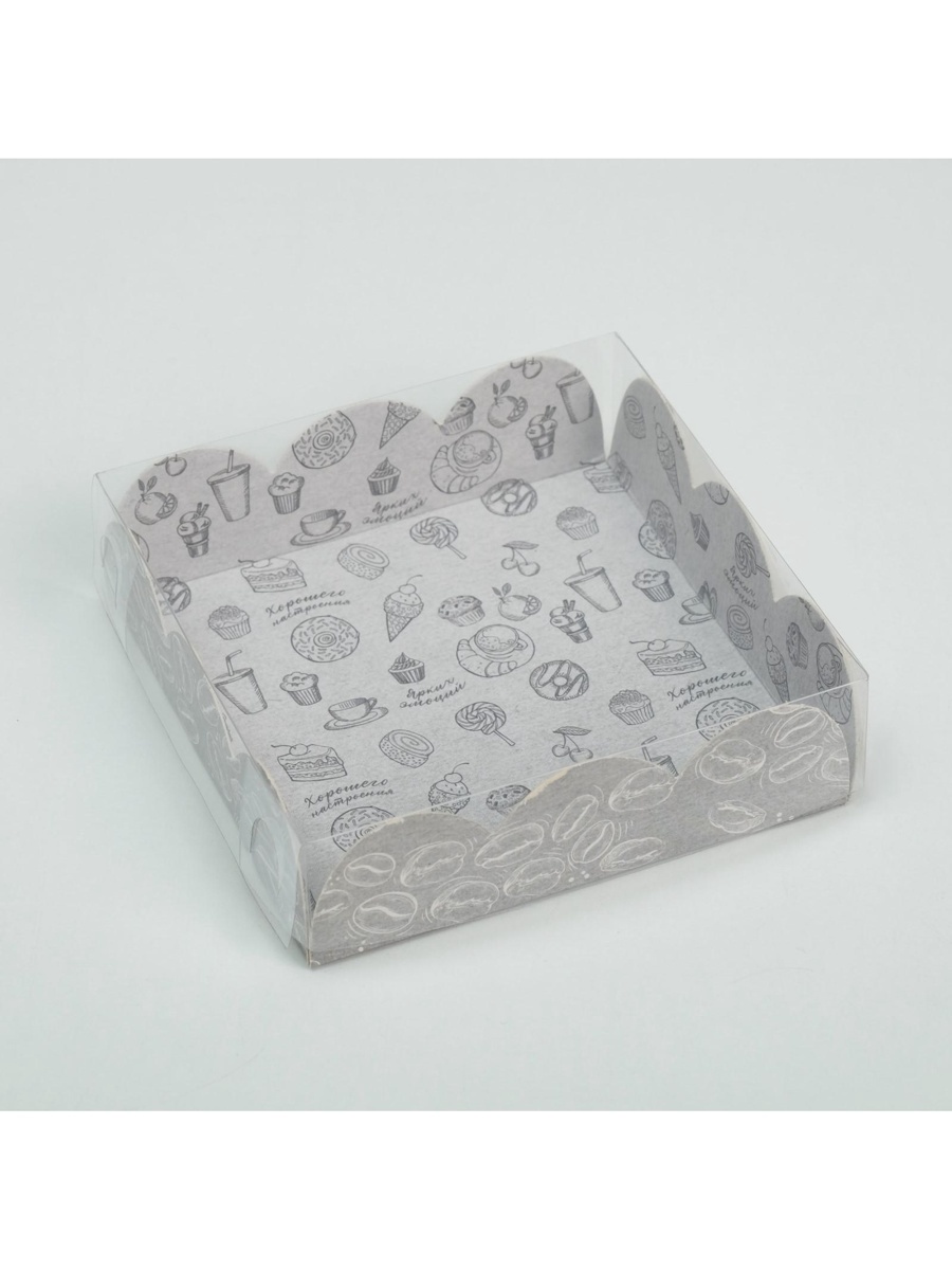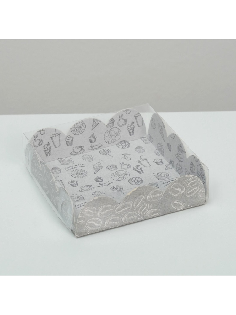Коробка для печенья, кондитерская упаковка с Pvc крышкой, «вкусности», 10.5 х 10.5 х 3 см