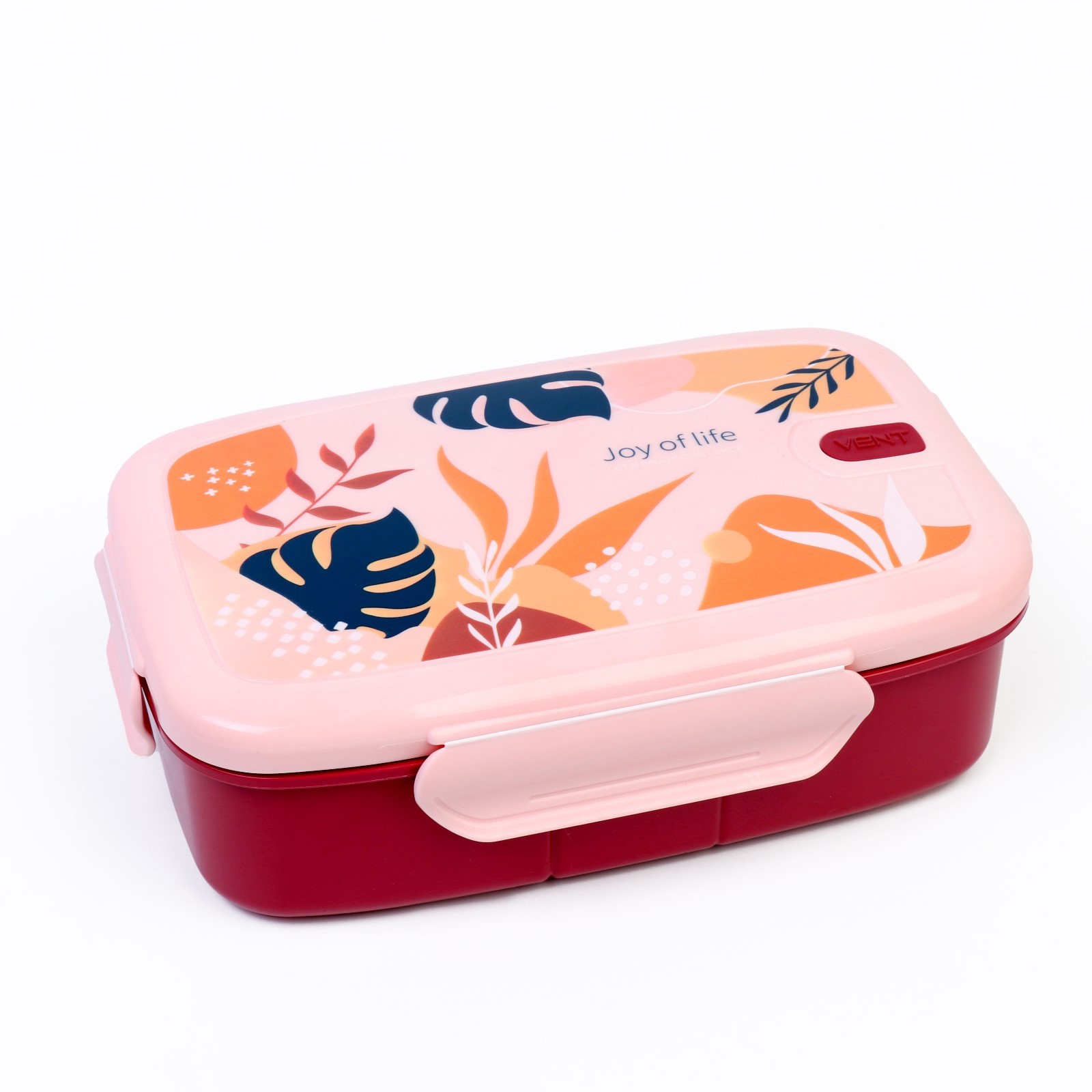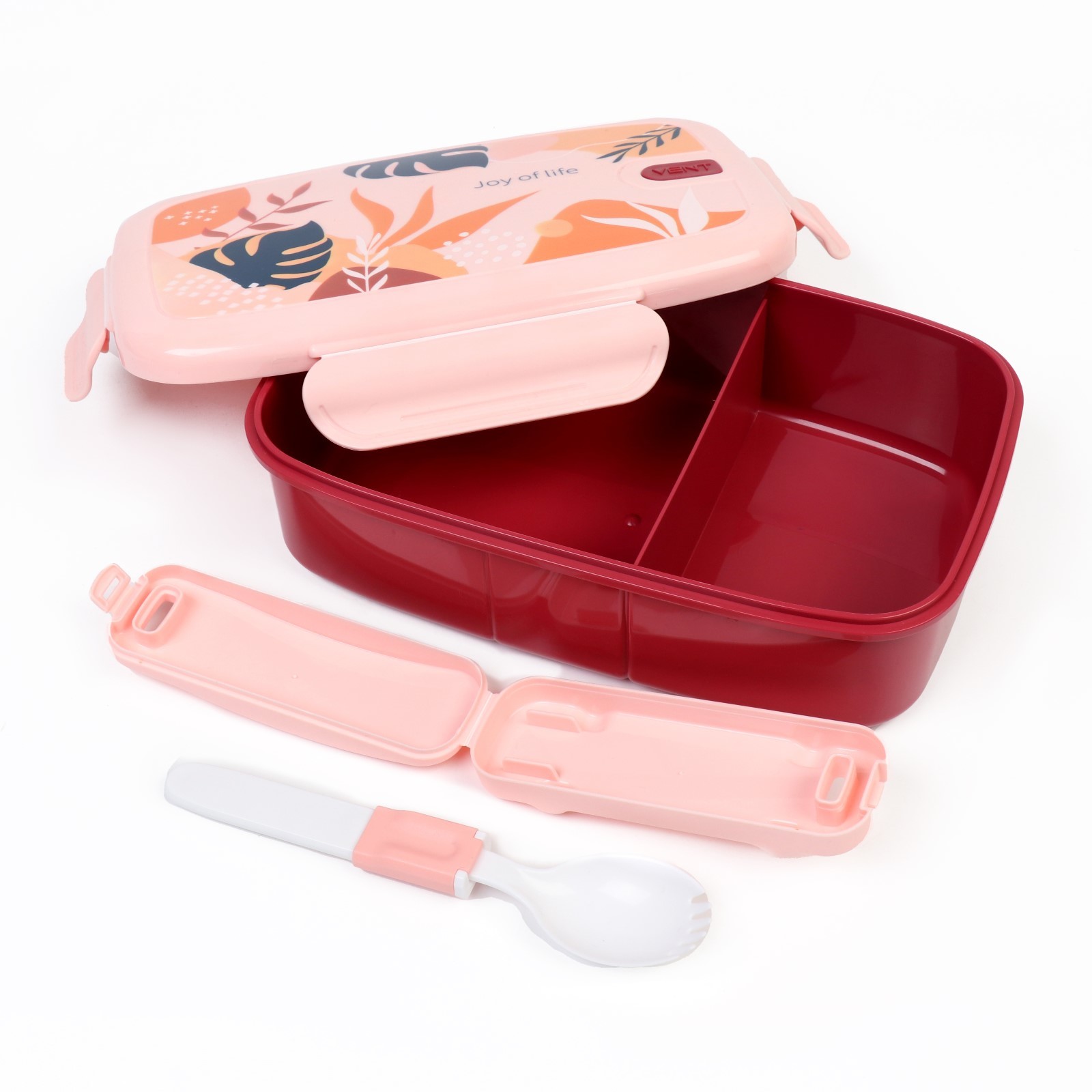 Ланч-бокс "Vent. Joy Of Life", 1 л, с ложкой, 22.7 х 14 х 7.2 см, бордовый