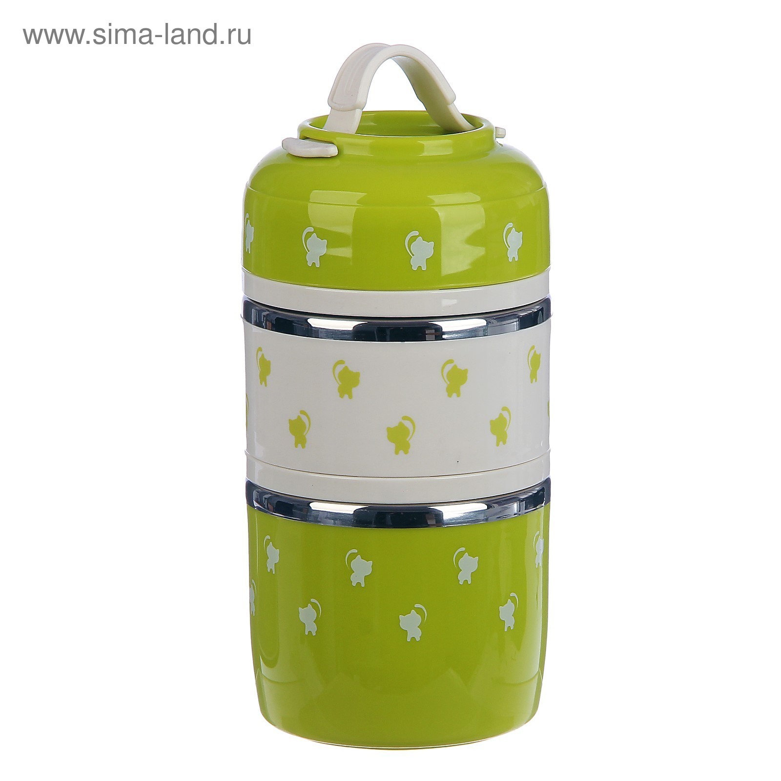 Ланч-бокс "котята", 1.23 л, сохраняет тепло 4 ч, 11.5 х 23 см, микс. Ланч-бокс с экологичным дизайном станет незаменимой вещью для офисных работников, школьников, студентов и всех тех, кто вынужден питаться вне дома. Ланч-бокс с отделениями очень удобный, современный, позволяет не смешивать еду и хранить продукты друг от друга. Цвет: МИКС Форма: Цилиндрическая В наборе, шт.: 2 Время сохранения тепла/холода, ч: 3 Время сохранения тепла/холода, ч: 4 Диаметр горловины, см: 10 Объём, мл: 1230 Материал: Пластик Материал: Металл Герметичная крышка: Да Наличие столовых приборов: Нет Можно использовать в СВЧ-печи: Нет Форма: Круг, шар, цилиндр  развернуть описание ▼