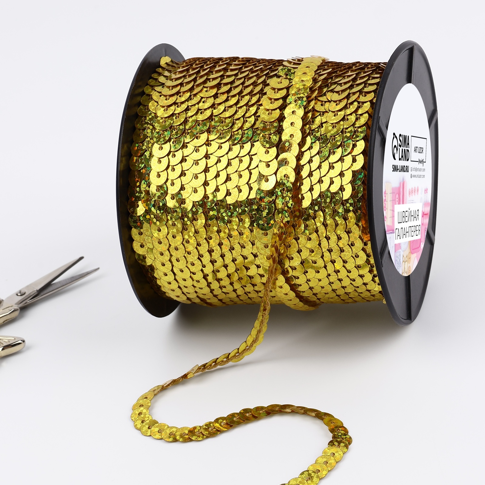Пайетки на нити, голография, 6 мм, 91±1 м, цвет золотой