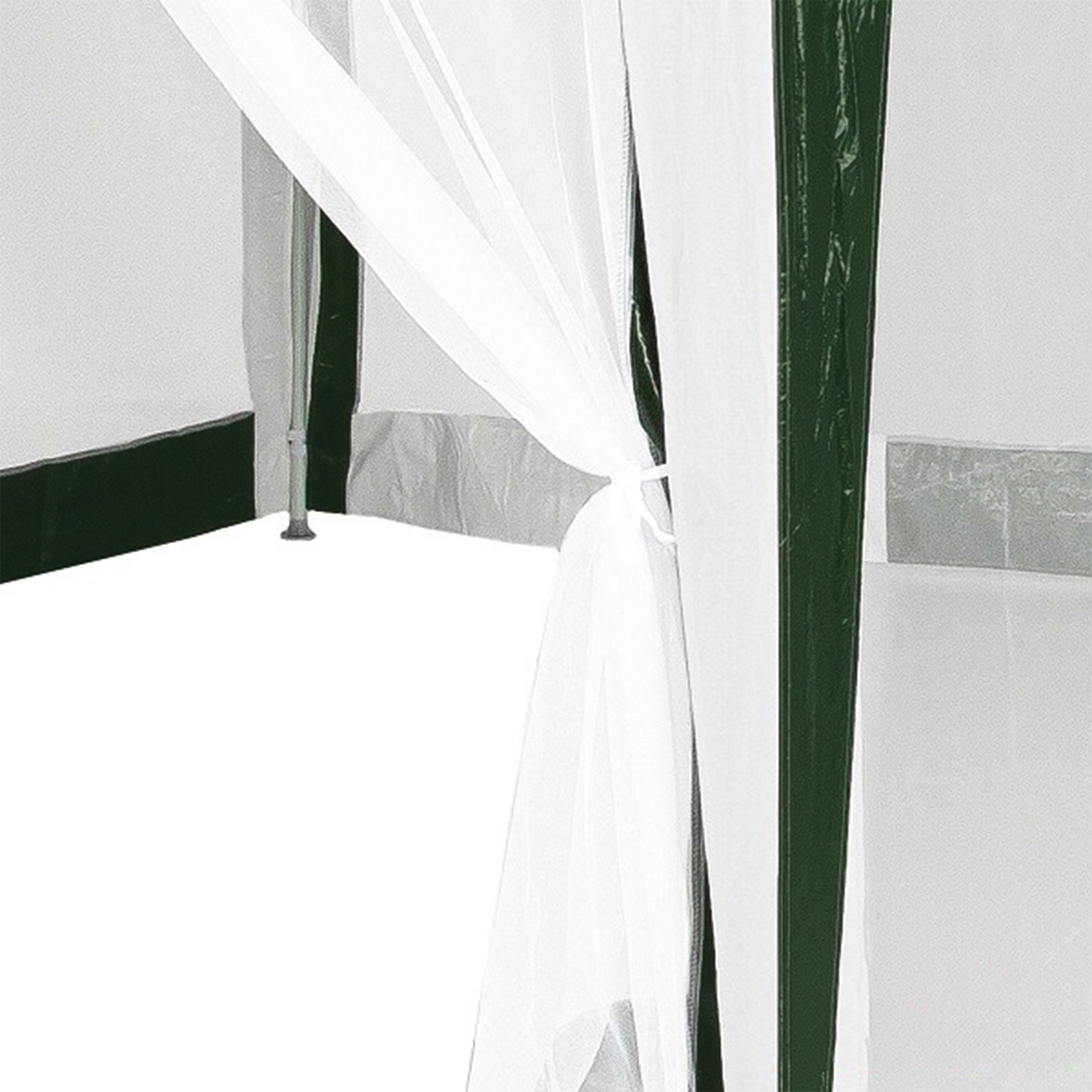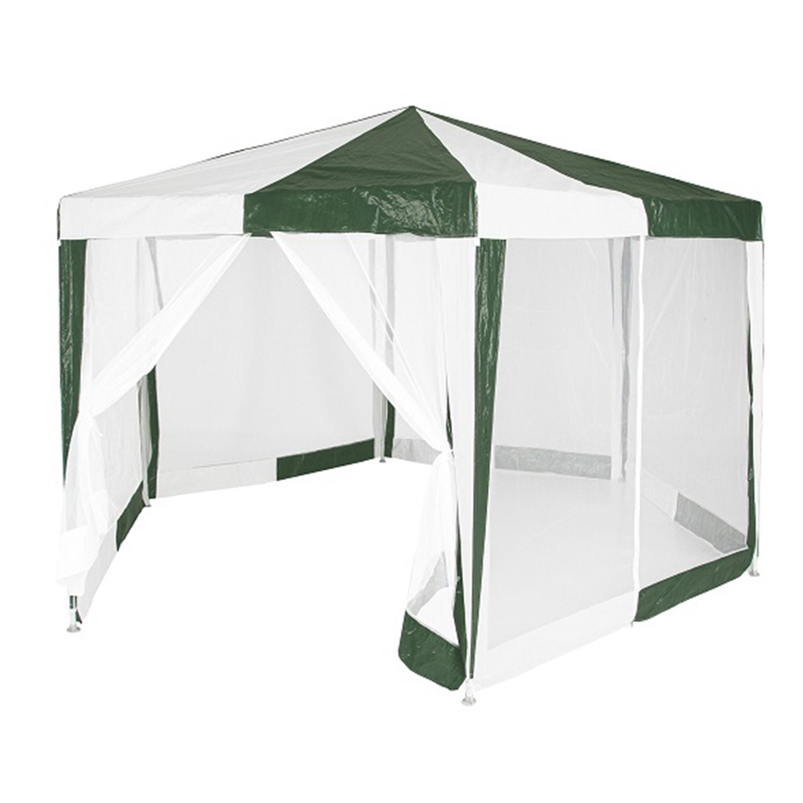 Размер: 2х2х2х2. 6 м Вес нетто: 10 кг Материал: сетчатый полиэтилен 120 г Каркас: металлическая трубка (18/18/24 мм) Москитная сетка Цвет: зеленый + белый Размер упаковки: 110х16х23 см Вес брутто: 11 кг Производитель: Green Glade
