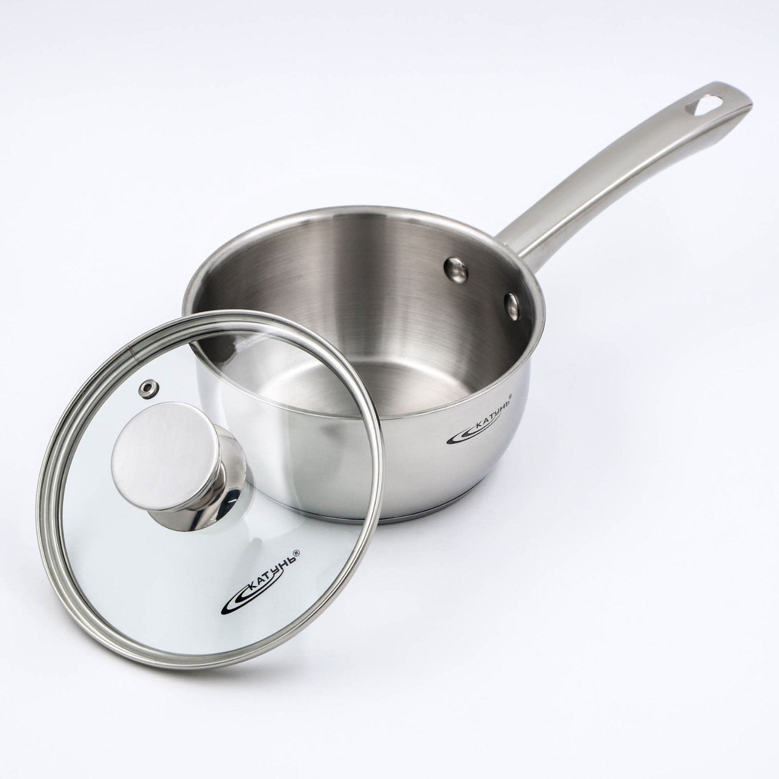 Ковш «антея», 1,5 л, D=16 см, капсульное дно, стеклянная крышка, металлическая ручка, индукция