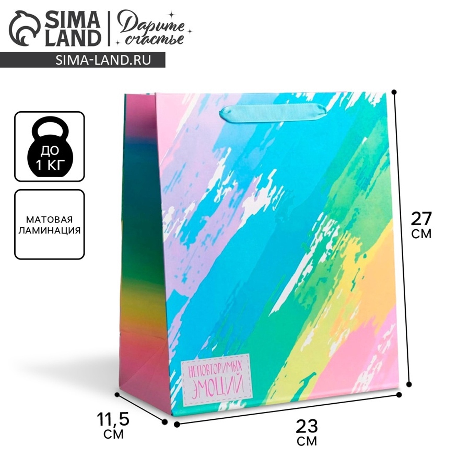 Пакет подарочный ламинированный, упаковка, «неповторимых эмоций», Ml 23 х 27 х 11.5 см