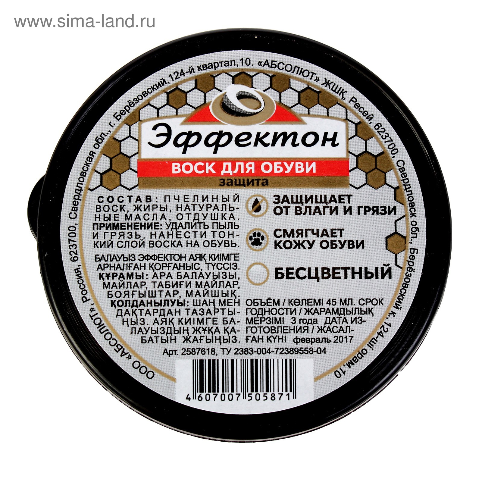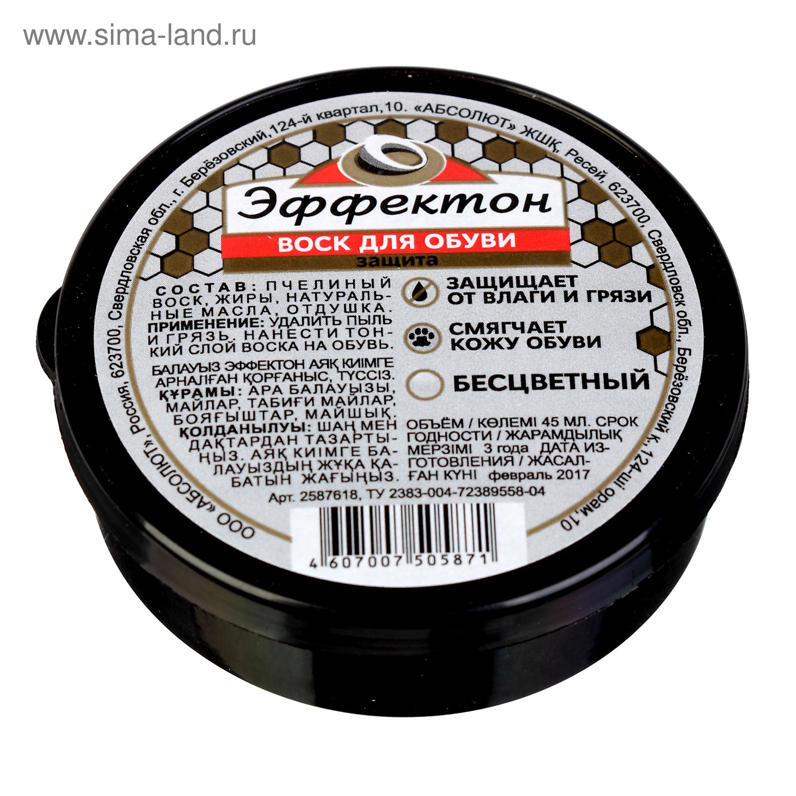 Воск для обуви эффектон бесцветный, банка, 45 мл