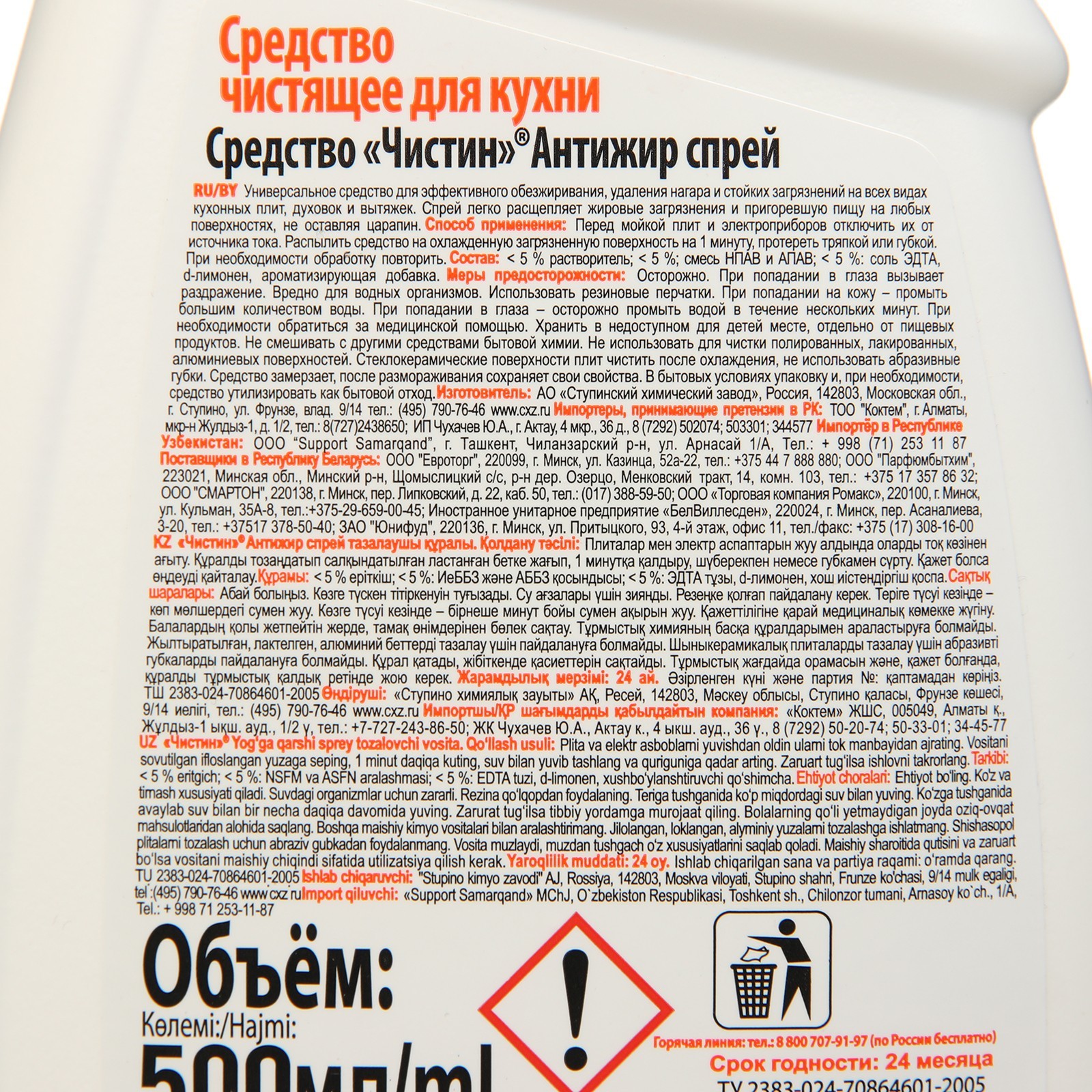 Чистящее средство для кухни чистин "антижир", универсальное, спрей, 500 мл
