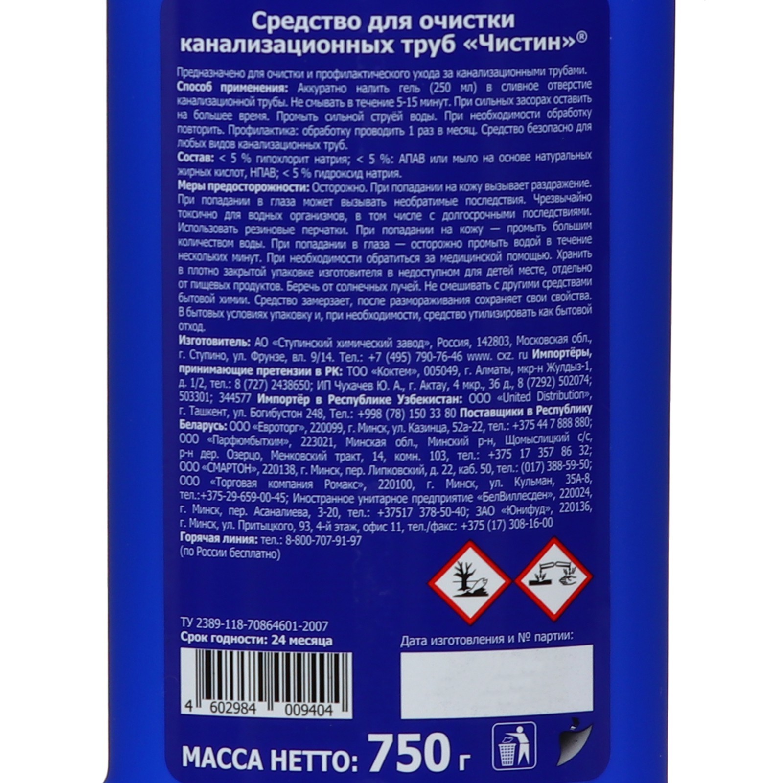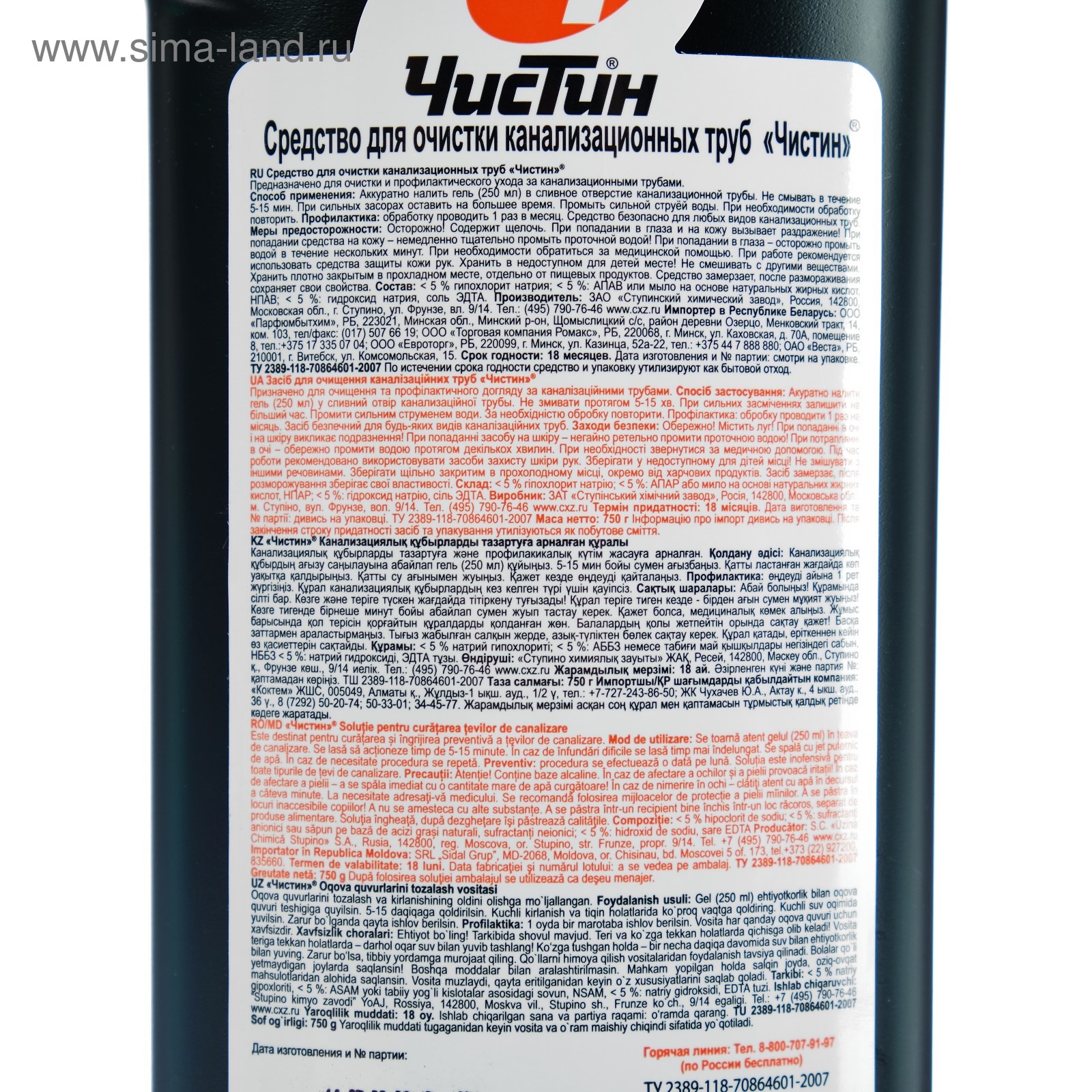Средство для очистки канализационных труб "чистин" сток , 750 г