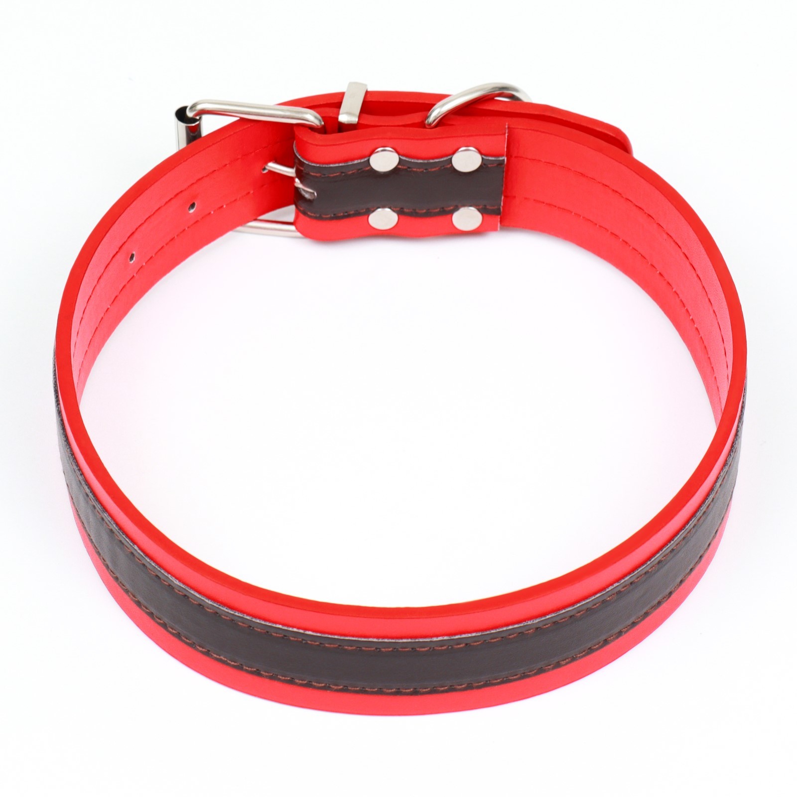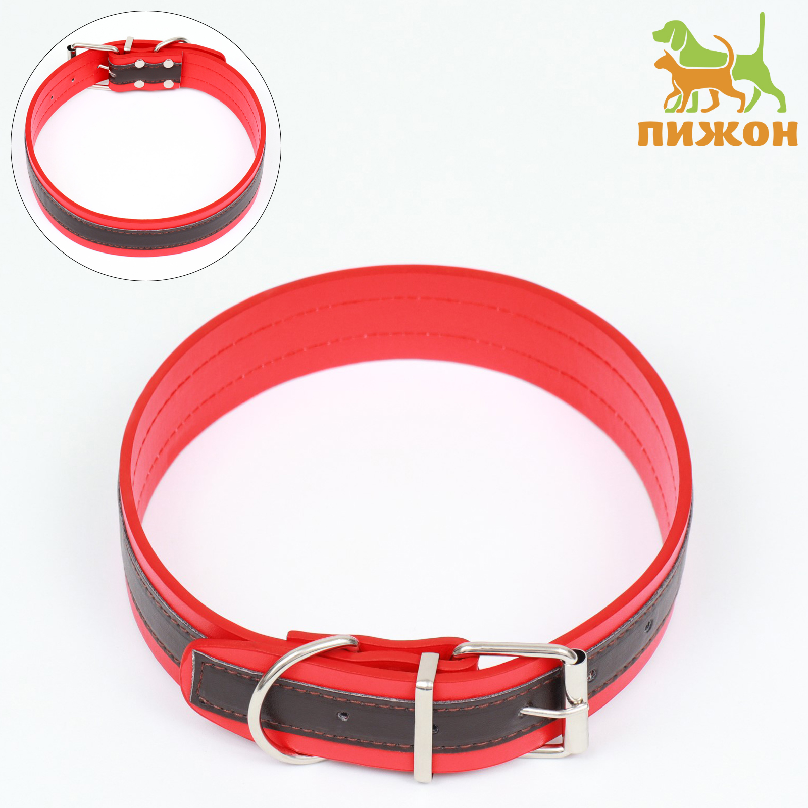 Ошейник двухслойный 66 3.5 см, ош 50-60, коричнево-красный